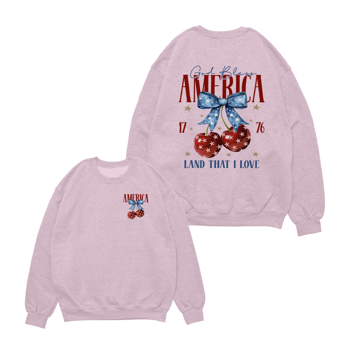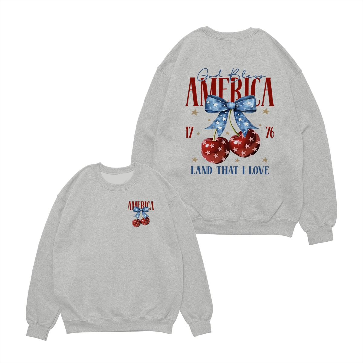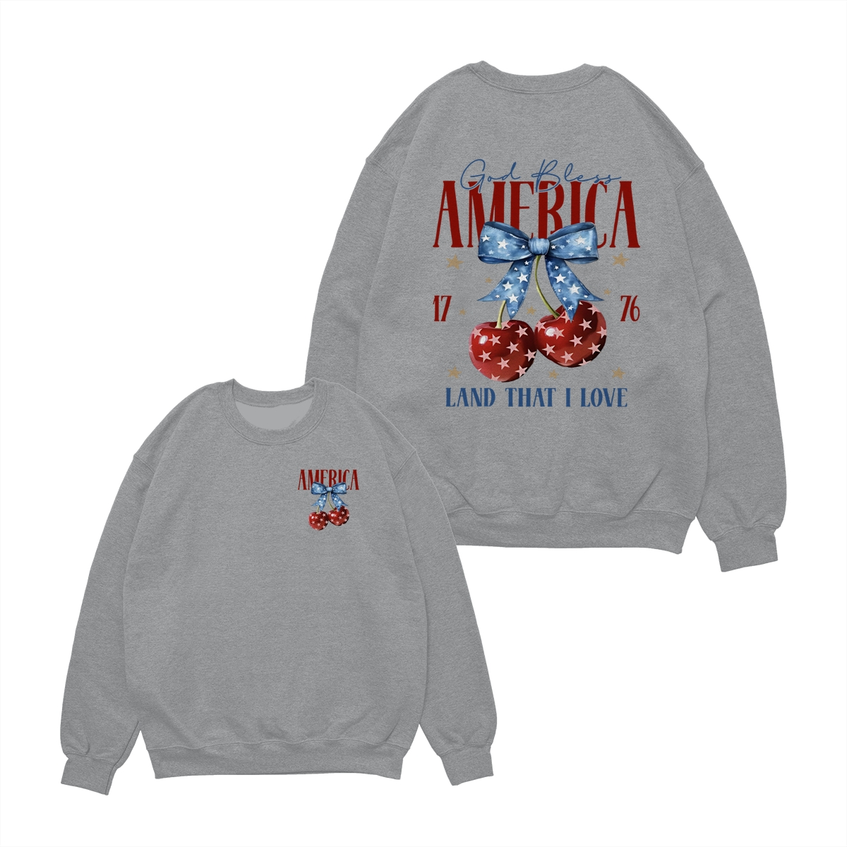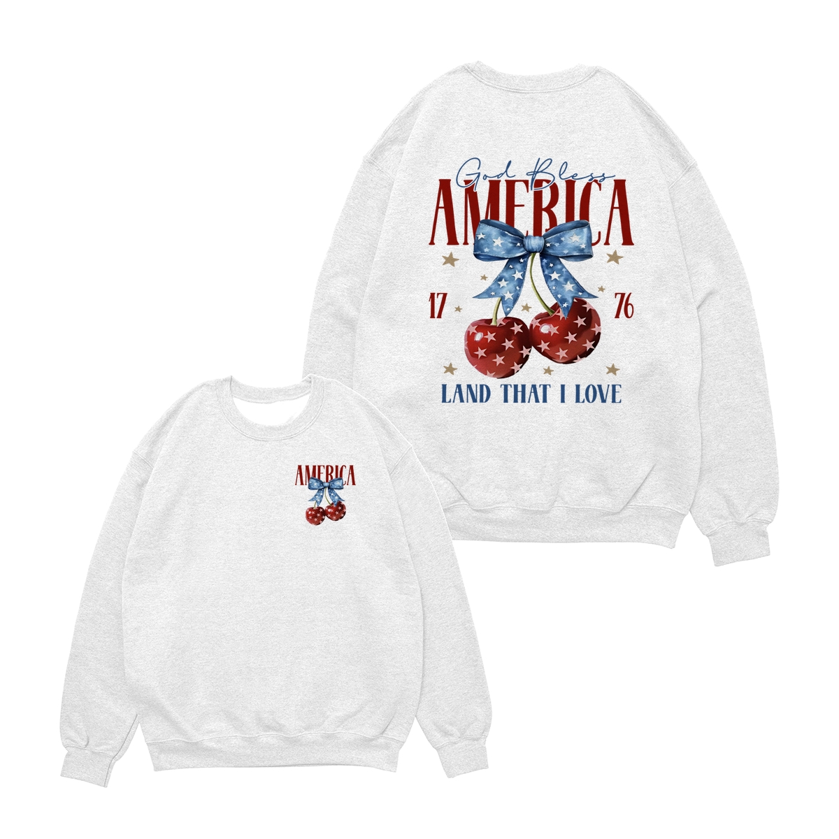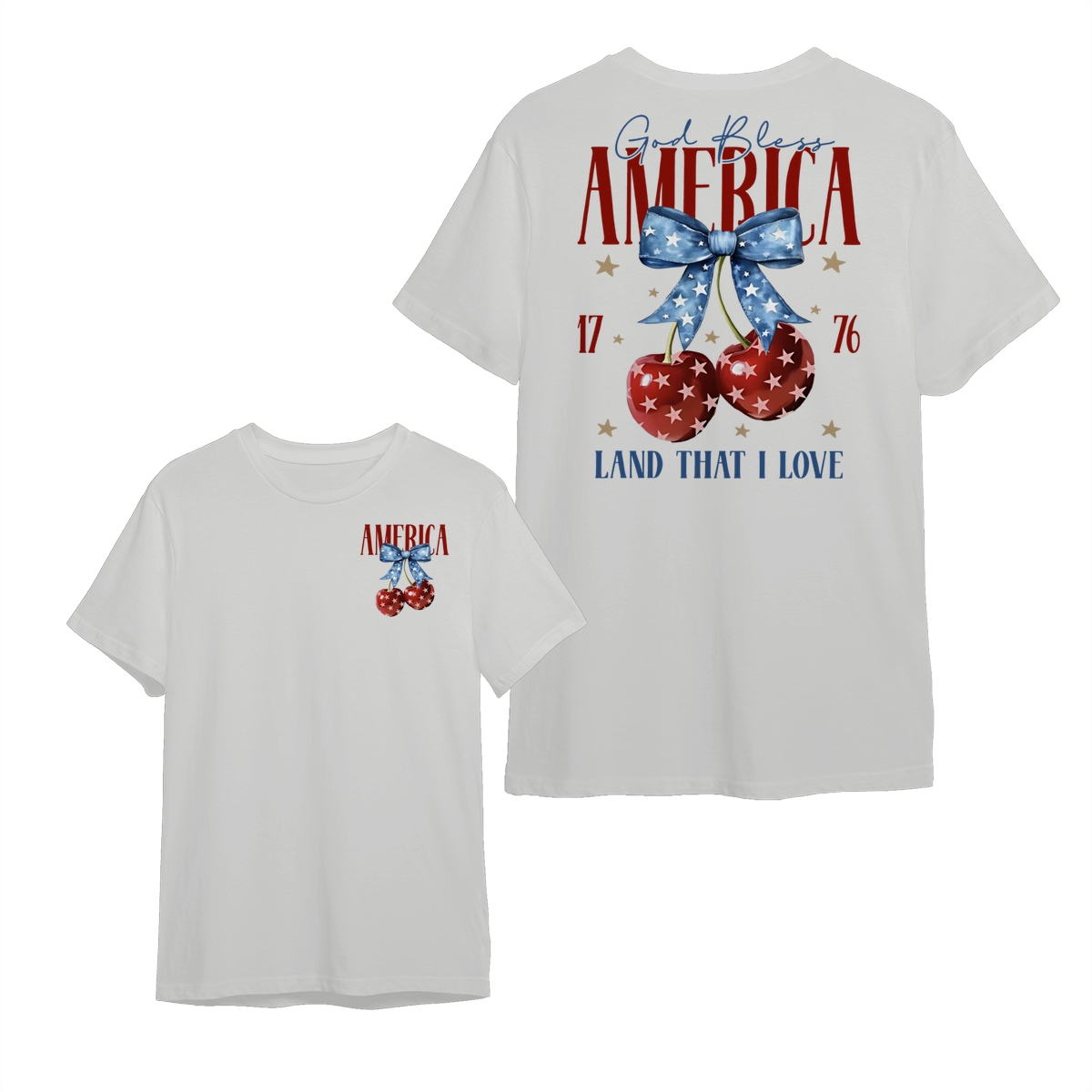 God Bless America T-Shirt, Coquette Fourth of July Shirt, America Cherry Bow Tee, Woman Tee, Usa Flag Shirt Summer