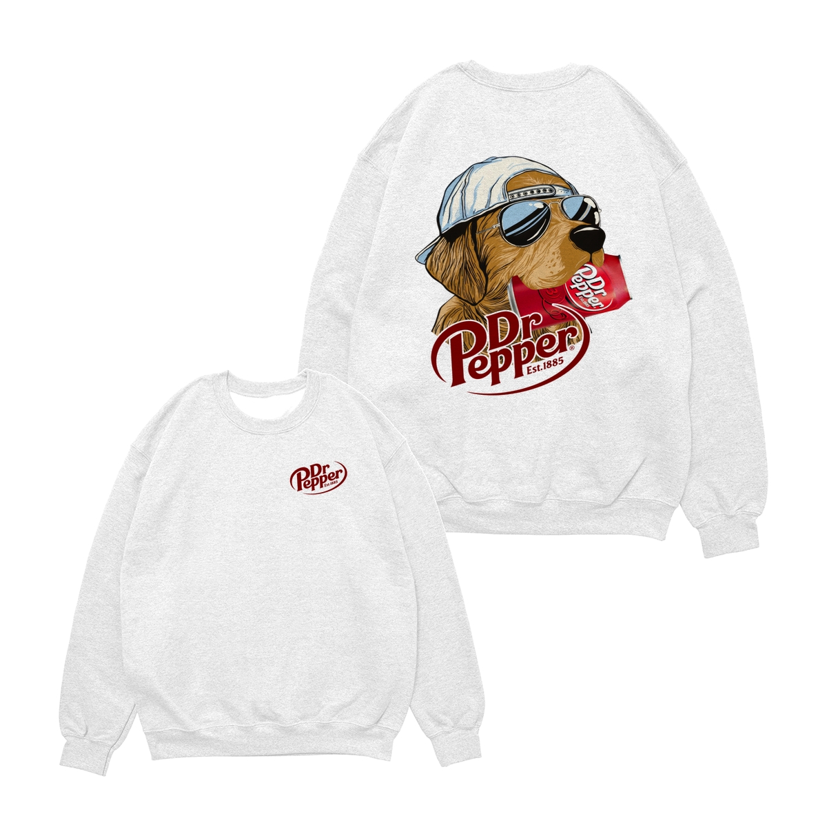 Golden Retriever with Dr. Pepper Can Graphic Shirt, Double-Sided Unisex Tee for Daily Wear, Funny Dog Soda Fan Cotton T-Shirt