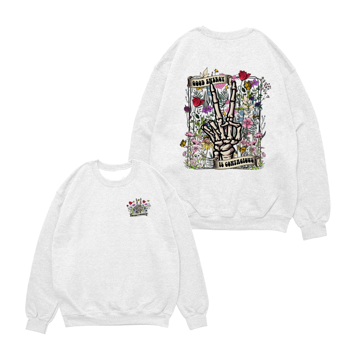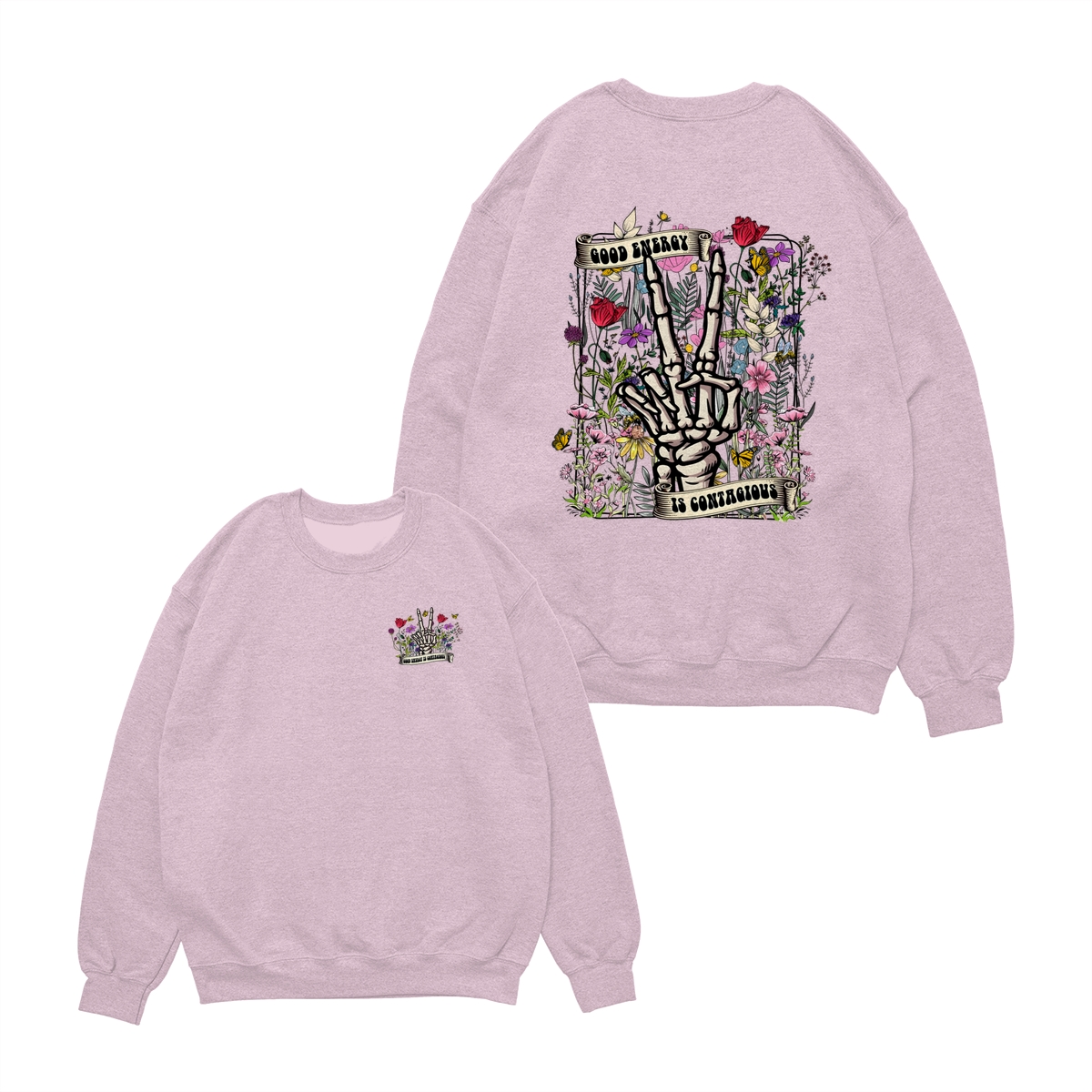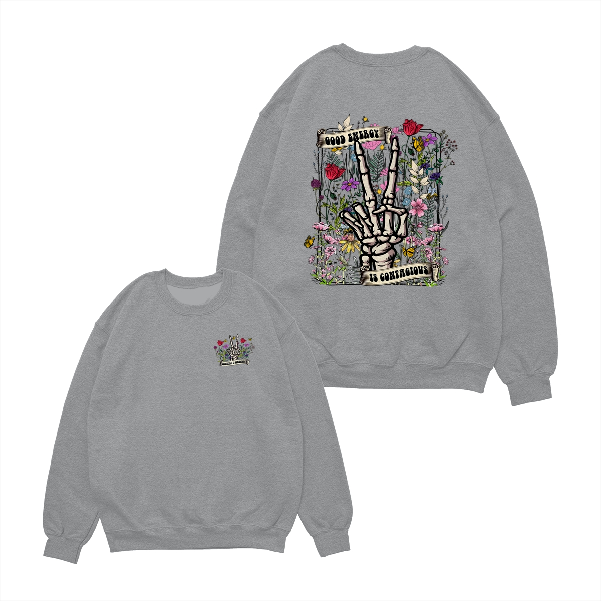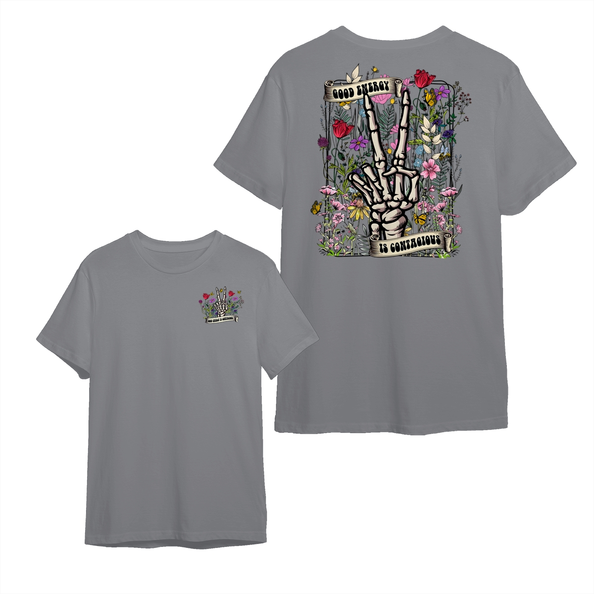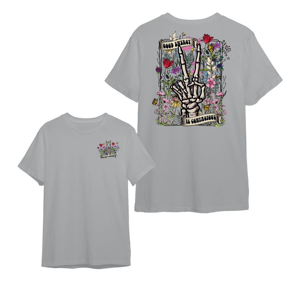 Good Energy Is Contagious Shirt, Retro Shirt Design, Skull Skeleton, Wild Flower Shirt Design, Positive Energy Shirt, Inspirational Graphic T-Shirt