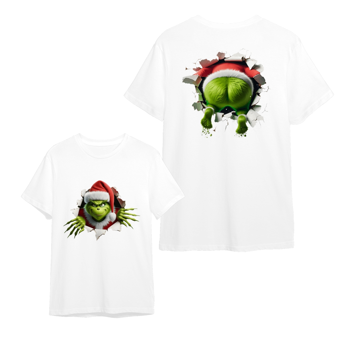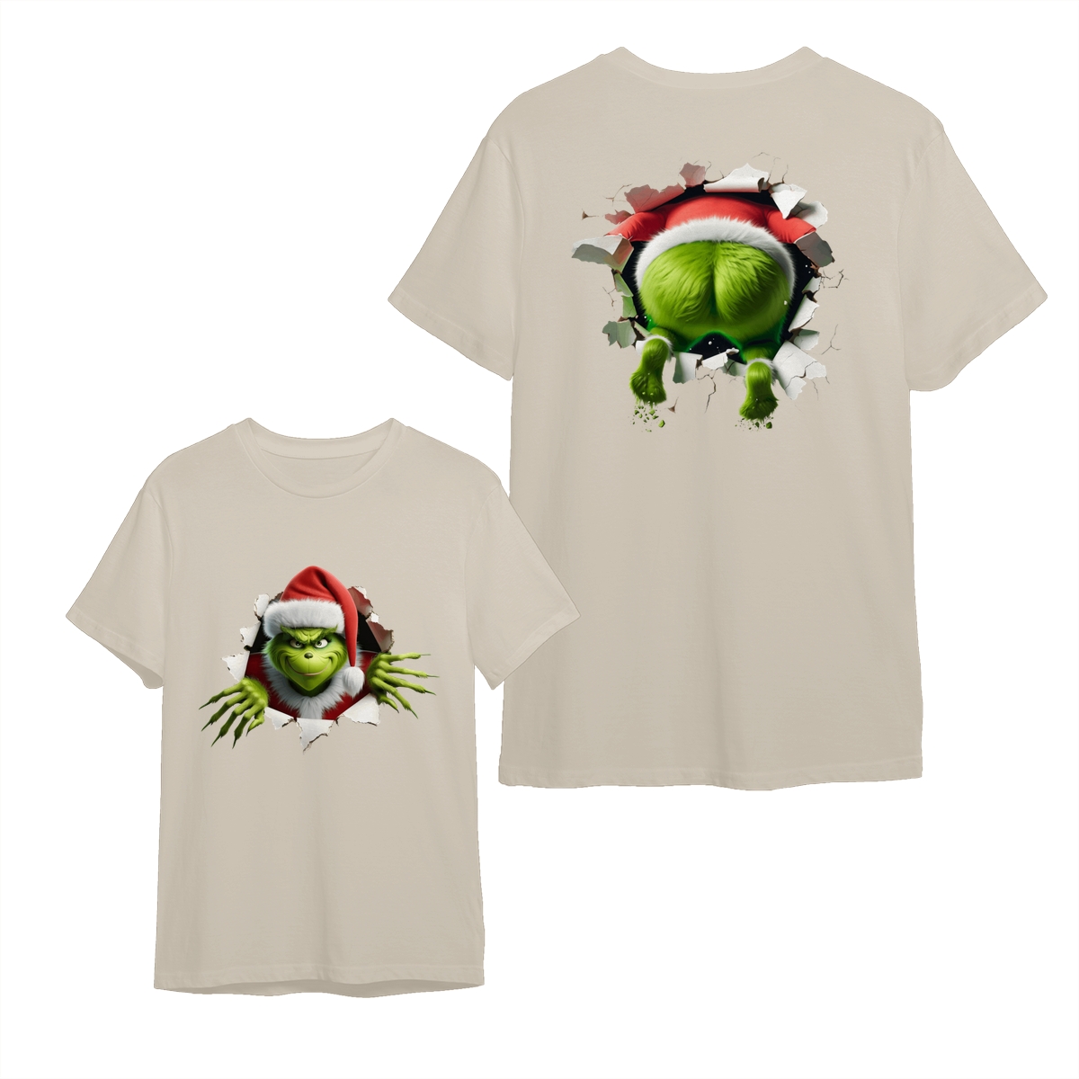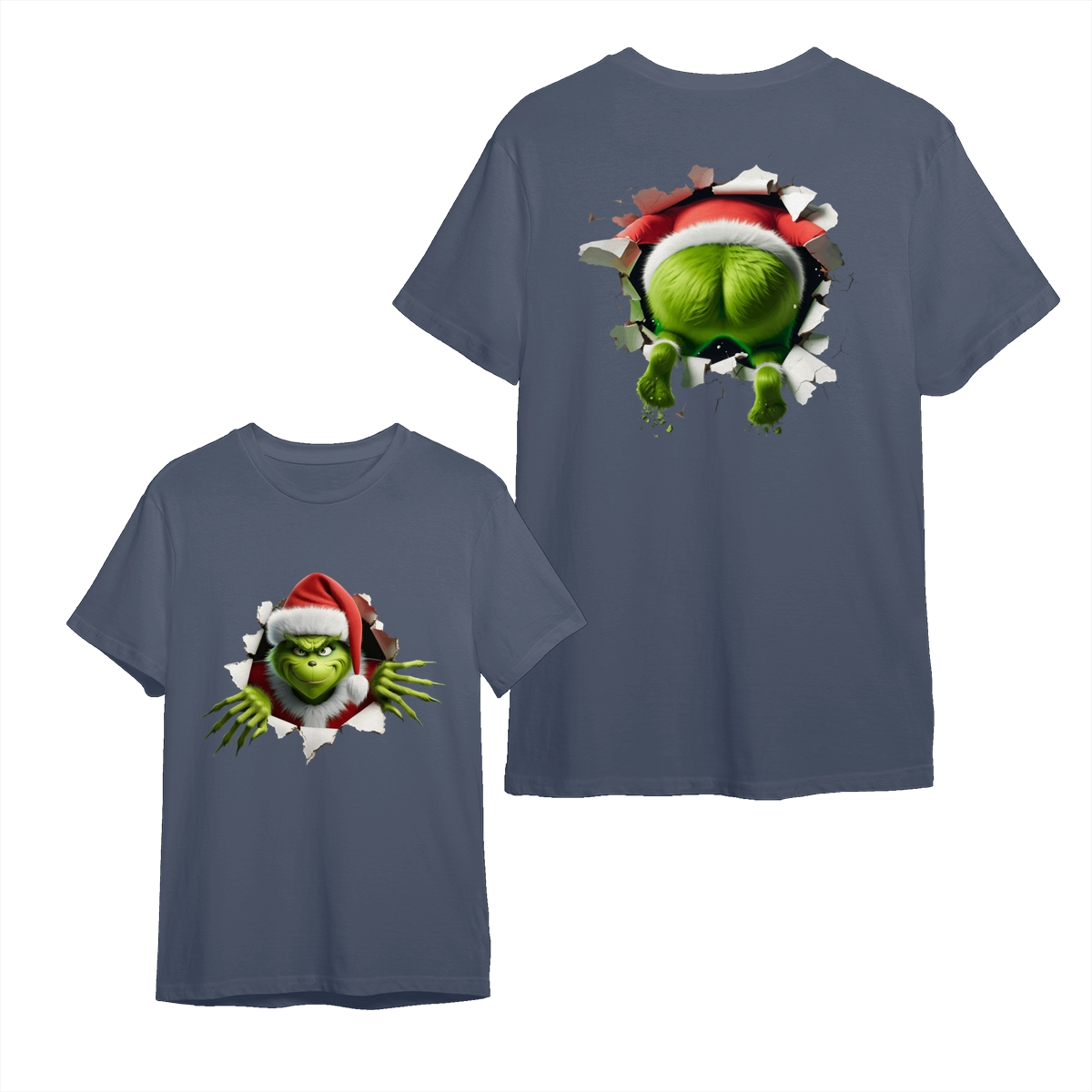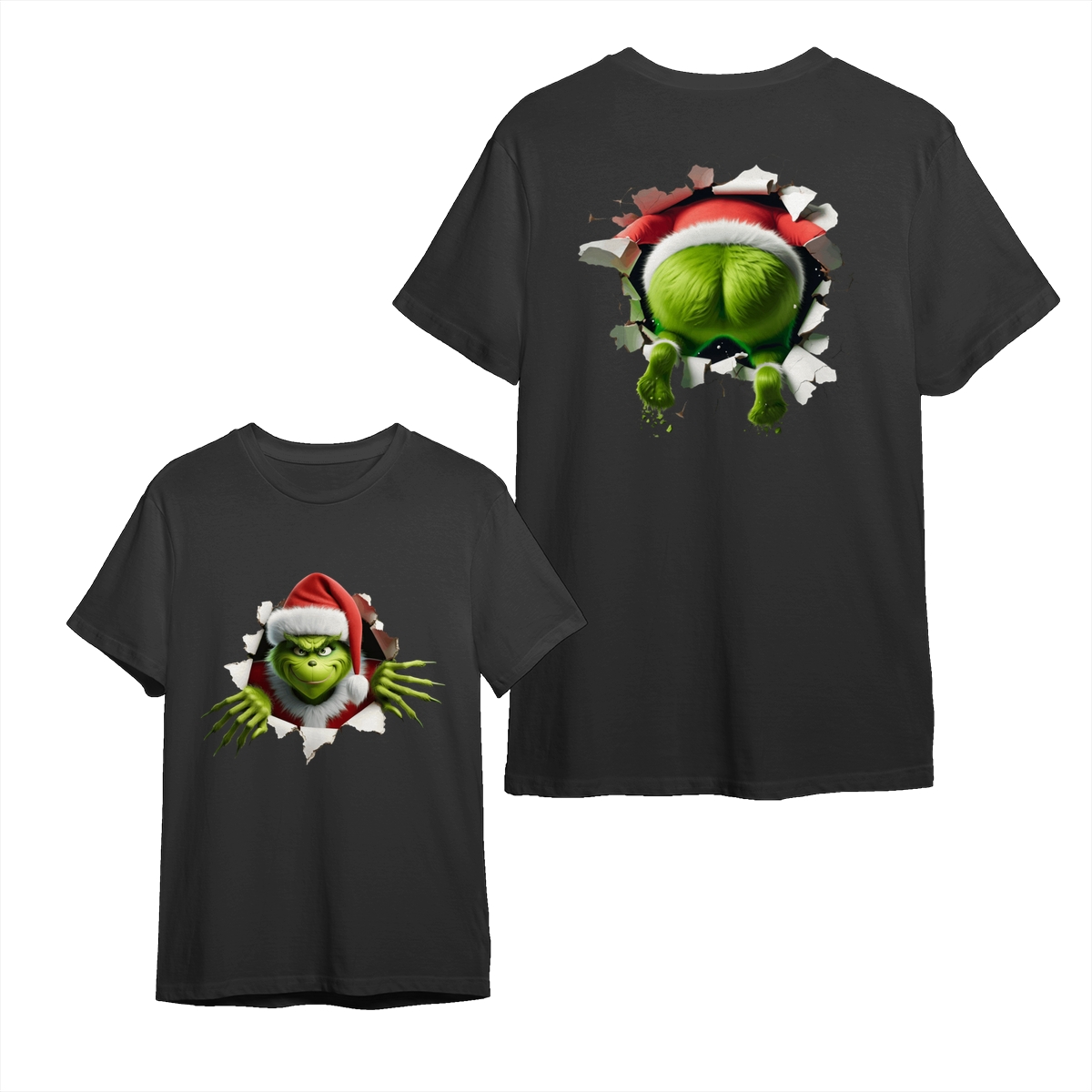 Grinch Breaking Through Wall Hoodie – Funny Front & Back Christmas Design, Holiday Sweatshirt Design, Christmas Shirt, Funny Merry Xmas Holiday Shirt, Casual Cotton Shirt for Men and Women, Classic Fashion Comfort