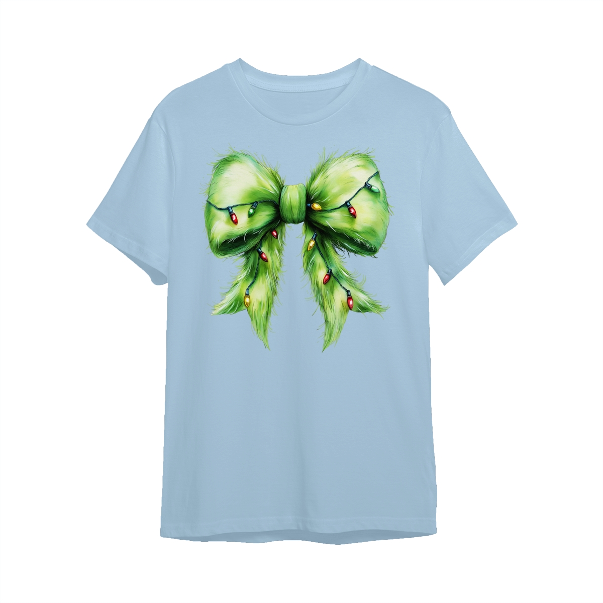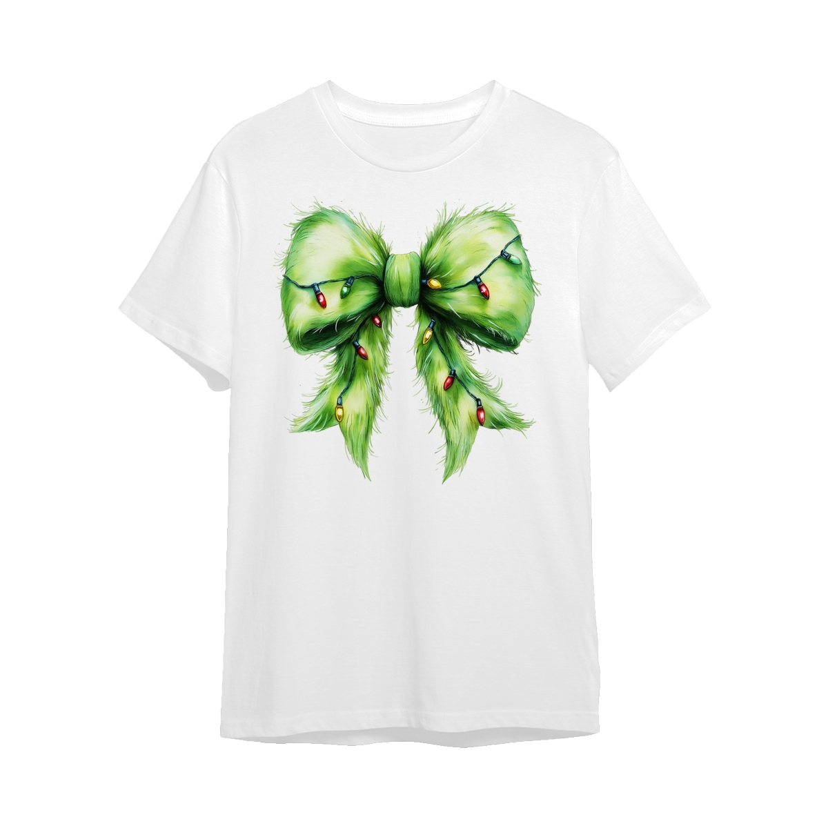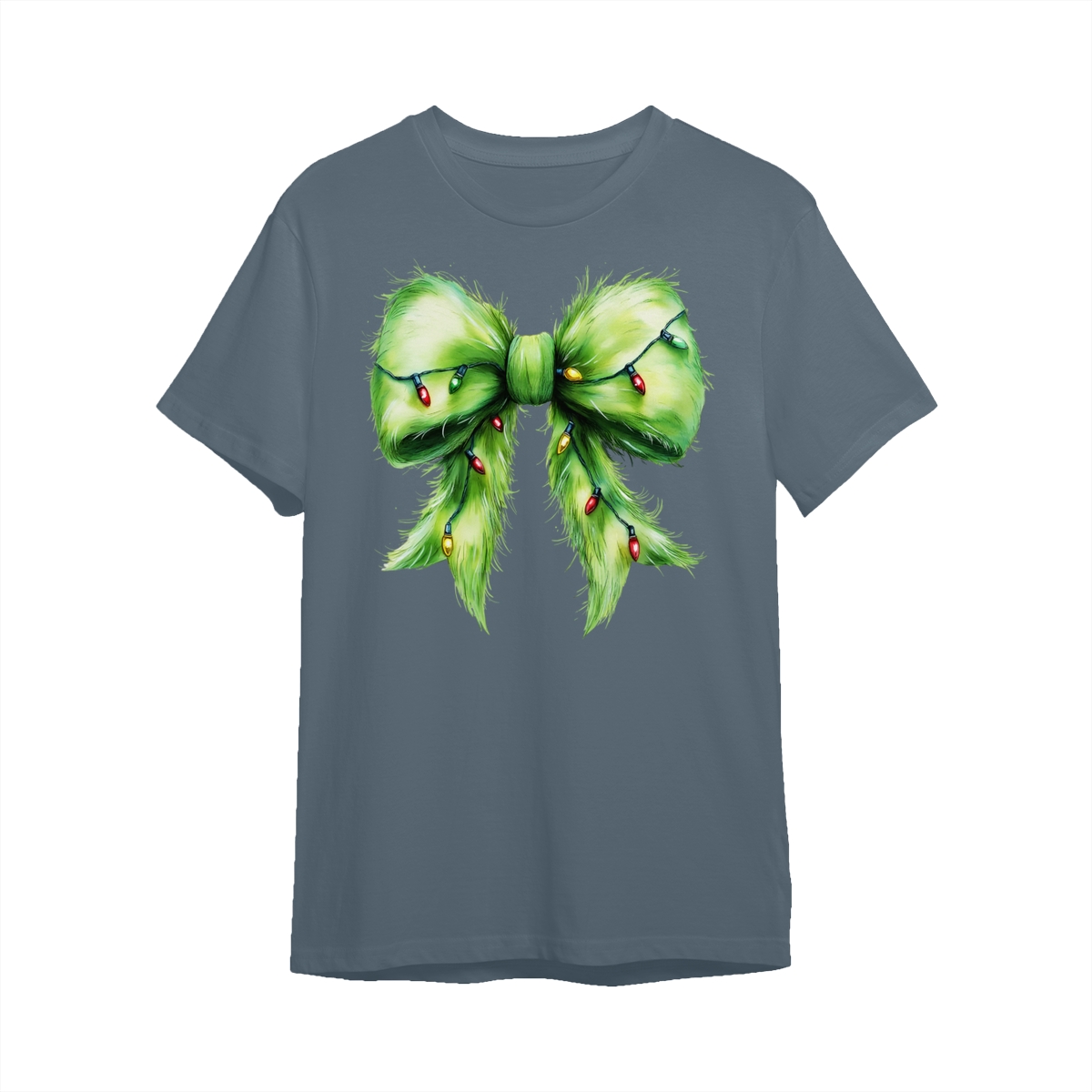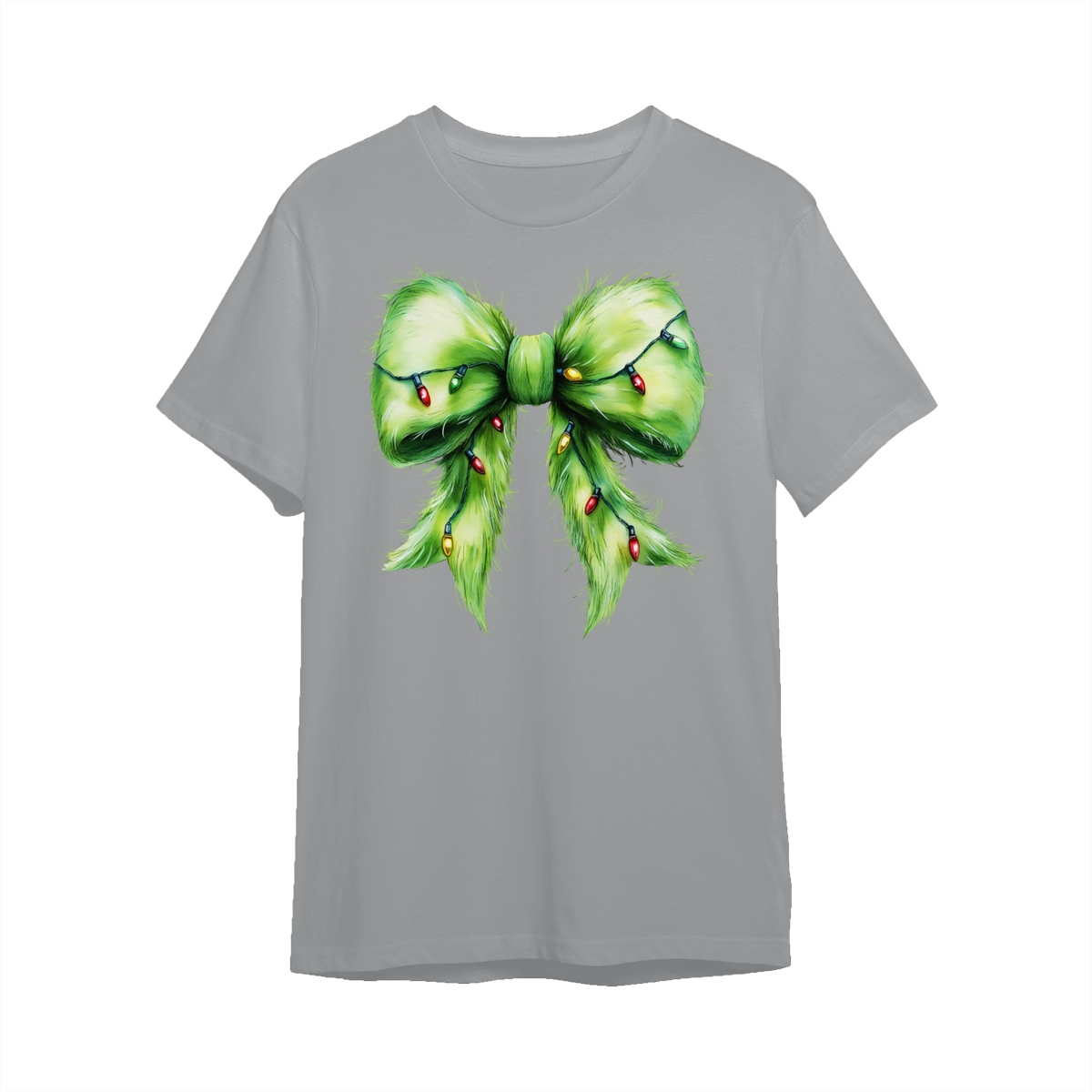 Grinchmas Coquette Bow Sweatshirt, Green Fur Christmas Lights Bow Retro Christmas Womenswear Fit Printed Tops