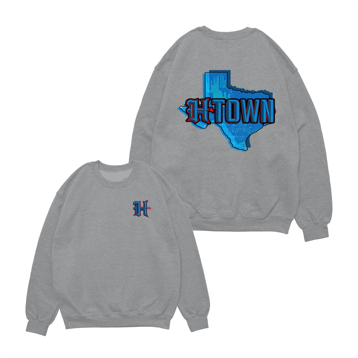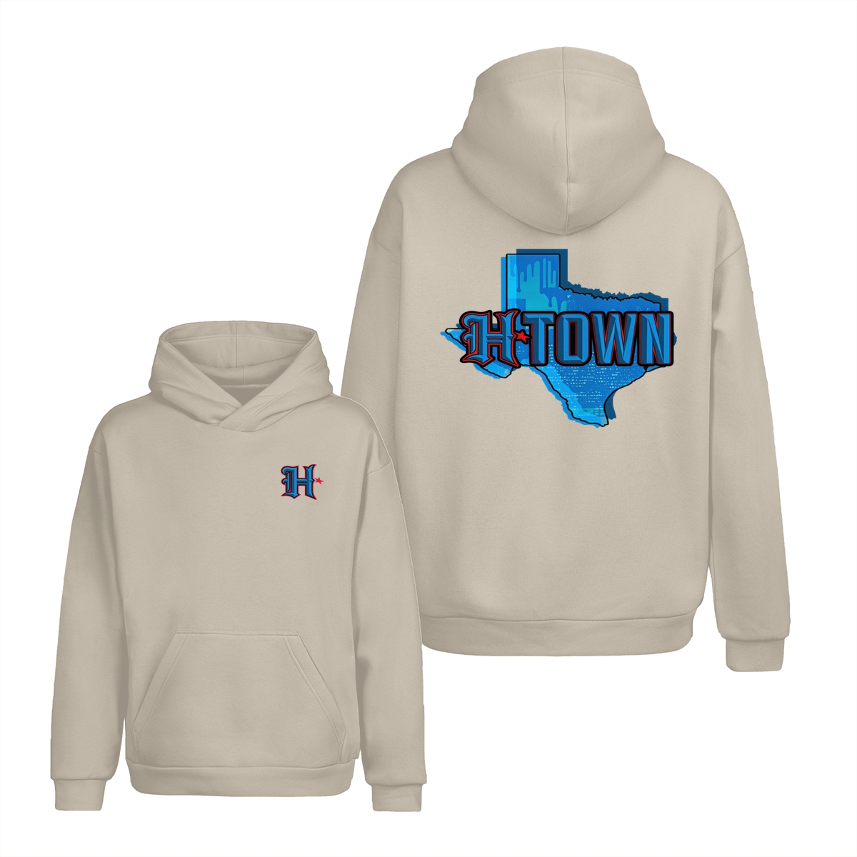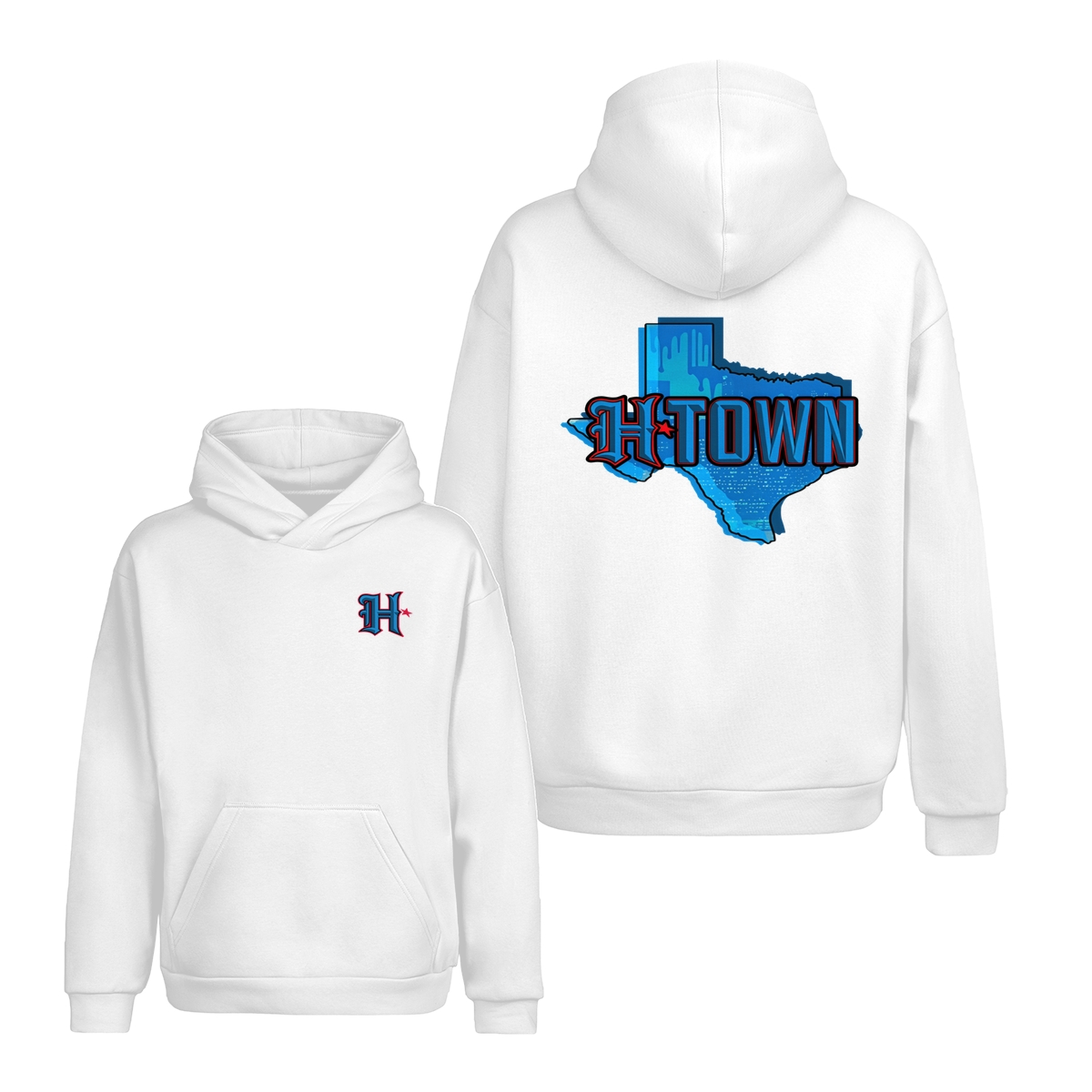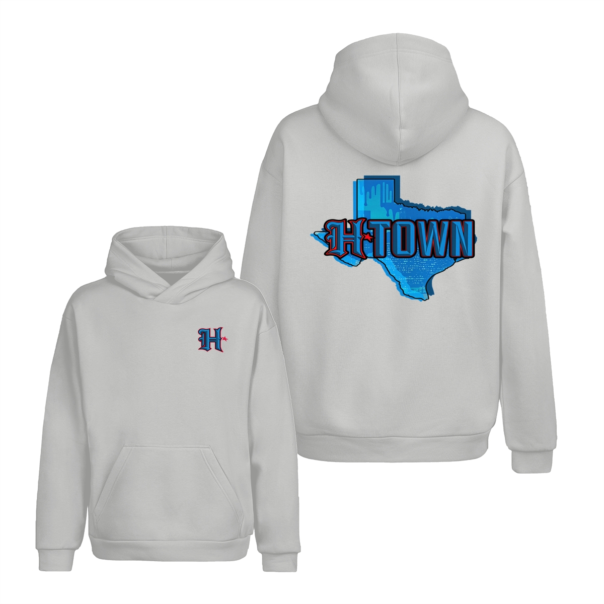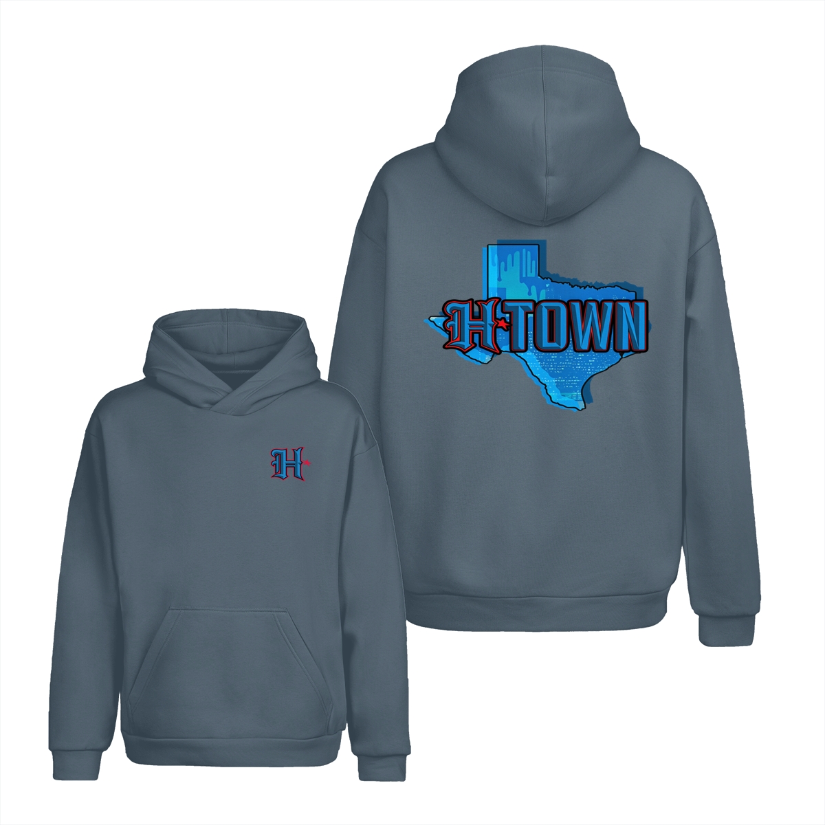 H-Town Texas Pride Men’s T-Shirt – Bold Blue State Outline Graphic Tee, Houston Street Style Tee for Men, Southern Urban Fashion Gift Idea, Trendy Top,