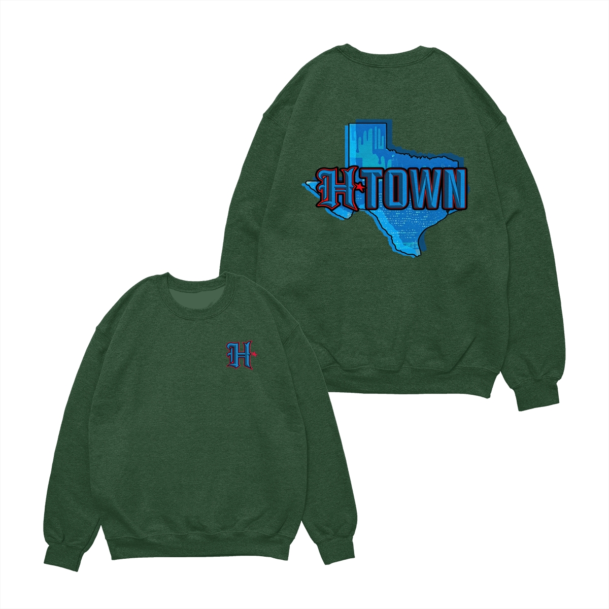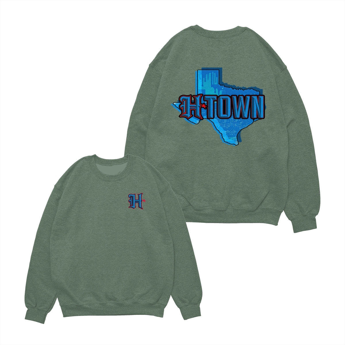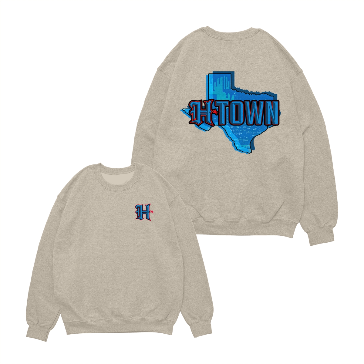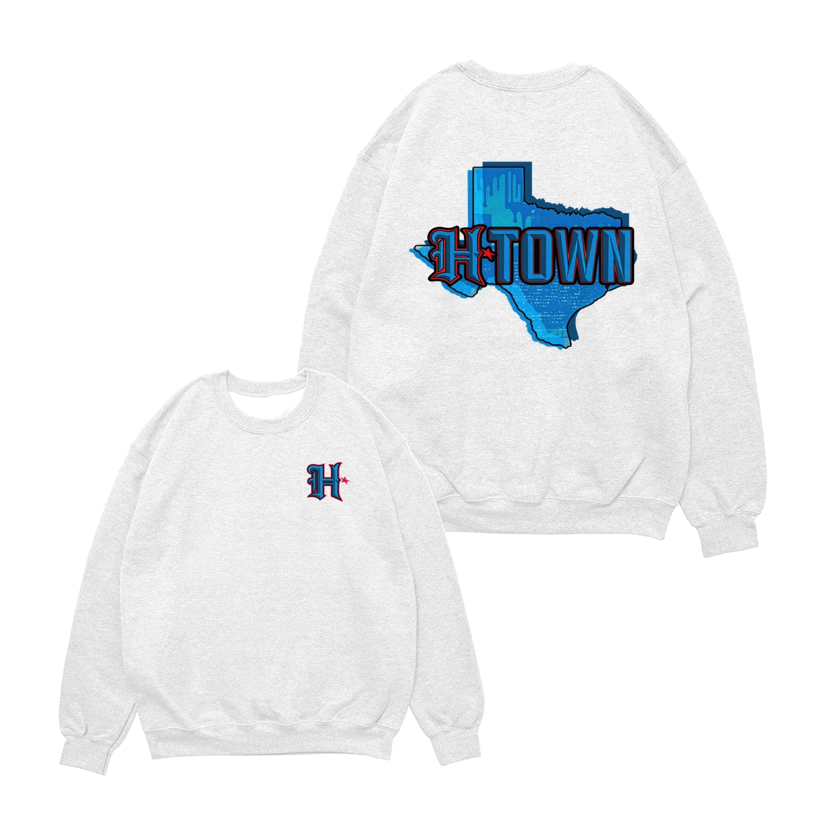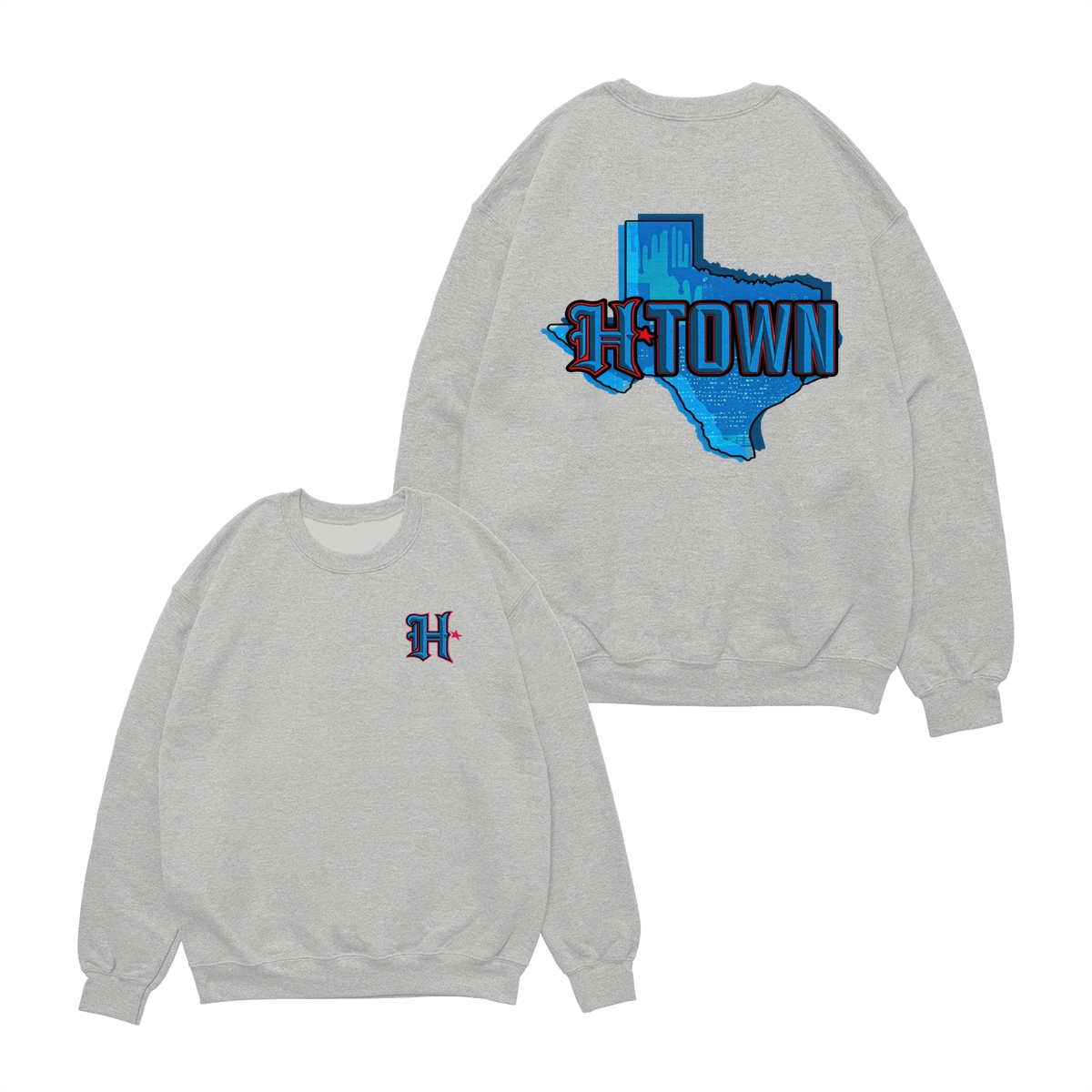 H-Town Texas Pride Men’s T-Shirt – Bold Blue State Outline Graphic Tee, Houston Street Style Tee for Men, Southern Urban Fashion Gift Idea, Trendy Top,