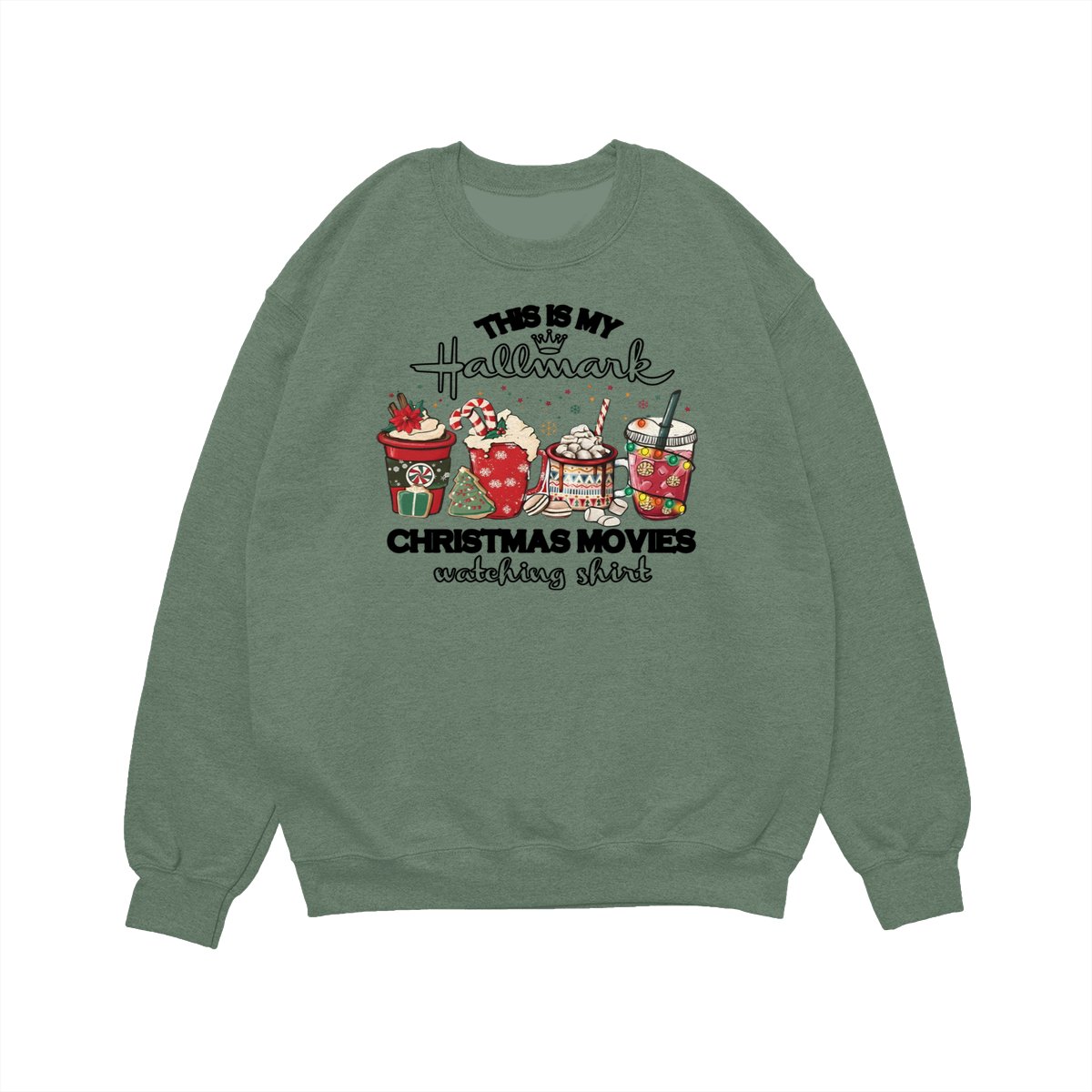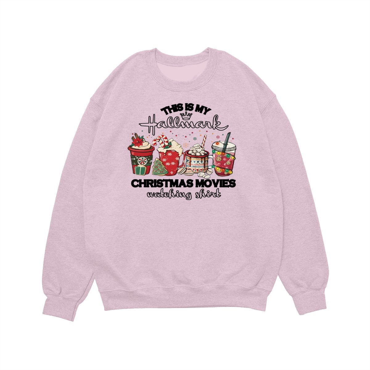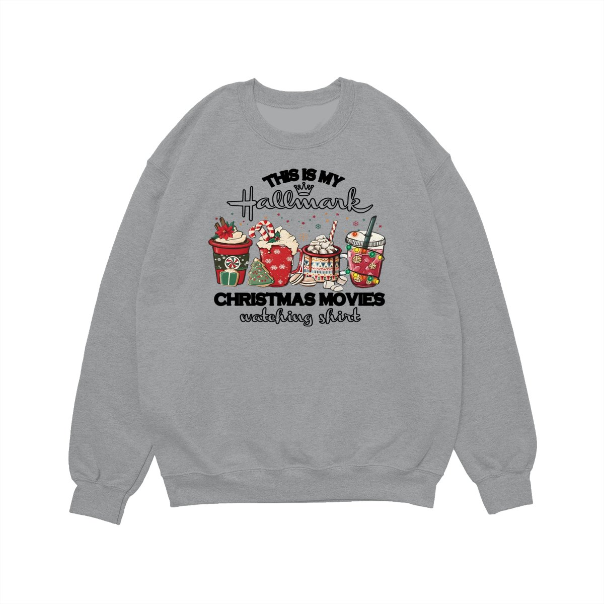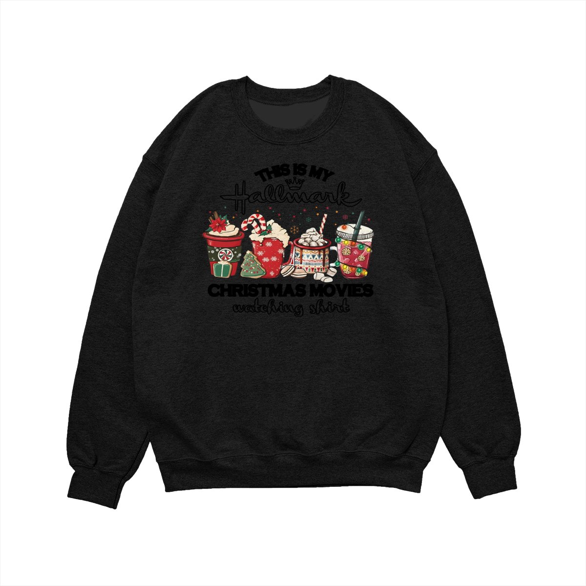 Hallmark Christmas Movie Sweatshirt – Playful Holiday Graphic With Festive Mugs And Candy Canes , Great Gift Idea For Cozy Winter Nights , Fun Outfit For Family Gatherings , Seasonal Top For Christmas Fans Crewneck Printed Everyday Casual