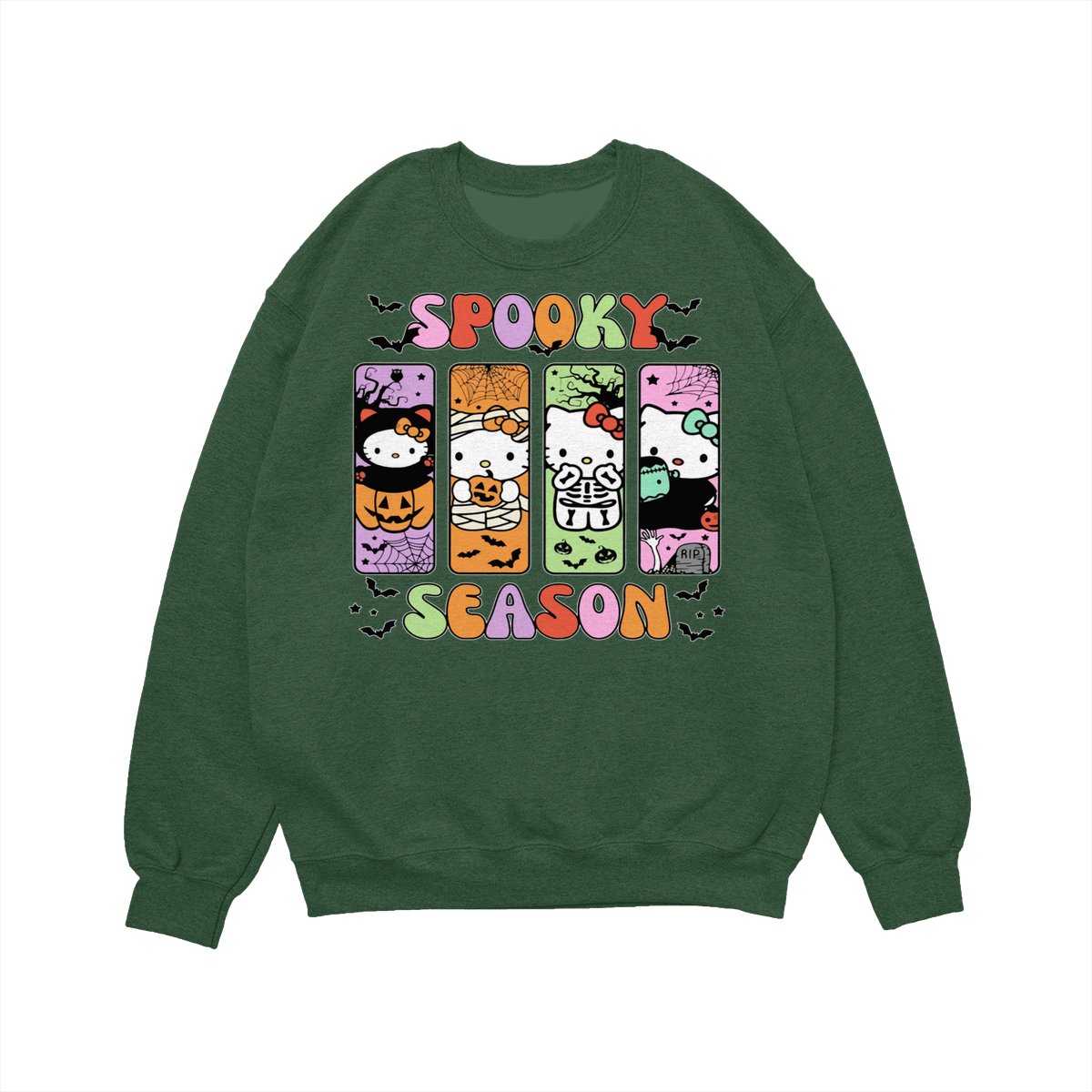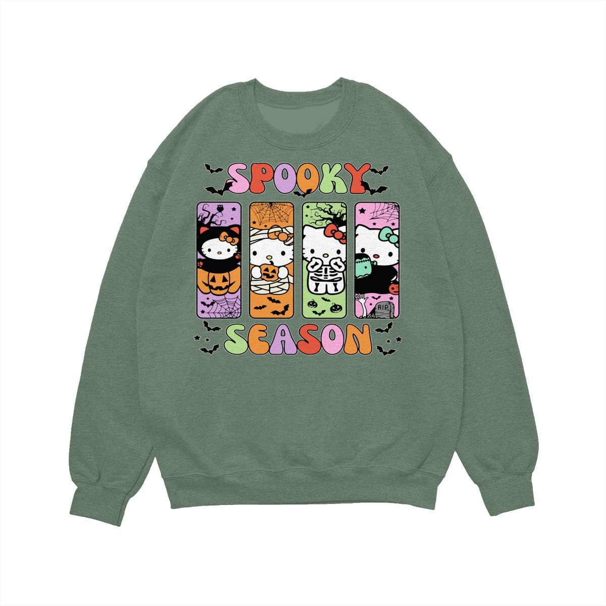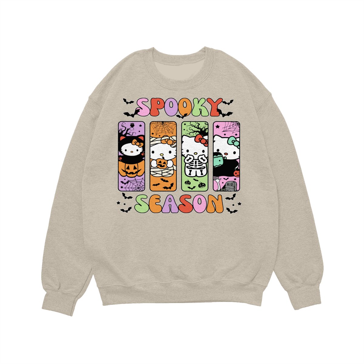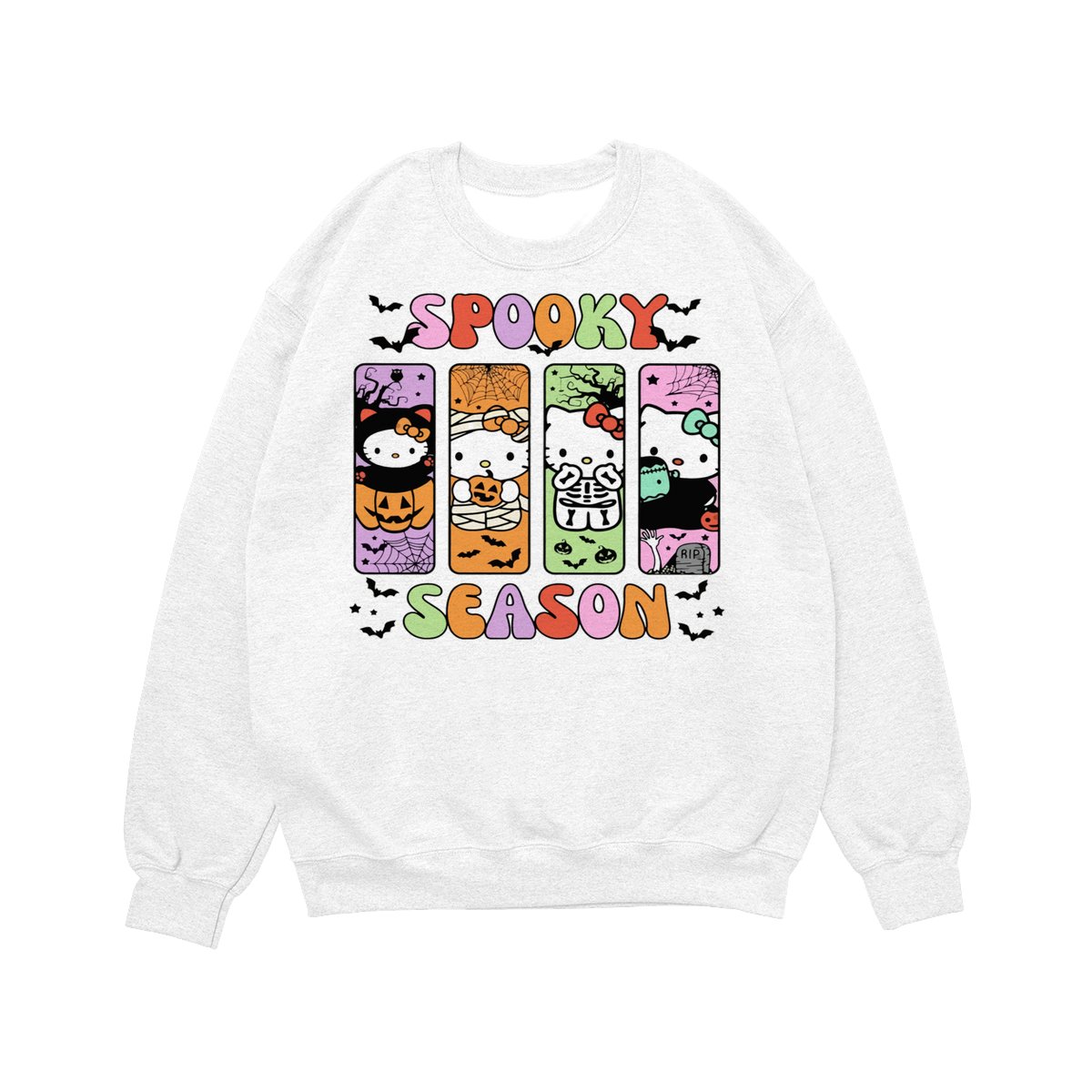 Hallo Kitty Halloween Crewneck TShirt/Sweatshirt/Hoodie, Spooky Ghost kitty Women’s Shirt, Halloween Gift Sweatshirt Cotton Fit Gift Sweatshirt Cotton Fit Unisex Womenswear