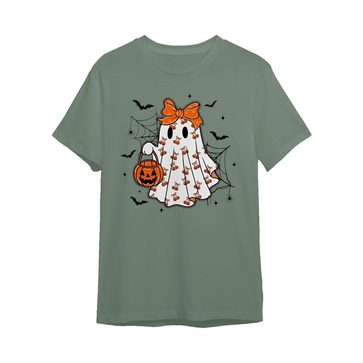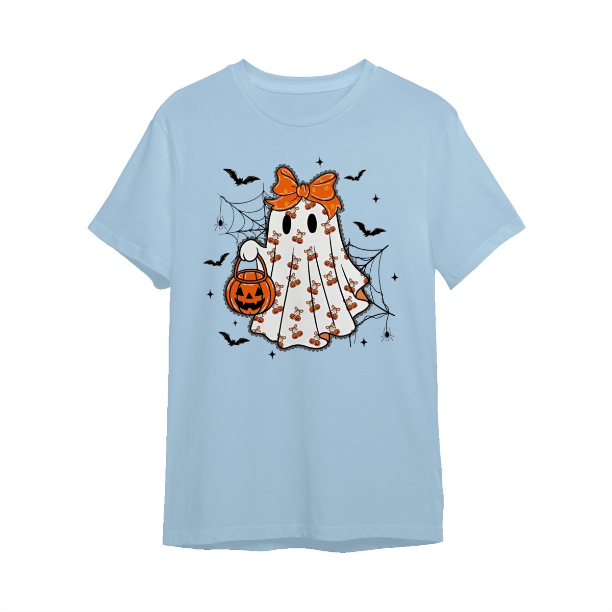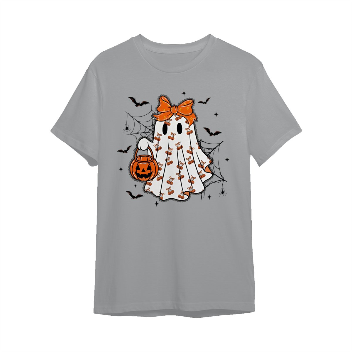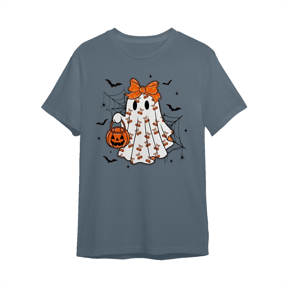Halloween 2025 Cute Ghost Shirt, Spooky Orange Bow Pumpkin Trick Or Treat Pullover, Vintage Kawaii Ghost Graphic Top, Cozy Fall Winter Streetwear For Women And Men