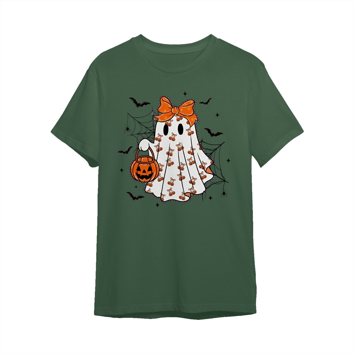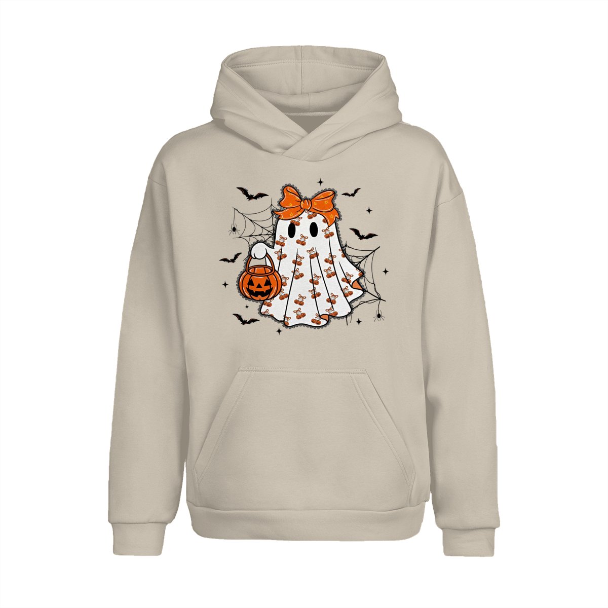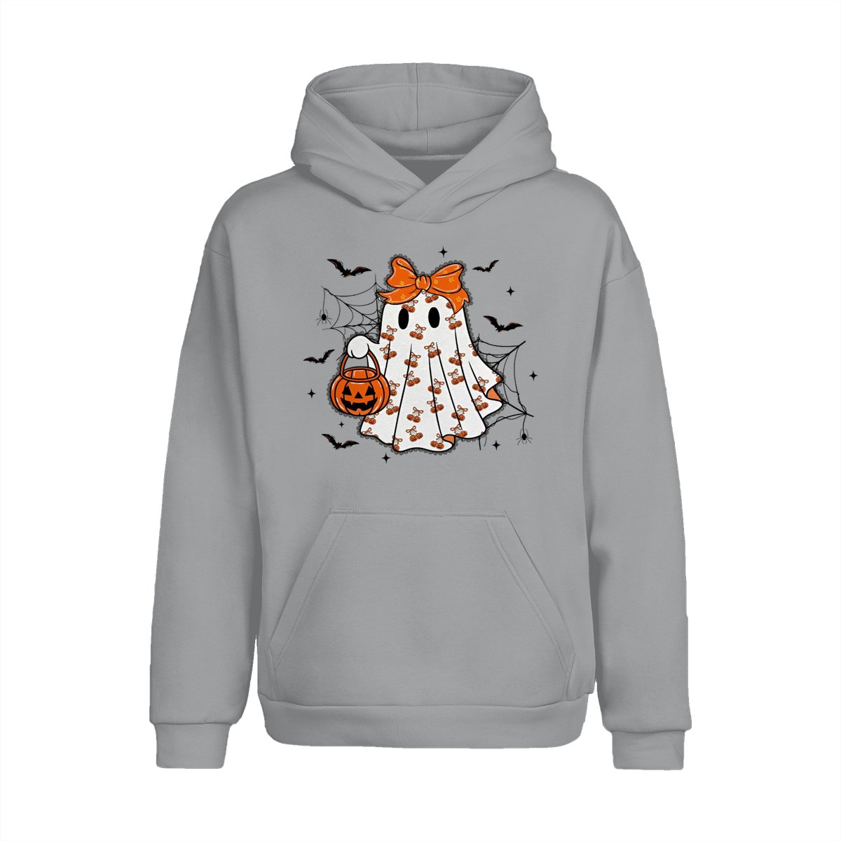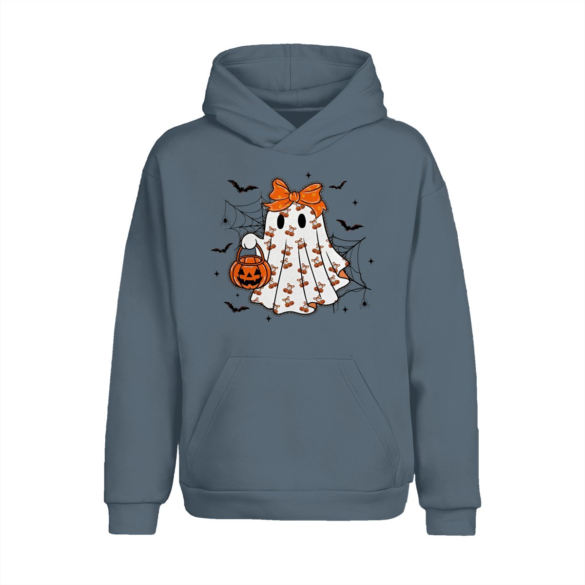 Halloween 2025 Cute Ghost Shirt, Spooky Orange Bow Pumpkin Trick Or Treat Pullover, Vintage Kawaii Ghost Graphic Top, Cozy Fall Winter Streetwear For Women And Men