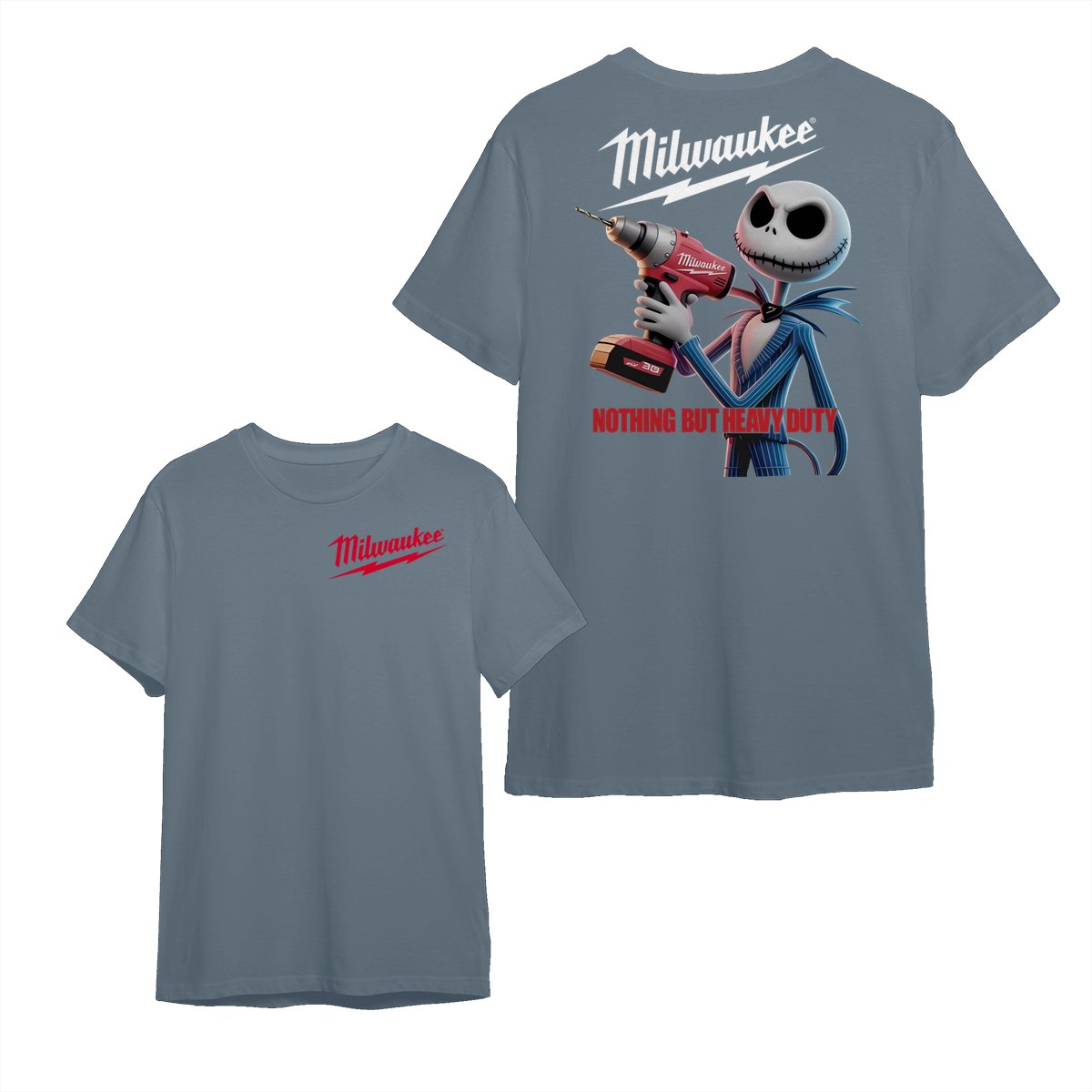 Halloween Character With Mil Drilling Machine Tools 2 Sided Unisex Tee – Halloween Character Graphic Cotton Shirt, Unisex Style for Men and Women