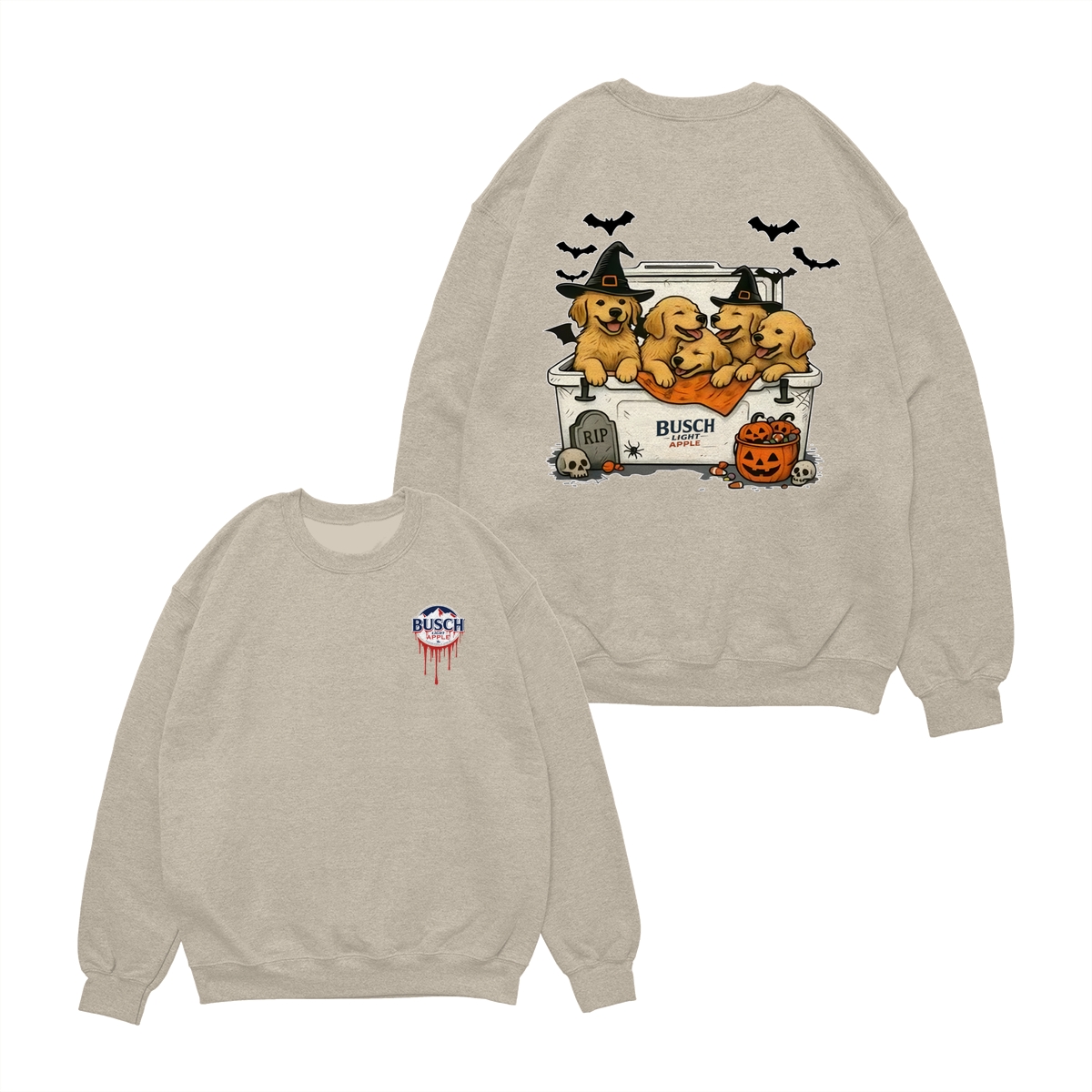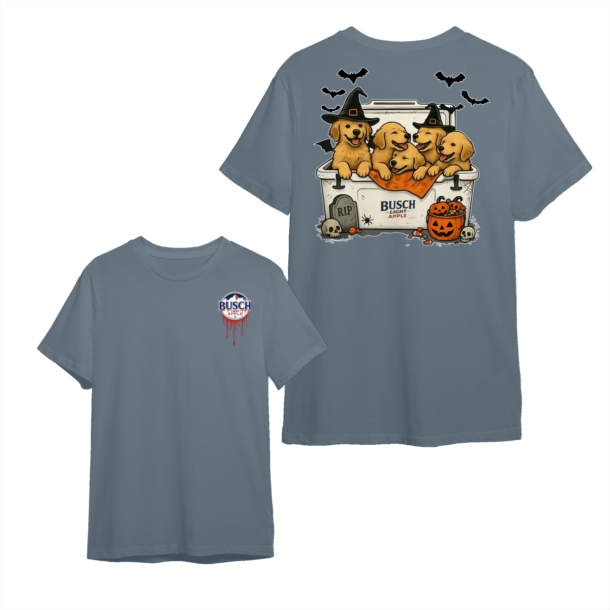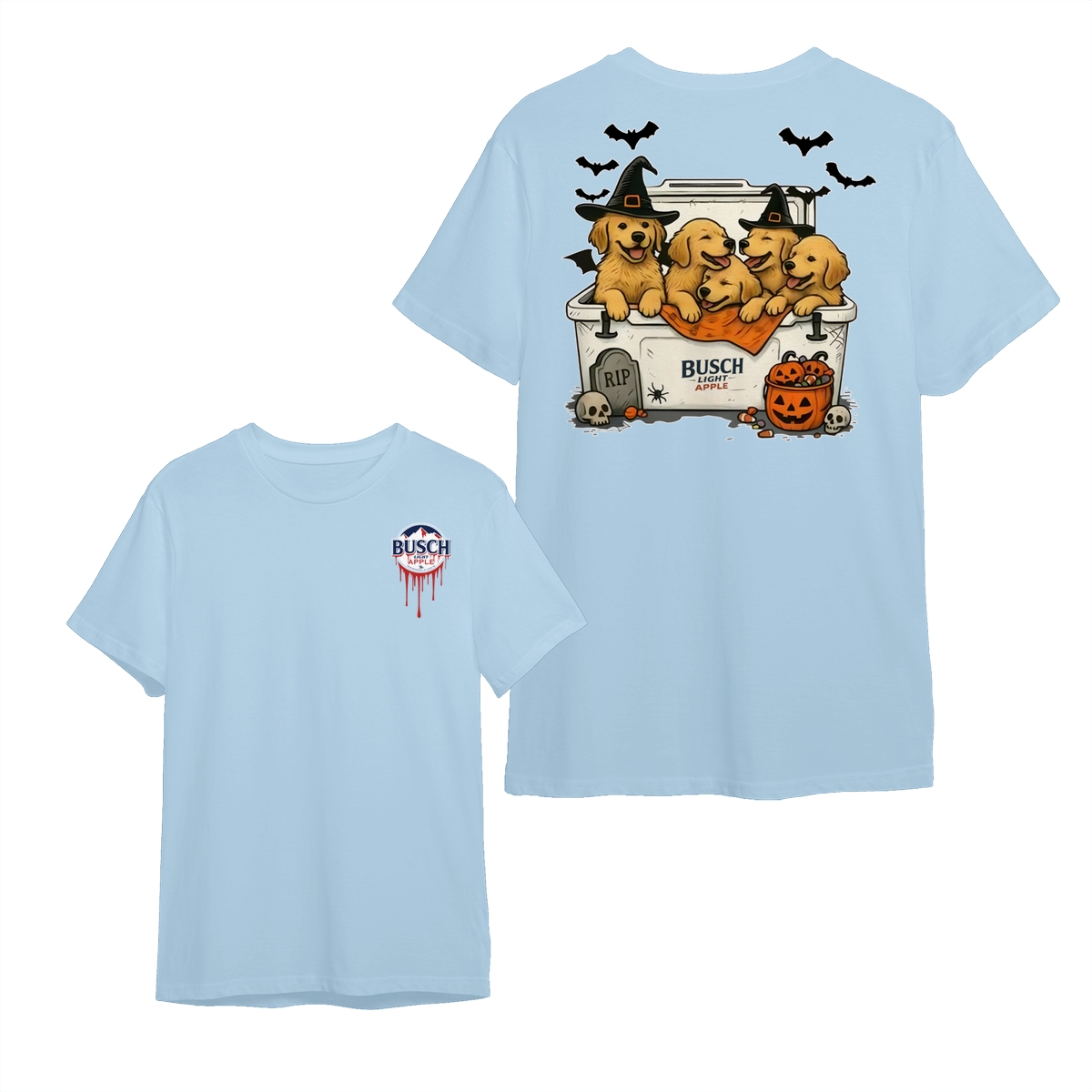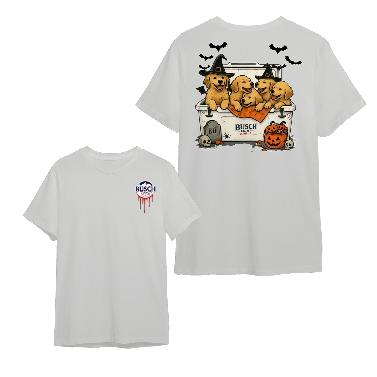 Halloween Cute Dog Busch Light T-Shirt for Golden Retriever Lovers T-Shirt for Men and Women, Spooky Season Beer Lover Tee, Funny Dog & Drink Graphic Shirt Casual Daily Wear