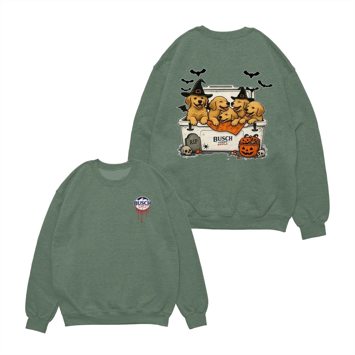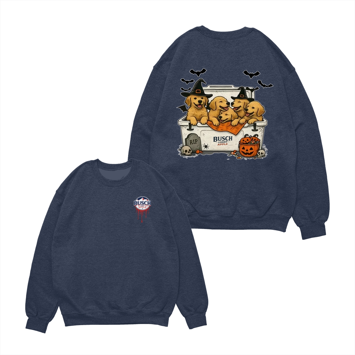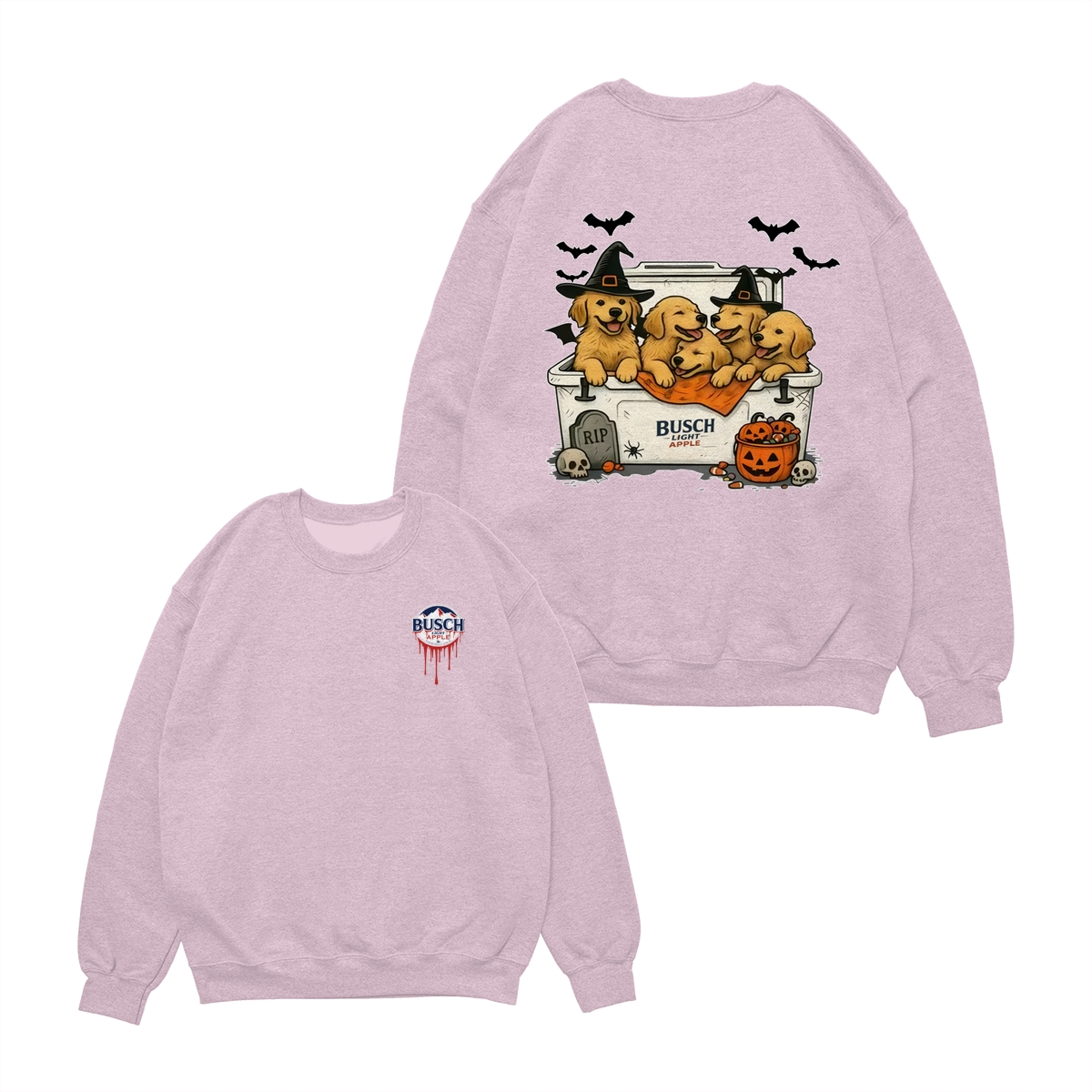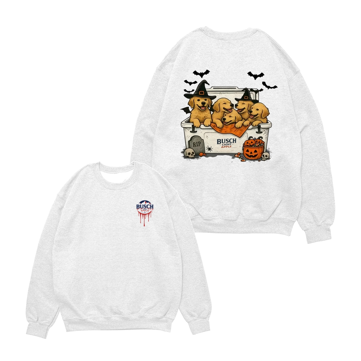 Halloween Cute Dog Busch Light T-Shirt for Golden Retriever Lovers T-Shirt for Men and Women, Spooky Season Beer Lover Tee, Funny Dog & Drink Graphic Shirt Casual Daily Wear
