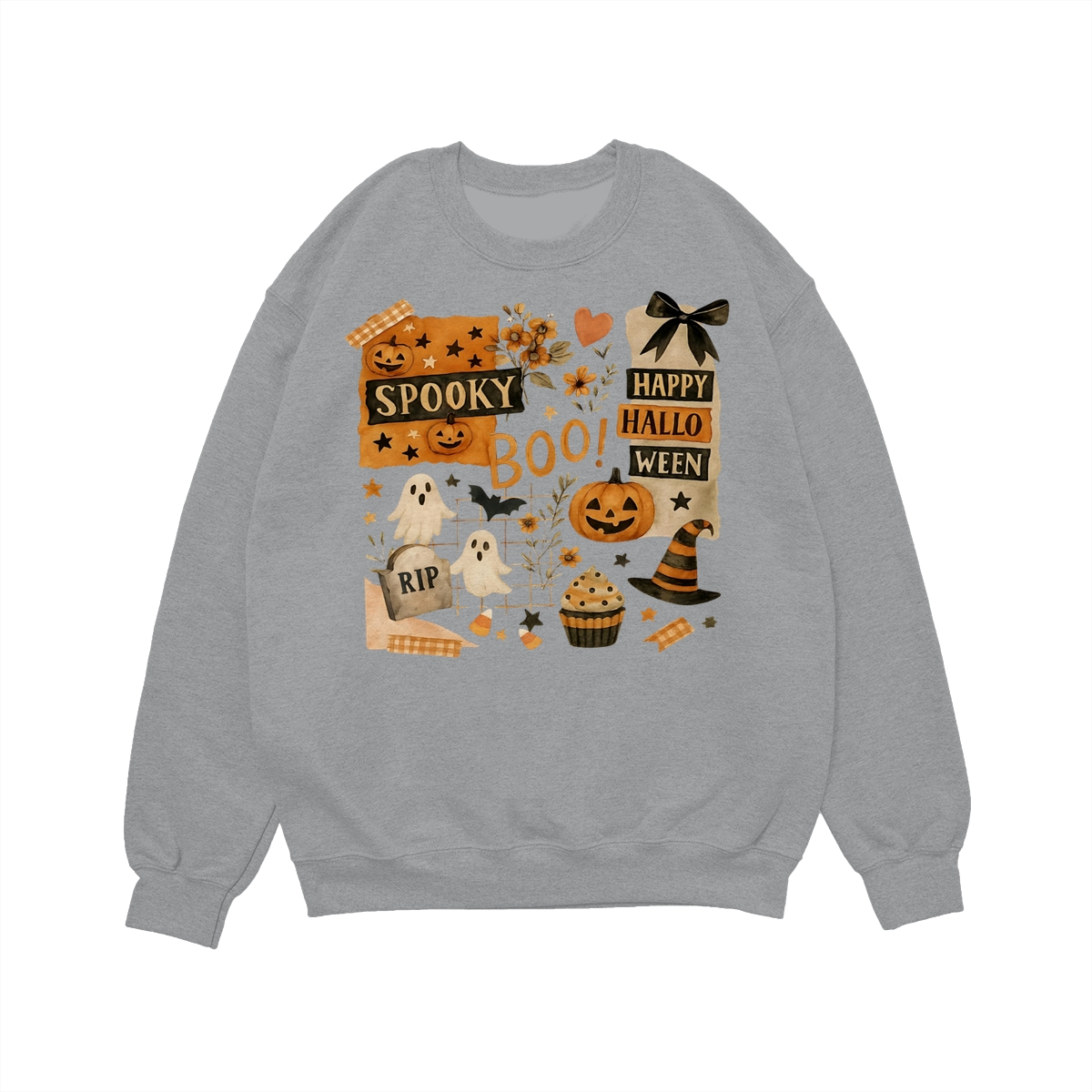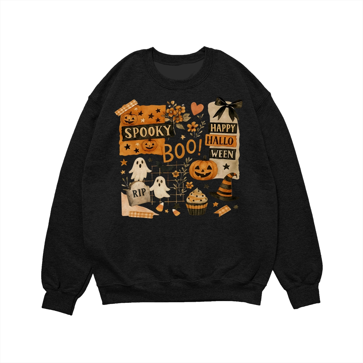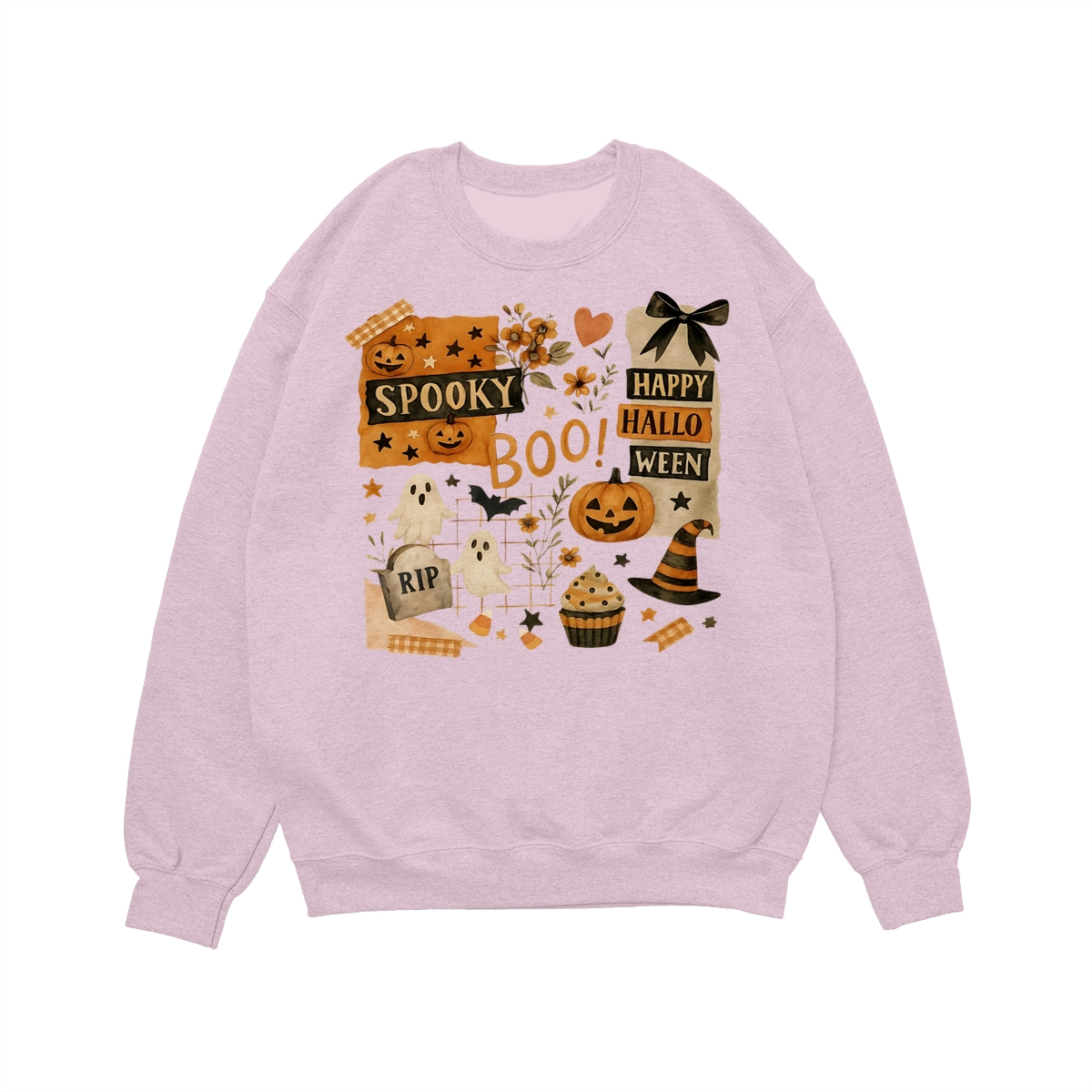 Halloween Fall Collage Girly Pumpkin Sweatshirt, Boho Floral Fall Halloween Tee, Autumn Vibes Spooky Season Shirt, Gifr for Her