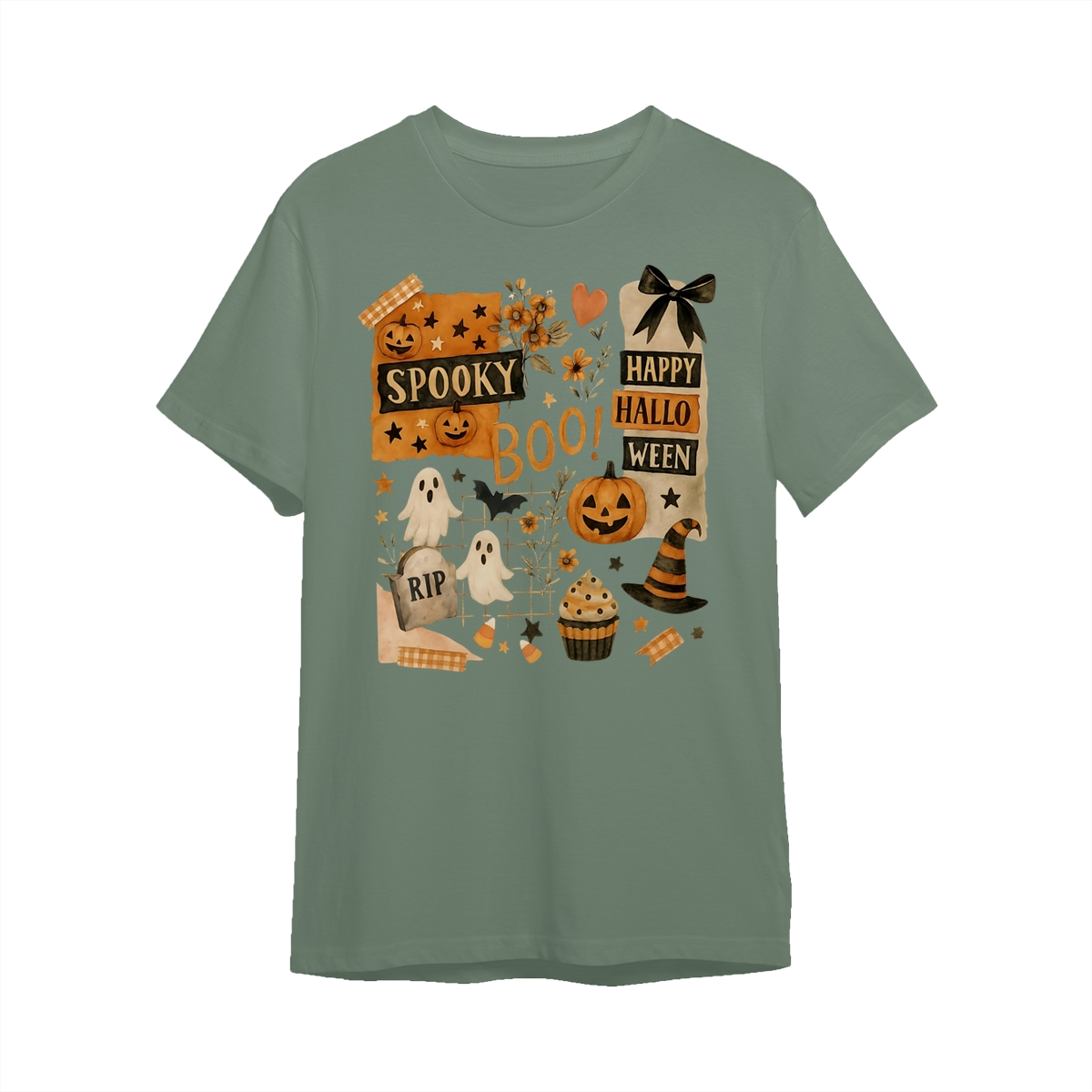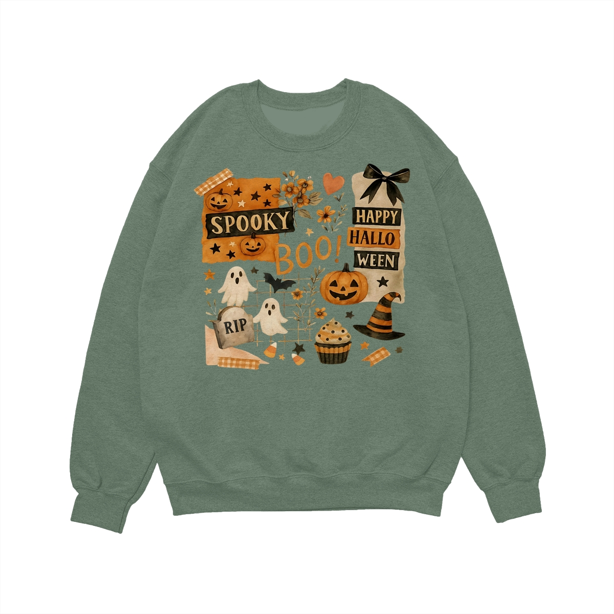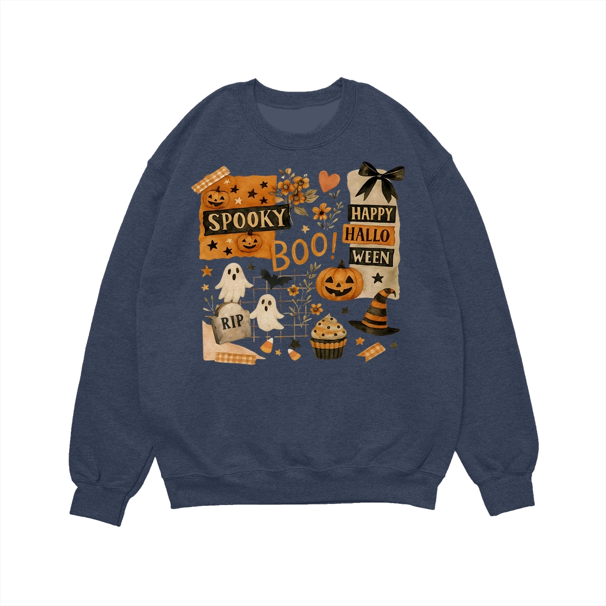 Halloween Fall Collage Girly Pumpkin Sweatshirt, Boho Floral Fall Halloween Tee, Autumn Vibes Spooky Season Shirt, Gifr for Her