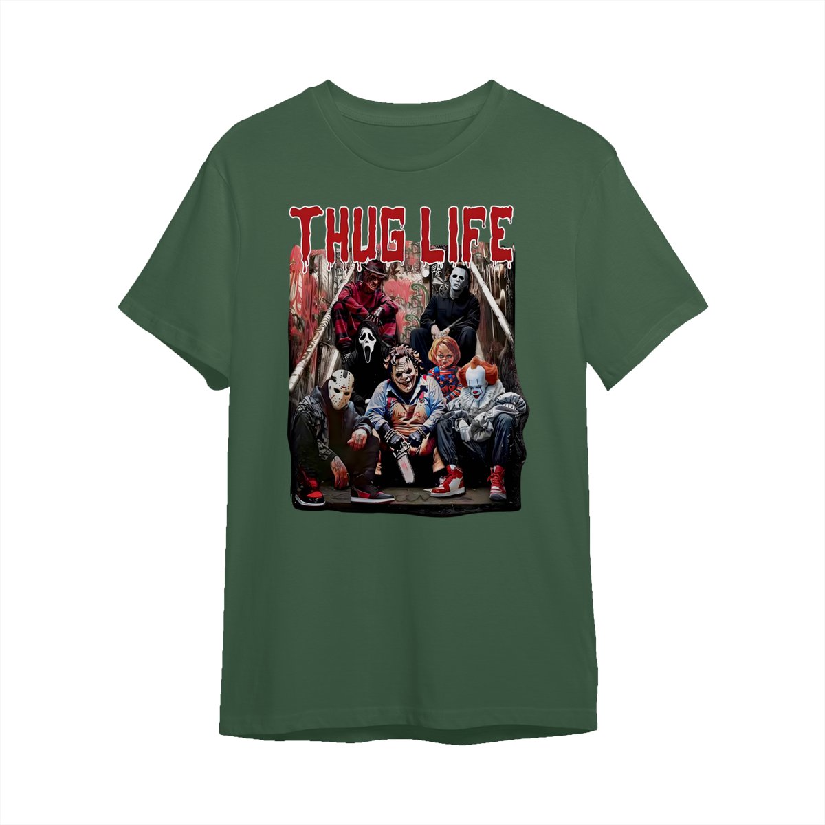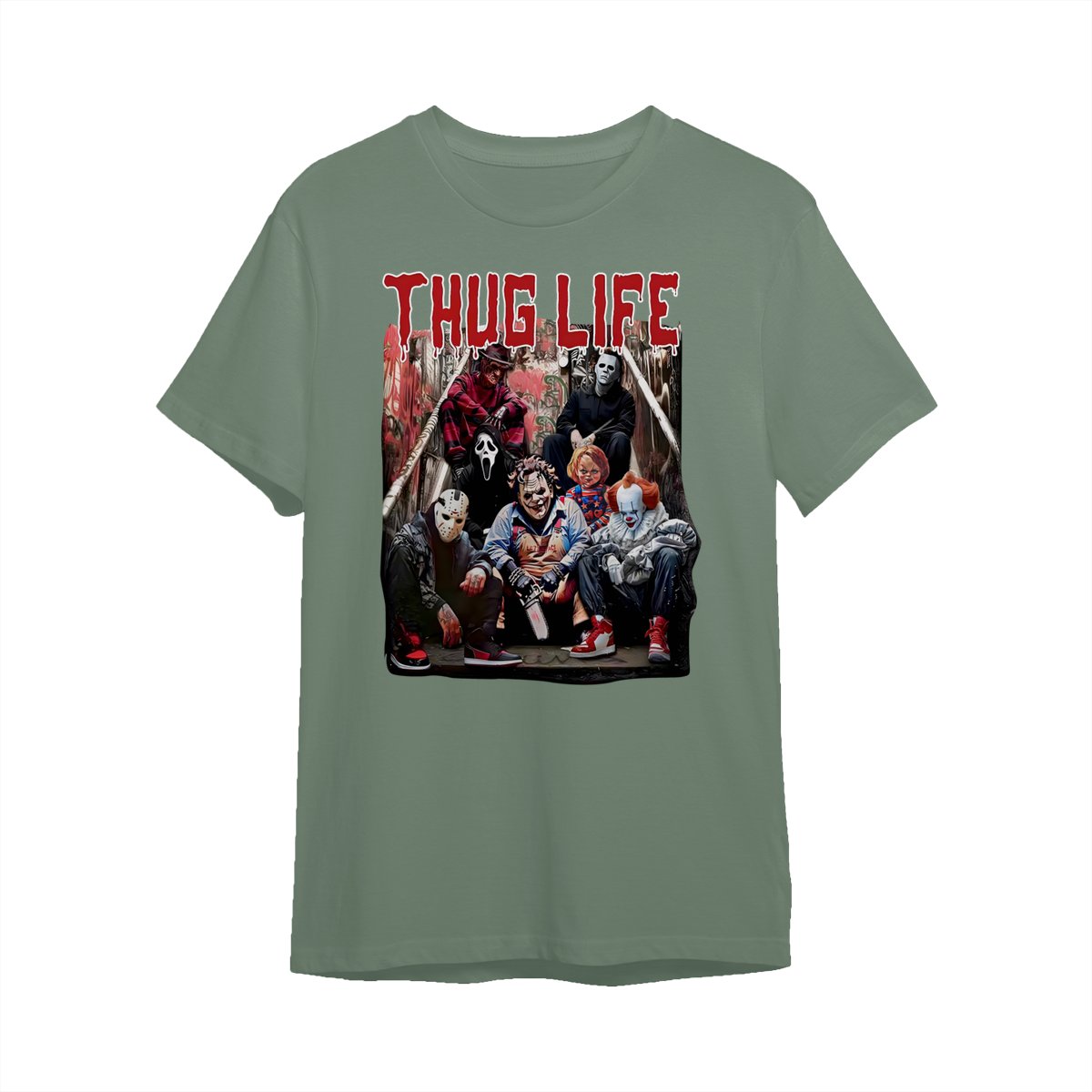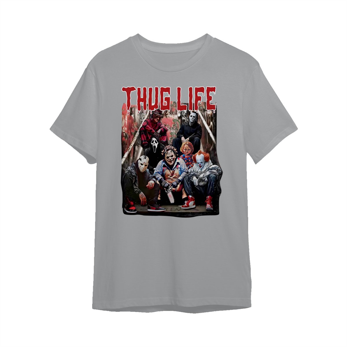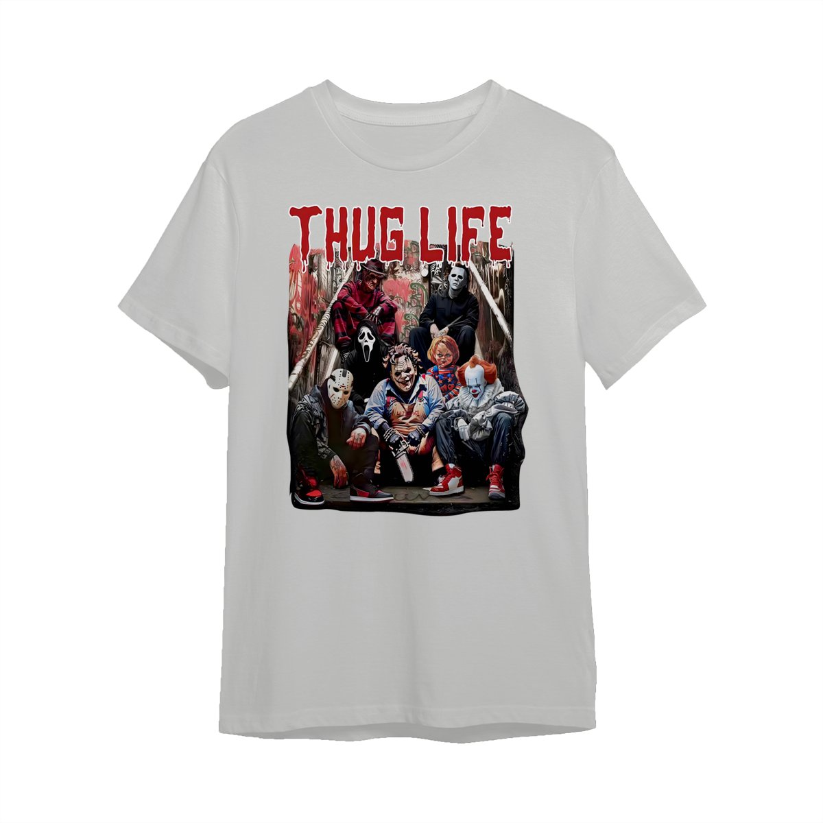 Halloween Horror Characters THUG LIFE Shirt, Retro Horror Characters Halloween Tee, Halloween Menswear Top Underwear Streetwear