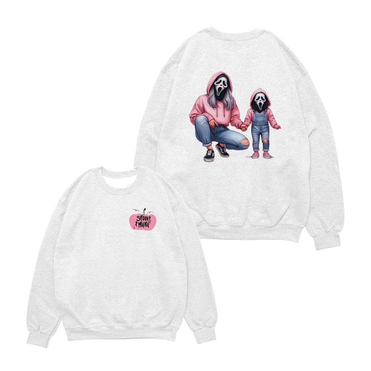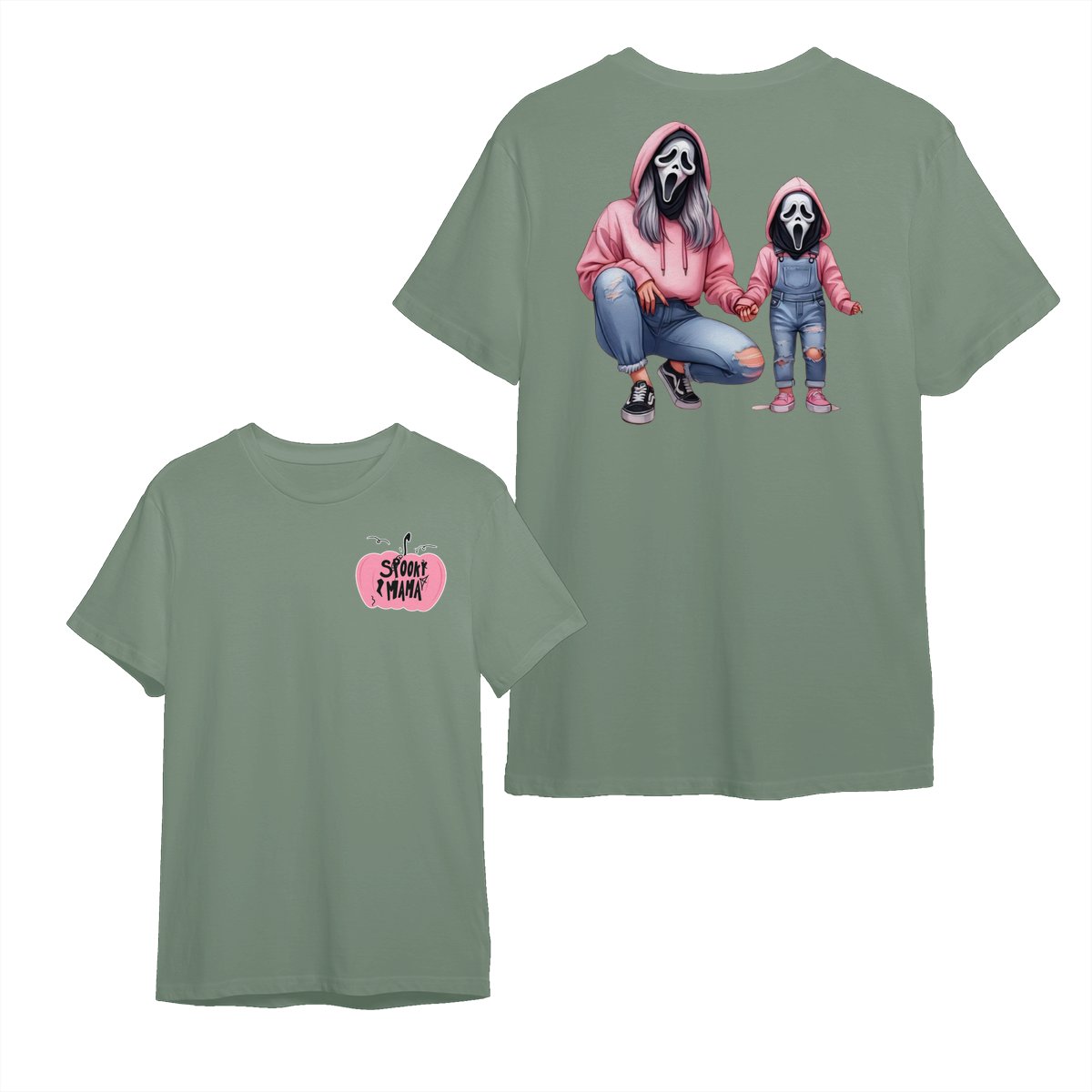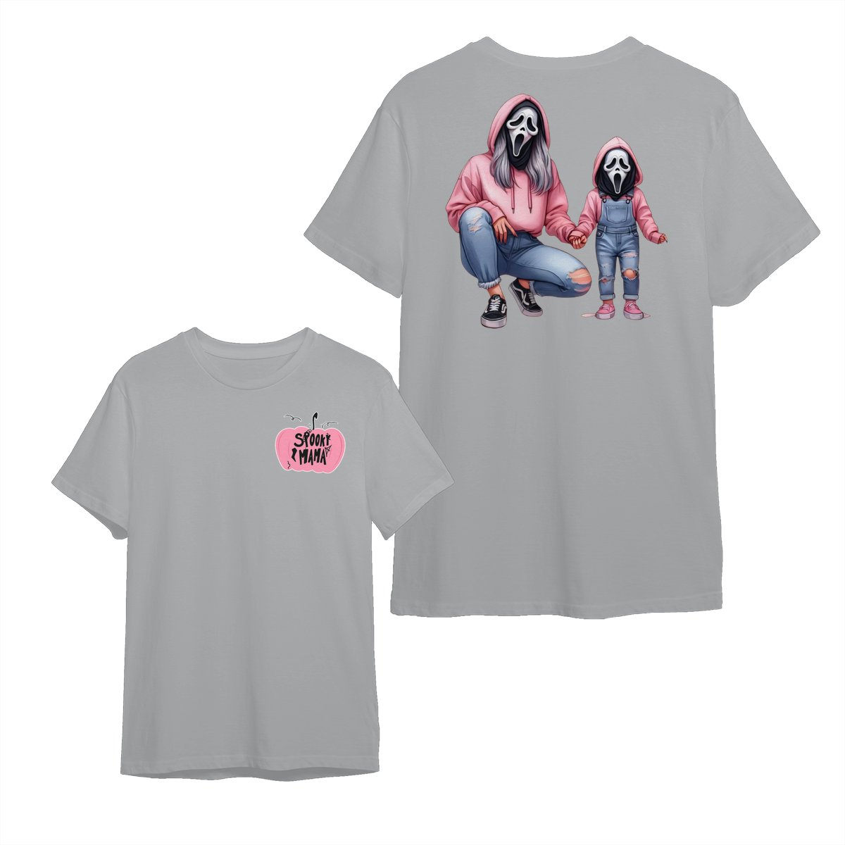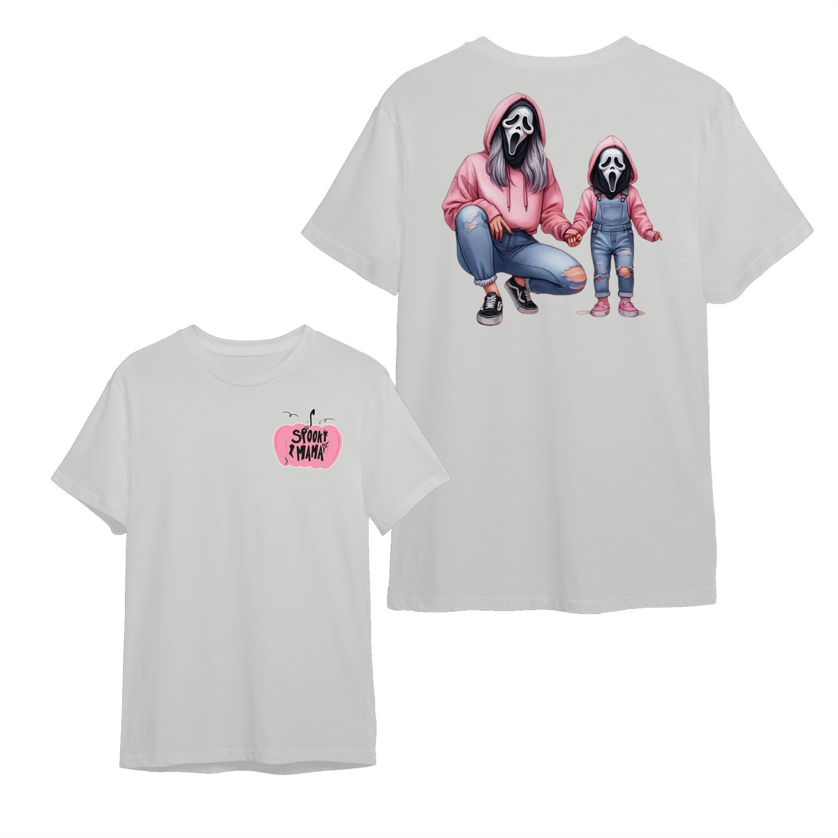 Halloween Mama & Kid Shirt – Cute Ghostface Mom and Daughter Matching Graphic, Spooky Family Costume, Womenswear Top, Cozy Party Outfit, Trending Holiday Fashion