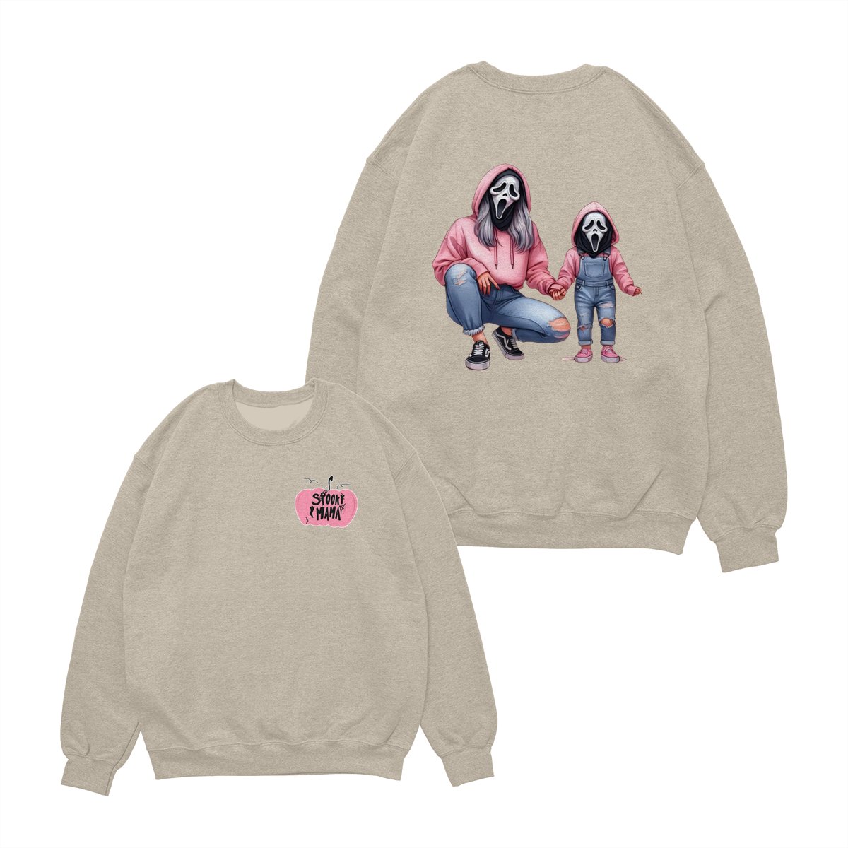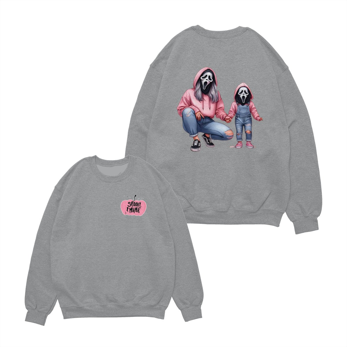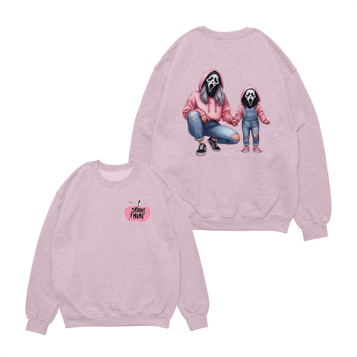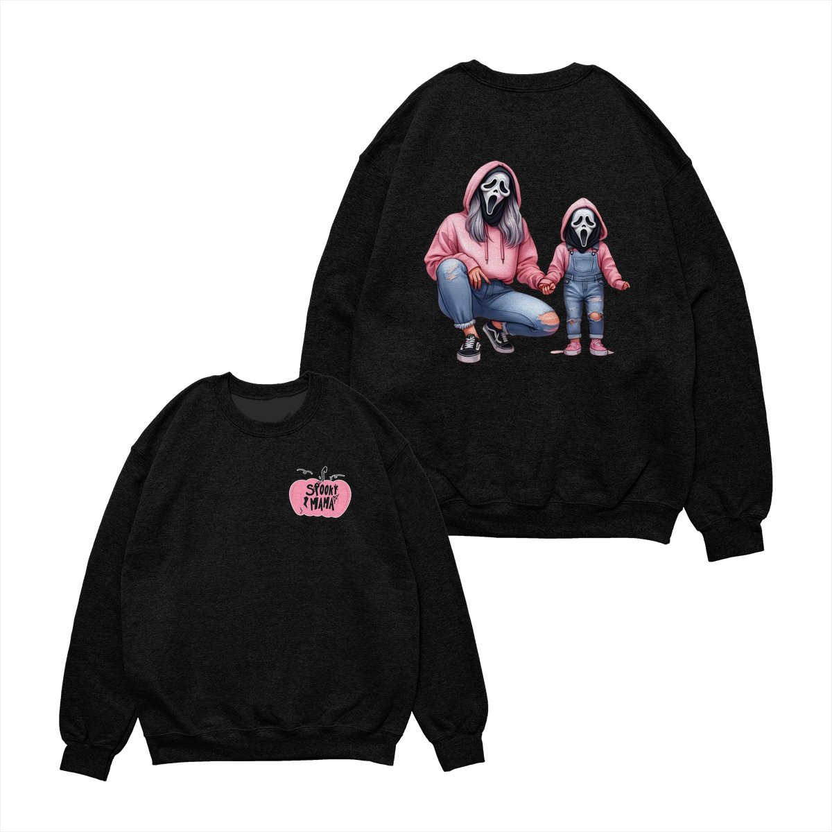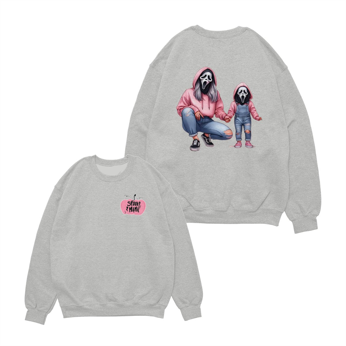 Halloween Mama & Kid Shirt – Cute Ghostface Mom and Daughter Matching Graphic, Spooky Family Costume, Womenswear Top, Cozy Party Outfit, Trending Holiday Fashion