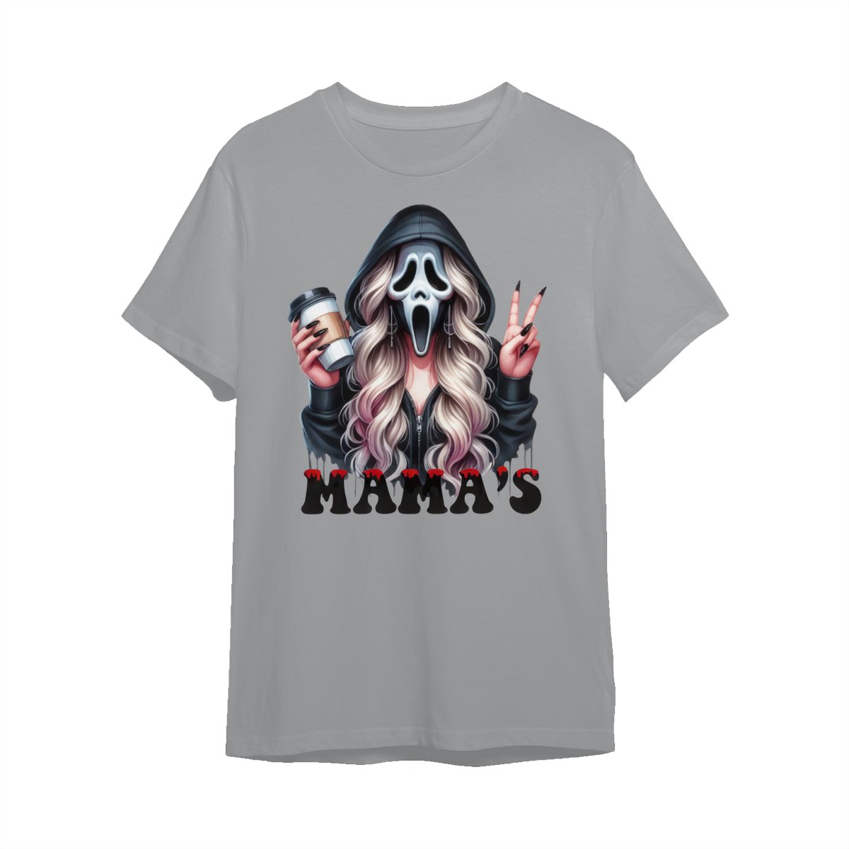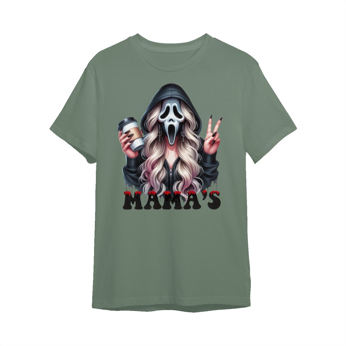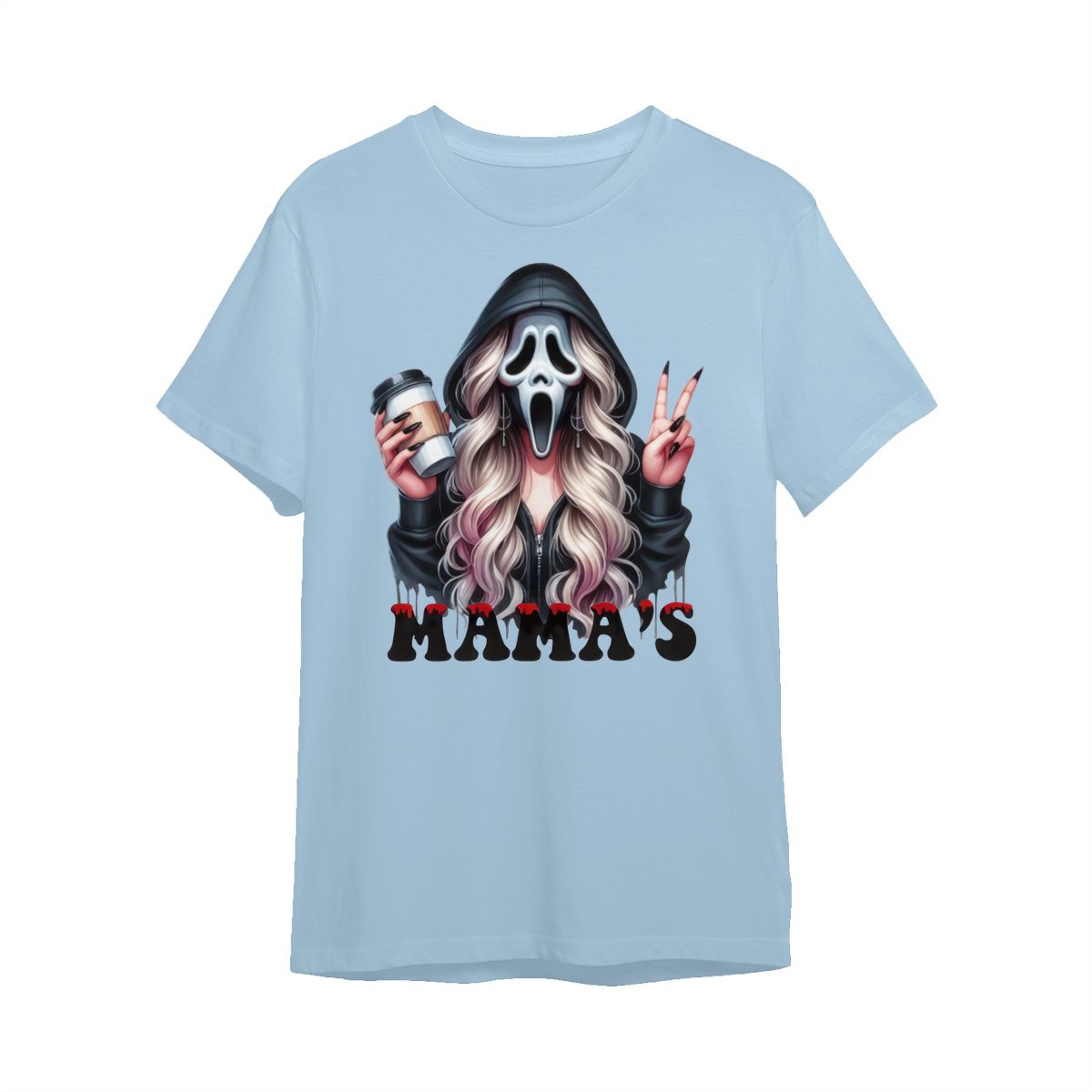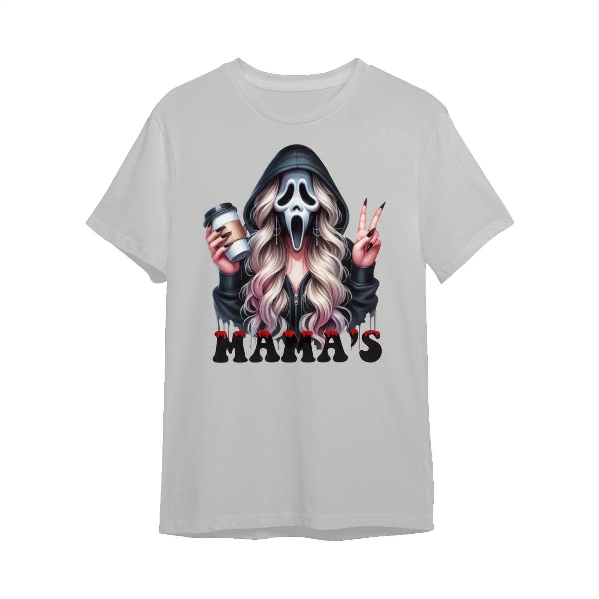 Halloween Mama’s Shirt Tee – Spooky Ghost Face Shirt, Coffee Lover Creepy Streetwear, Scary Cute Fall Outfit for Women, Trick or Treat Party Look