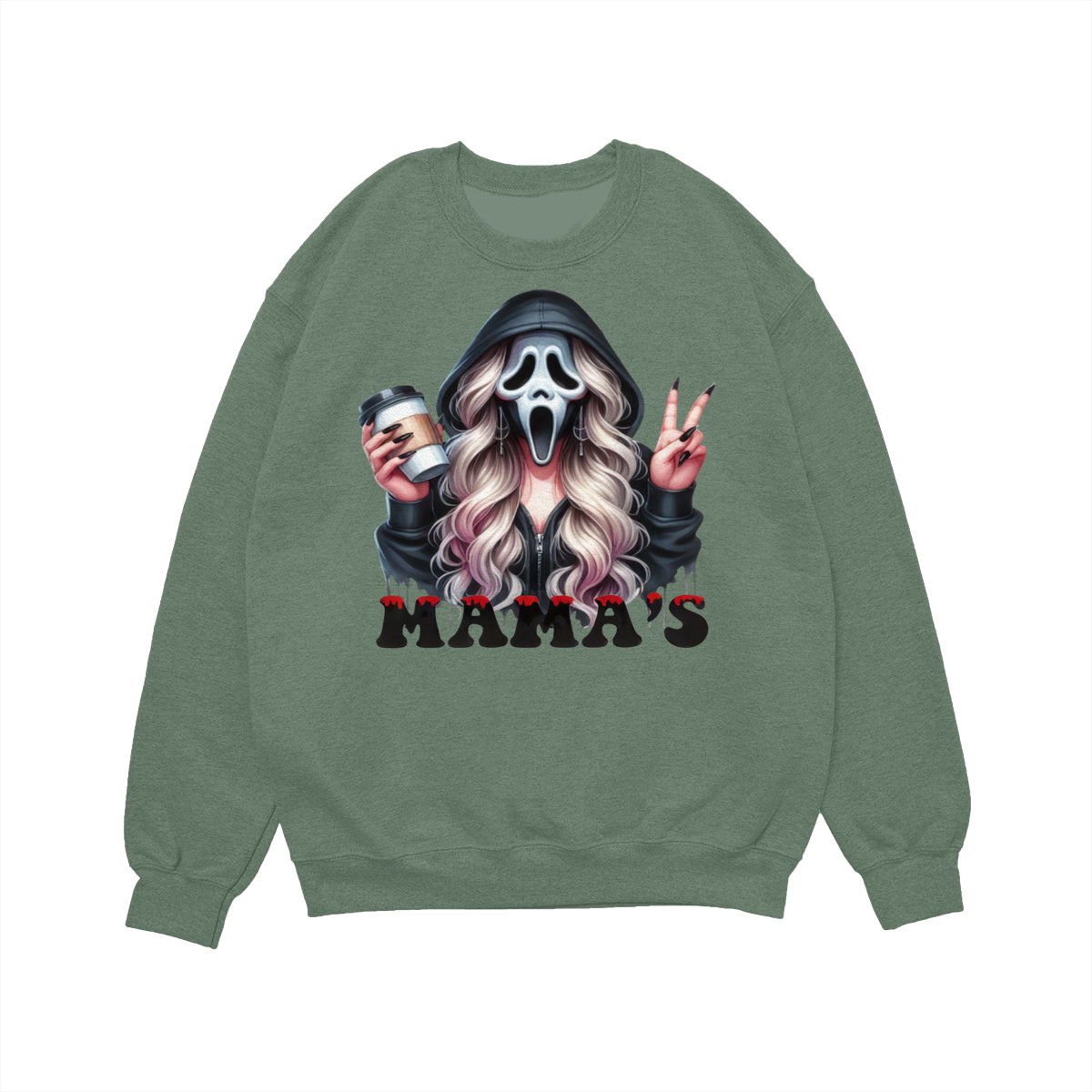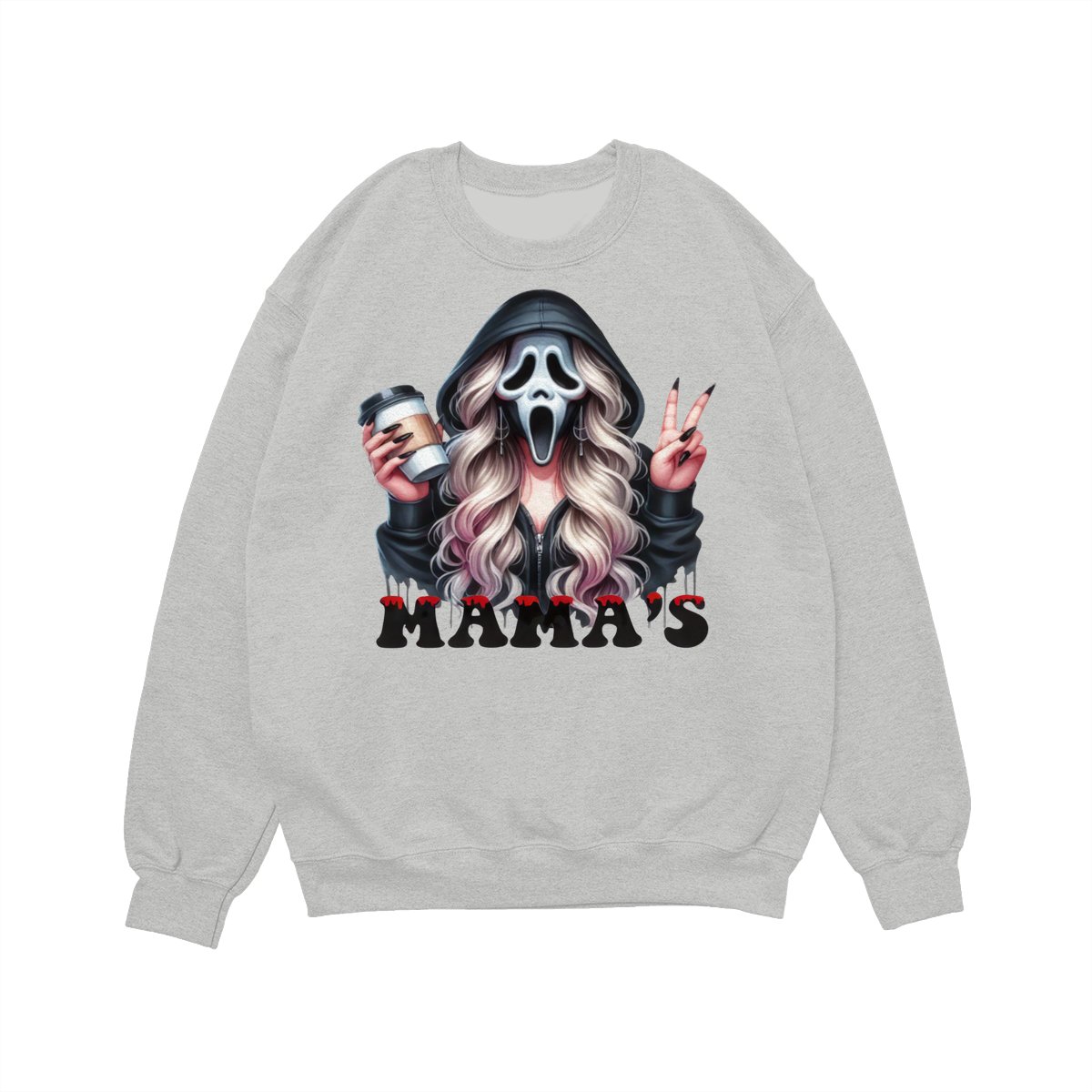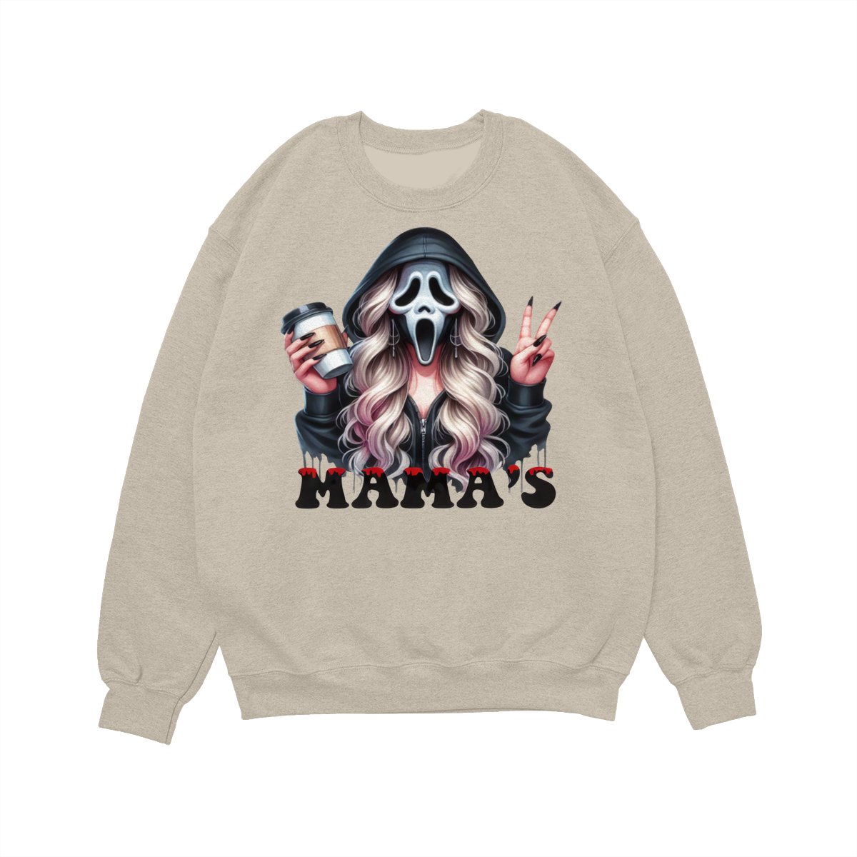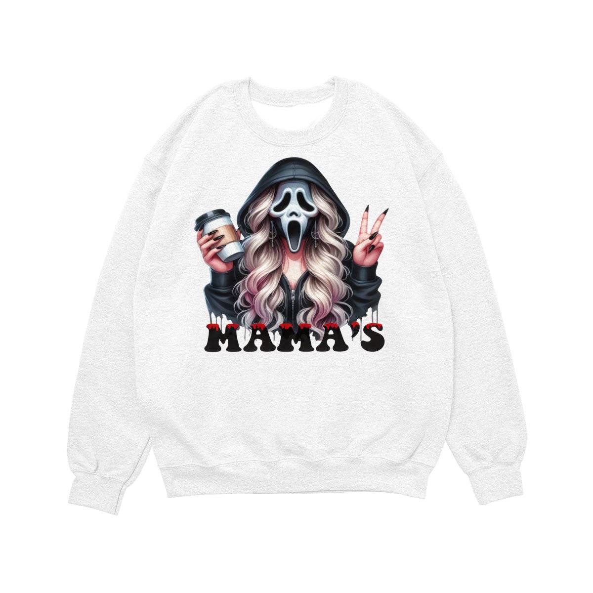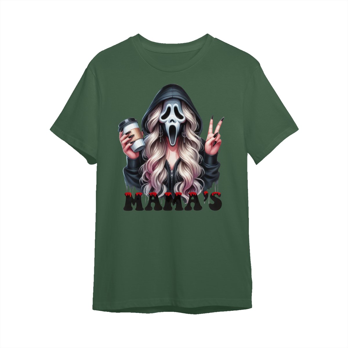 Halloween Mama’s Shirt Tee – Spooky Ghost Face Shirt, Coffee Lover Creepy Streetwear, Scary Cute Fall Outfit for Women, Trick or Treat Party Look