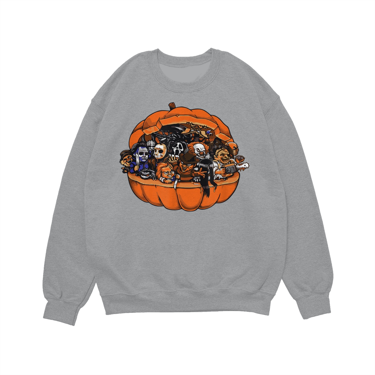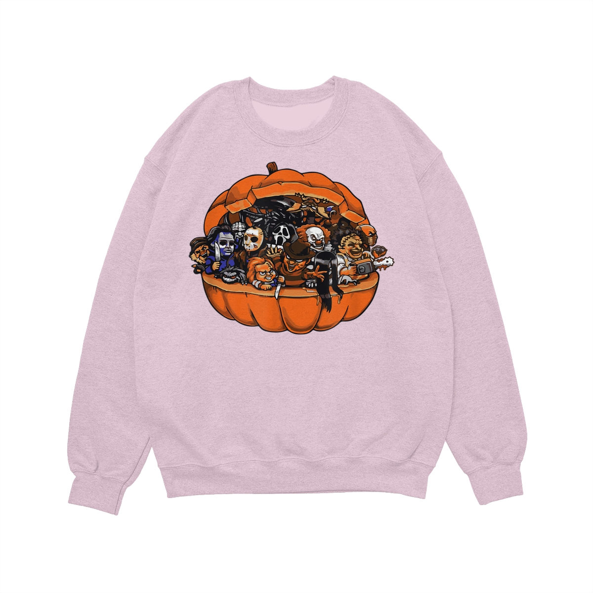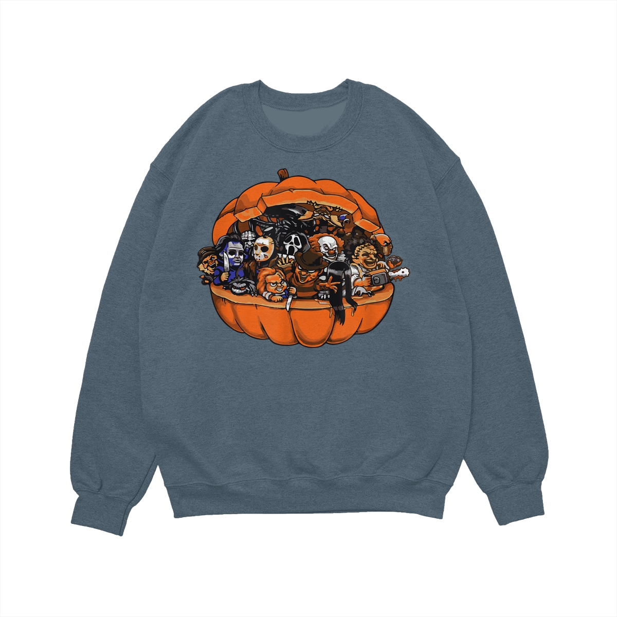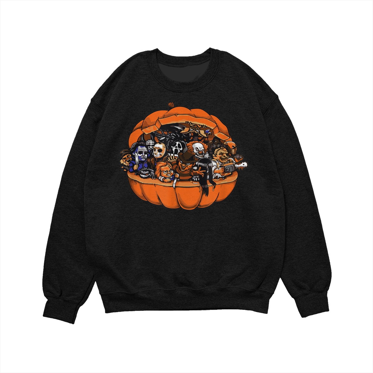 Halloween Pumpkin Squad Sweatshirt, Horror Movie Character Pullover For Women, Spooky Season Cozy Sweater With Funny Creepy Graphic, Fall Outfit For October