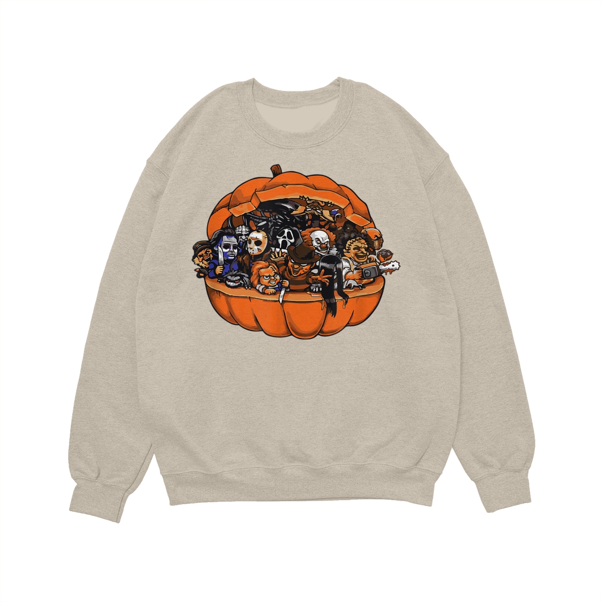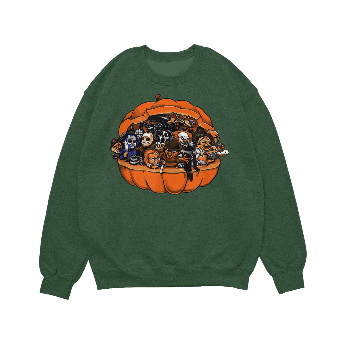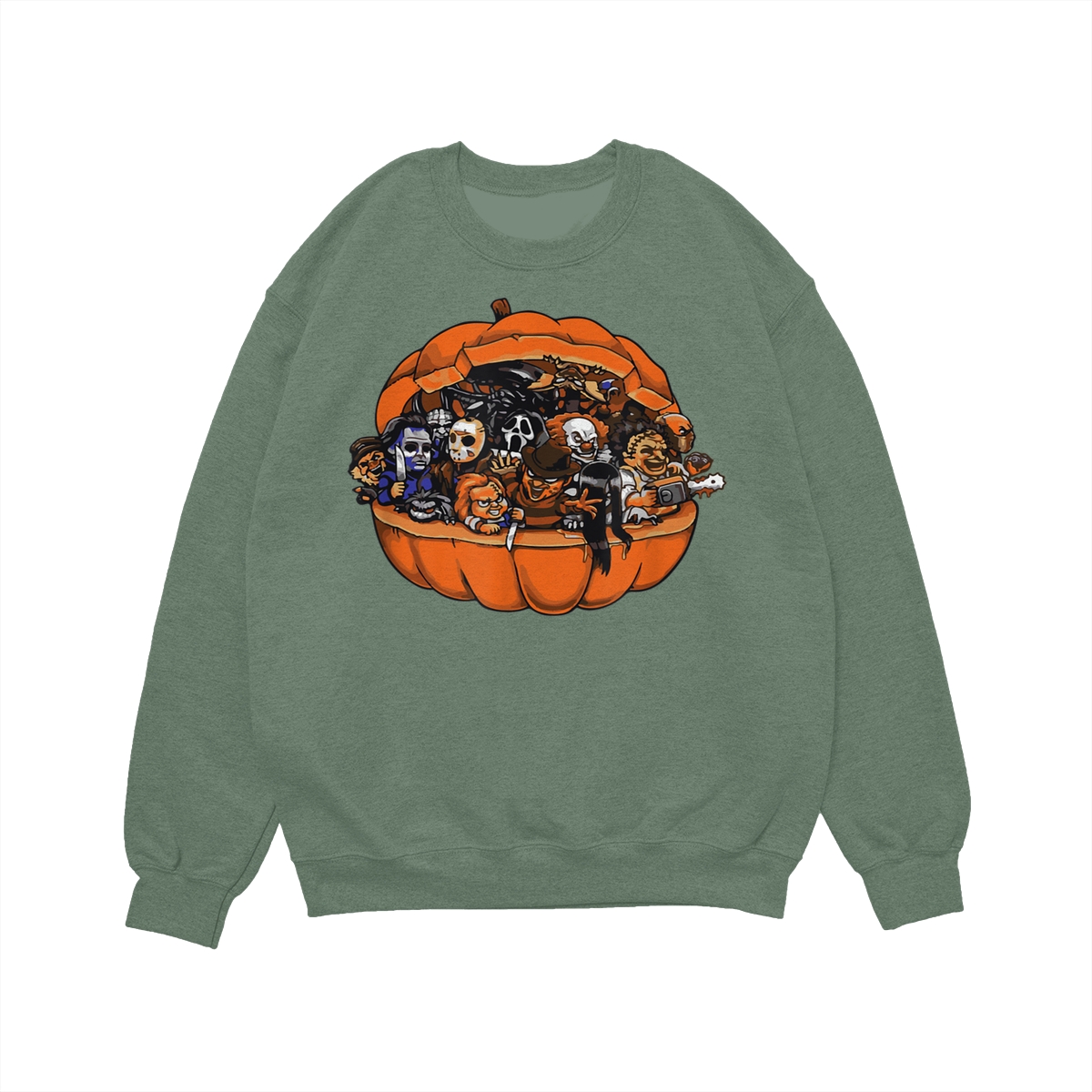 Halloween Pumpkin Squad Sweatshirt, Horror Movie Character Pullover For Women, Spooky Season Cozy Sweater With Funny Creepy Graphic, Fall Outfit For October