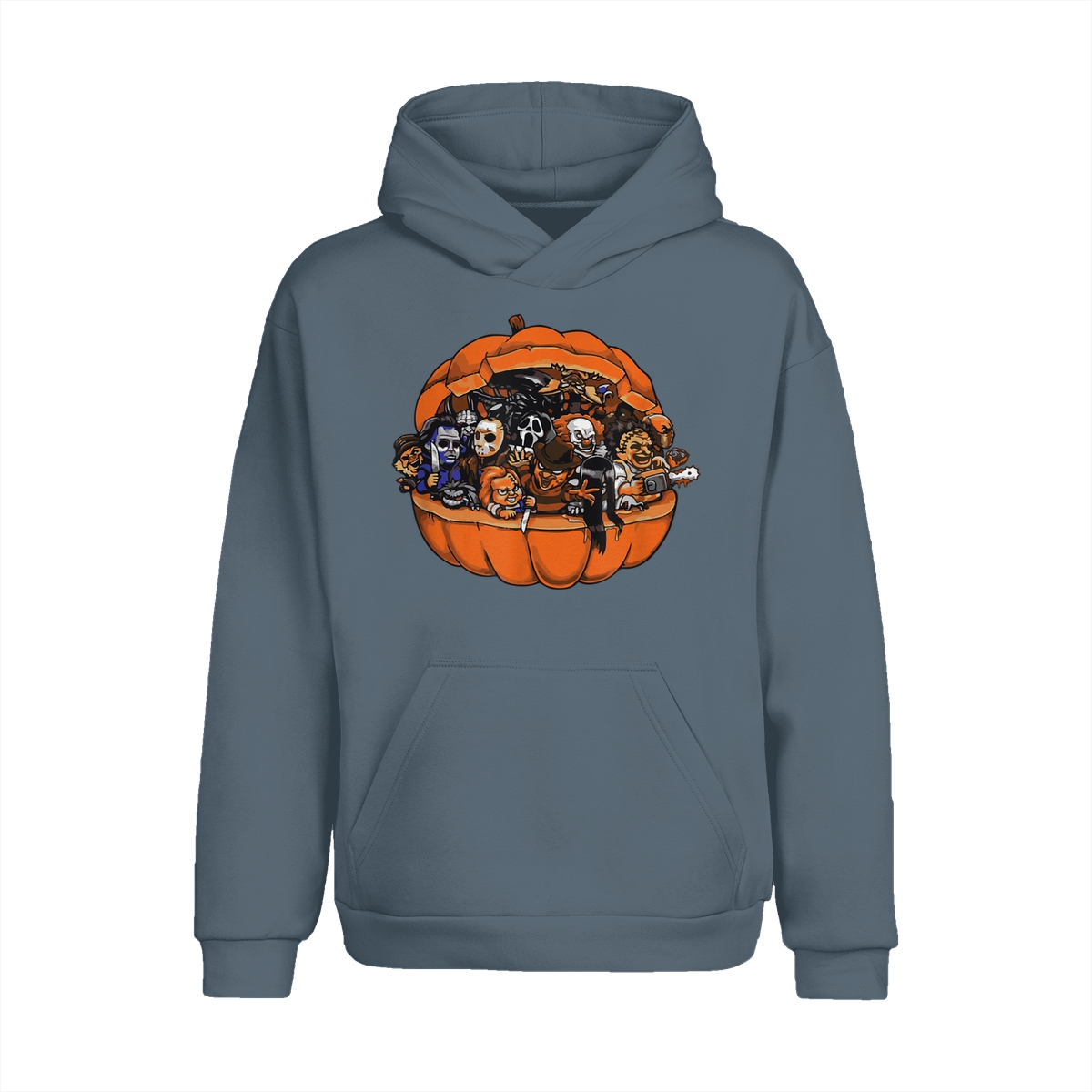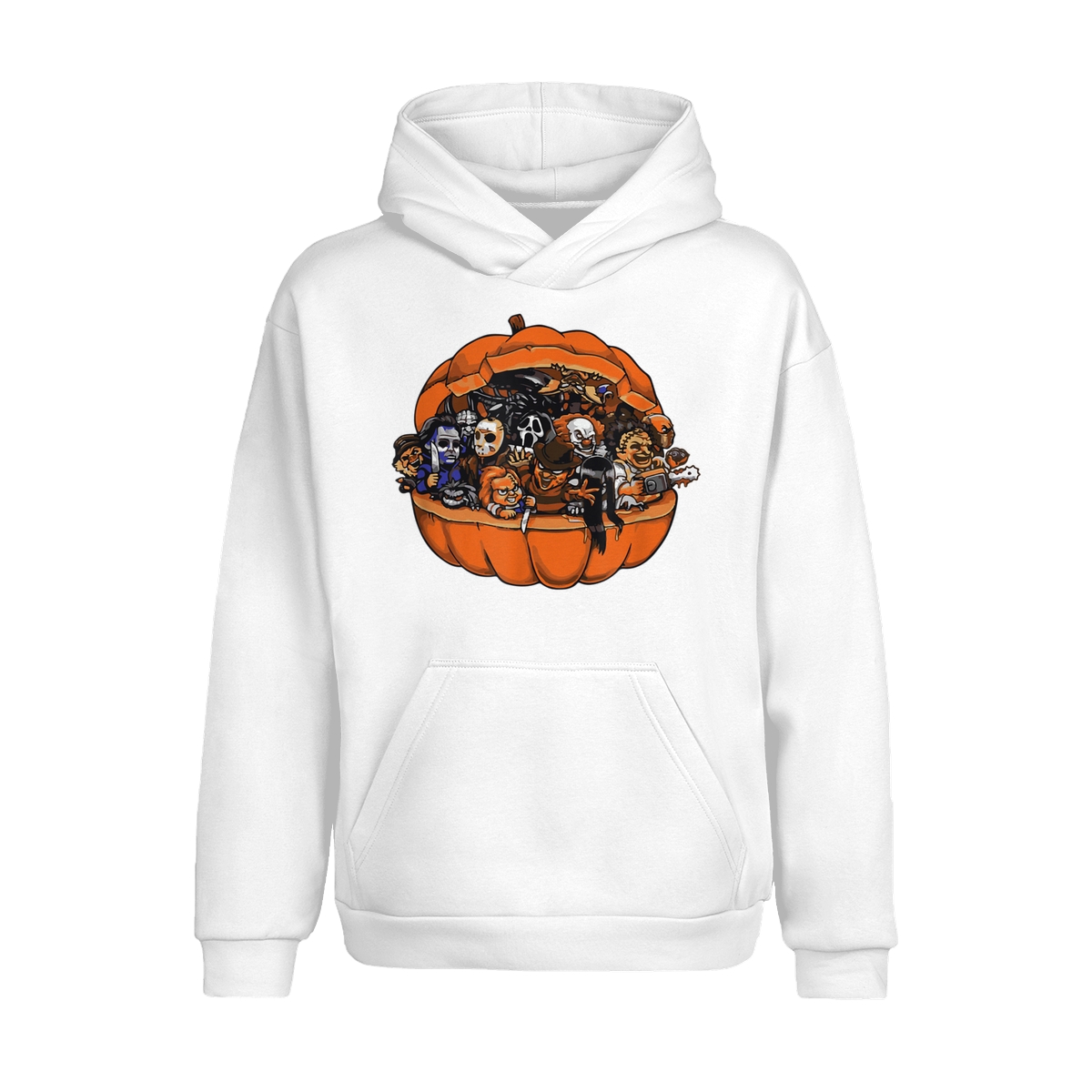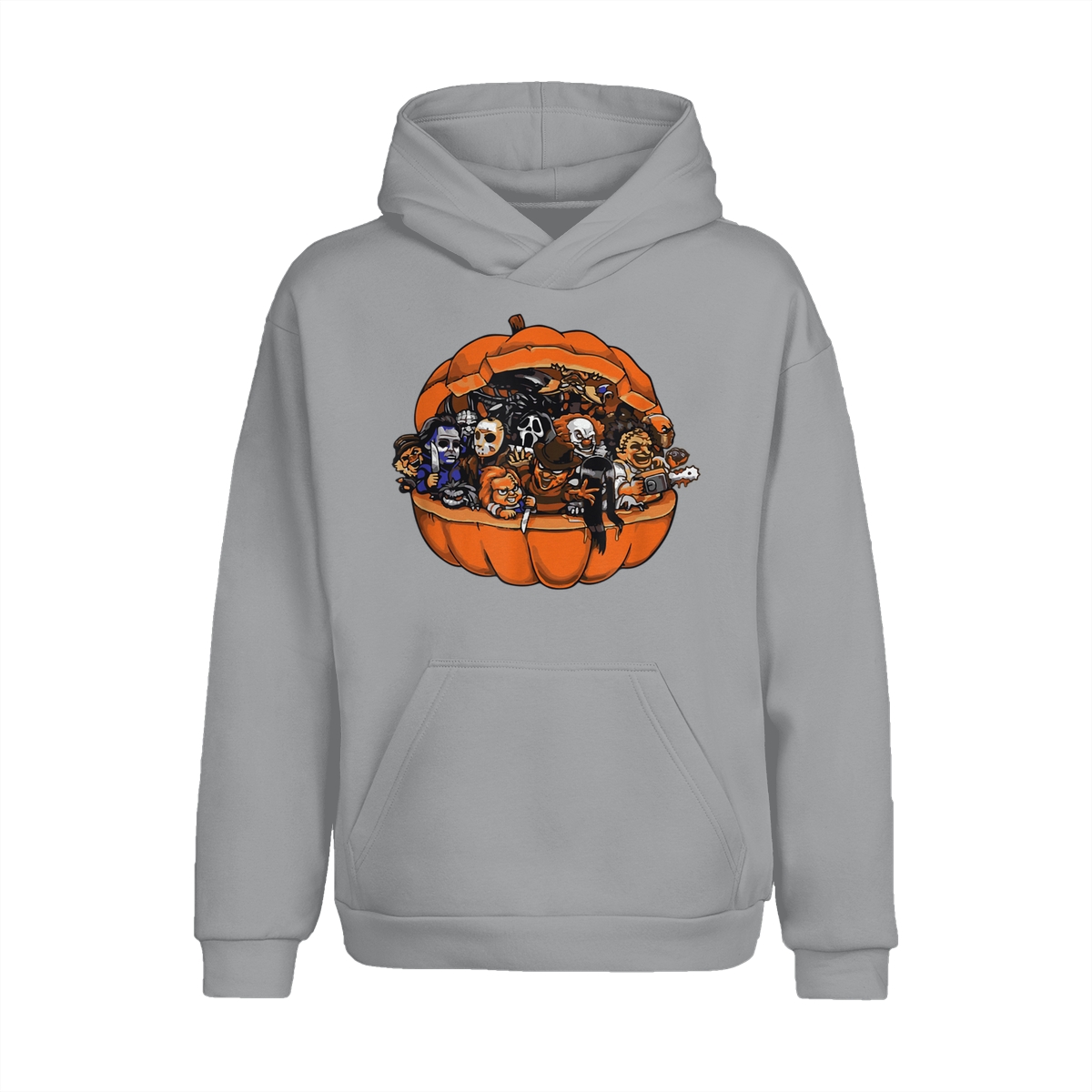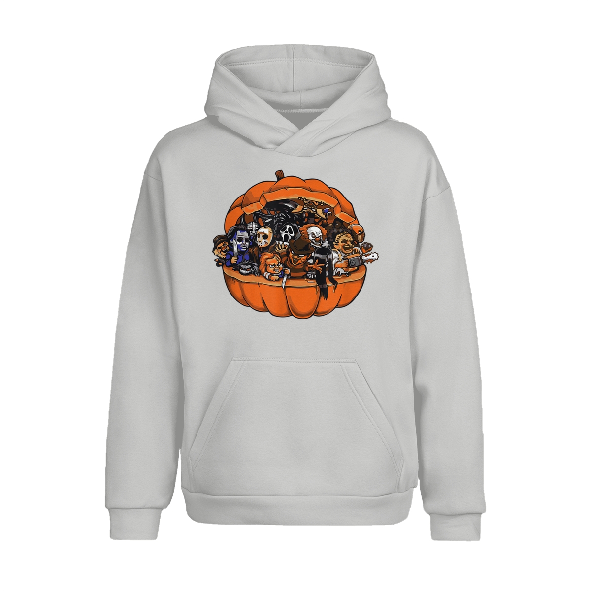 Halloween Pumpkin Squad Sweatshirt, Horror Movie Character Pullover For Women, Spooky Season Cozy Sweater With Funny Creepy Graphic, Fall Outfit For October