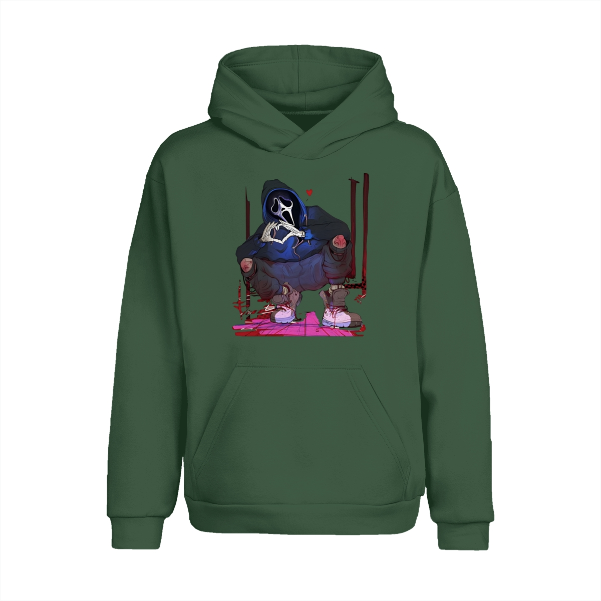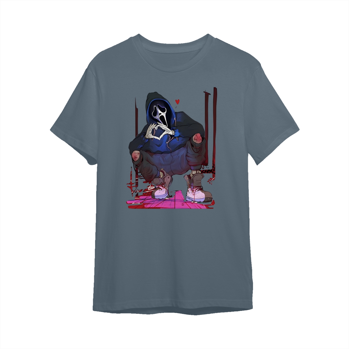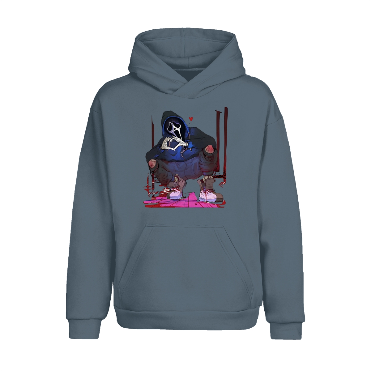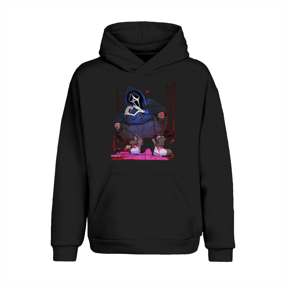 Halloween Shirt – Cool Ghost Mask Character In Hoodie And Sneakers , Street Style Graphic With Heart Hand Sign , Trendy Unisex Pullover , Perfect For Halloween Parties , Autumn Outfit , Holiday Gift Casual Crewneck