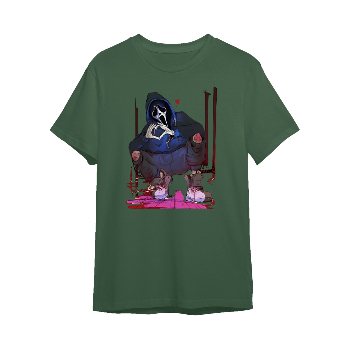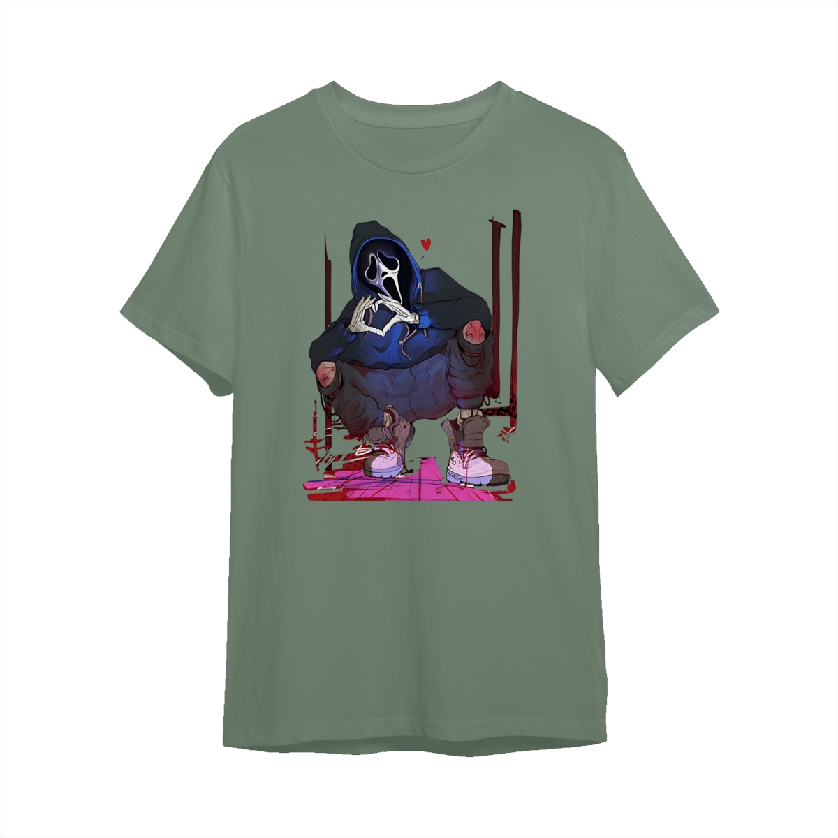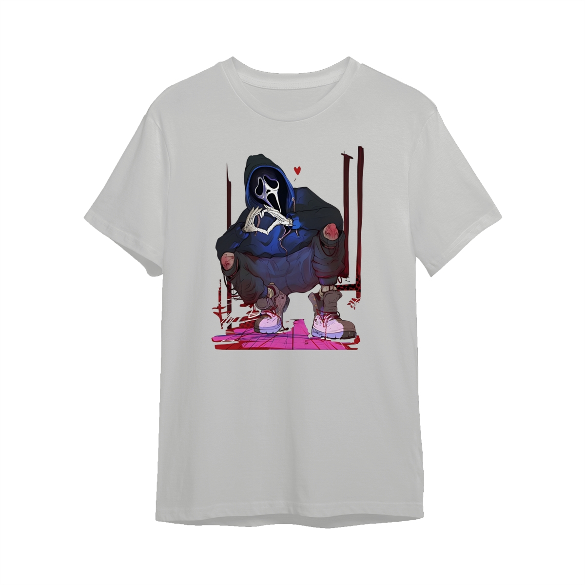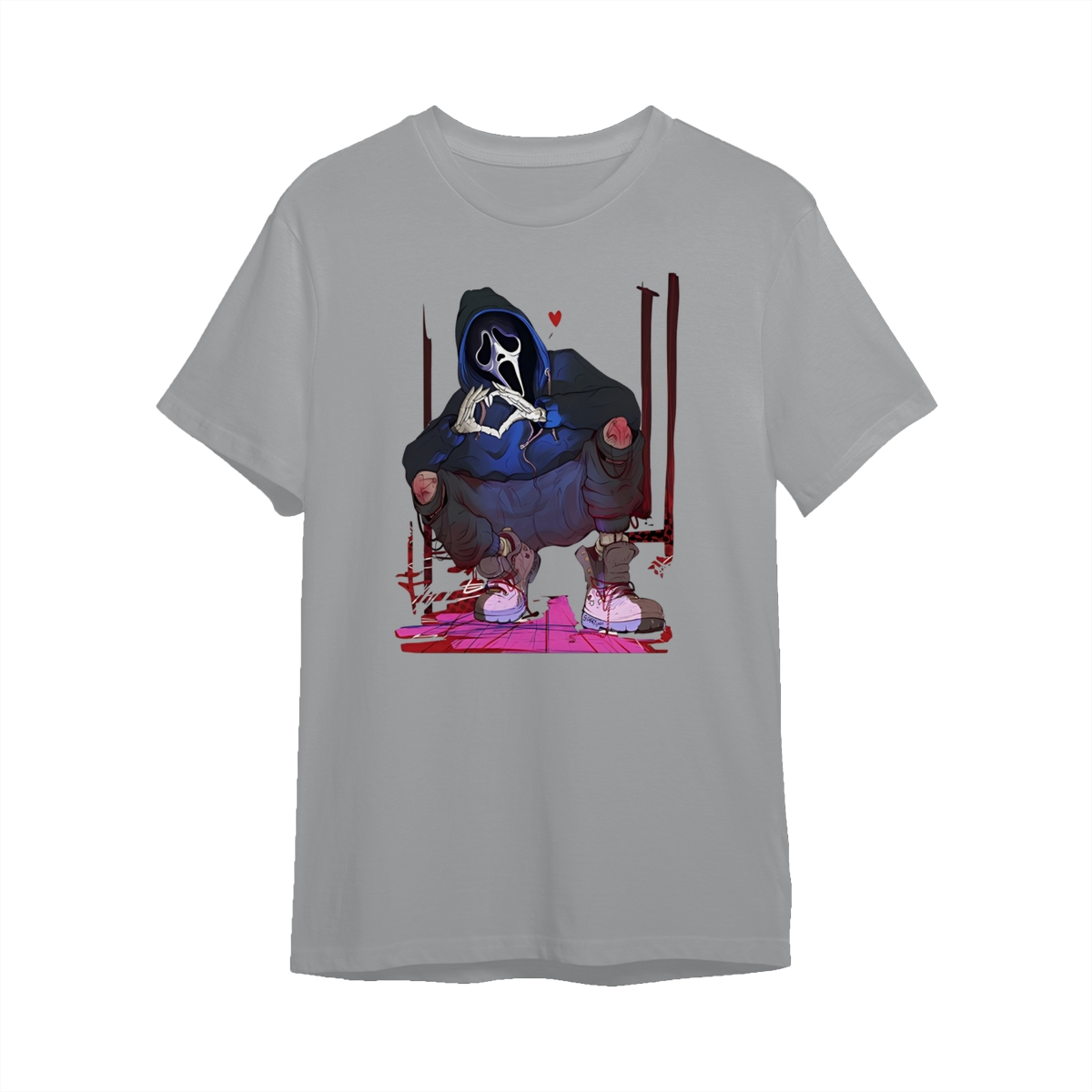 Halloween Shirt – Cool Ghost Mask Character In Hoodie And Sneakers , Street Style Graphic With Heart Hand Sign , Trendy Unisex Pullover , Perfect For Halloween Parties , Autumn Outfit , Holiday Gift Casual Crewneck