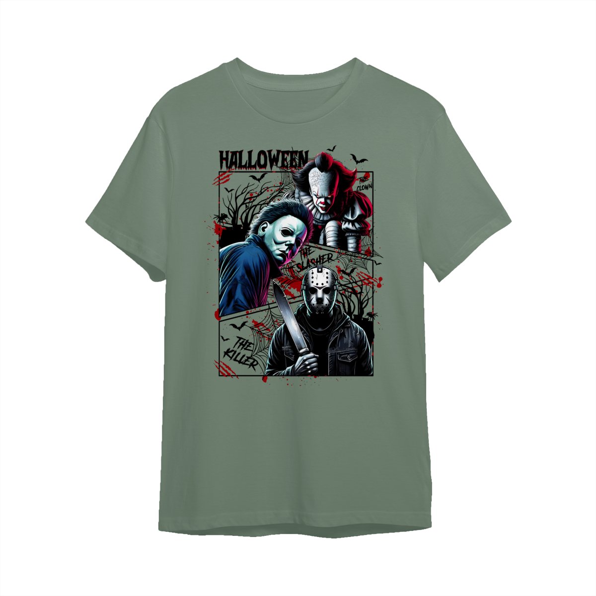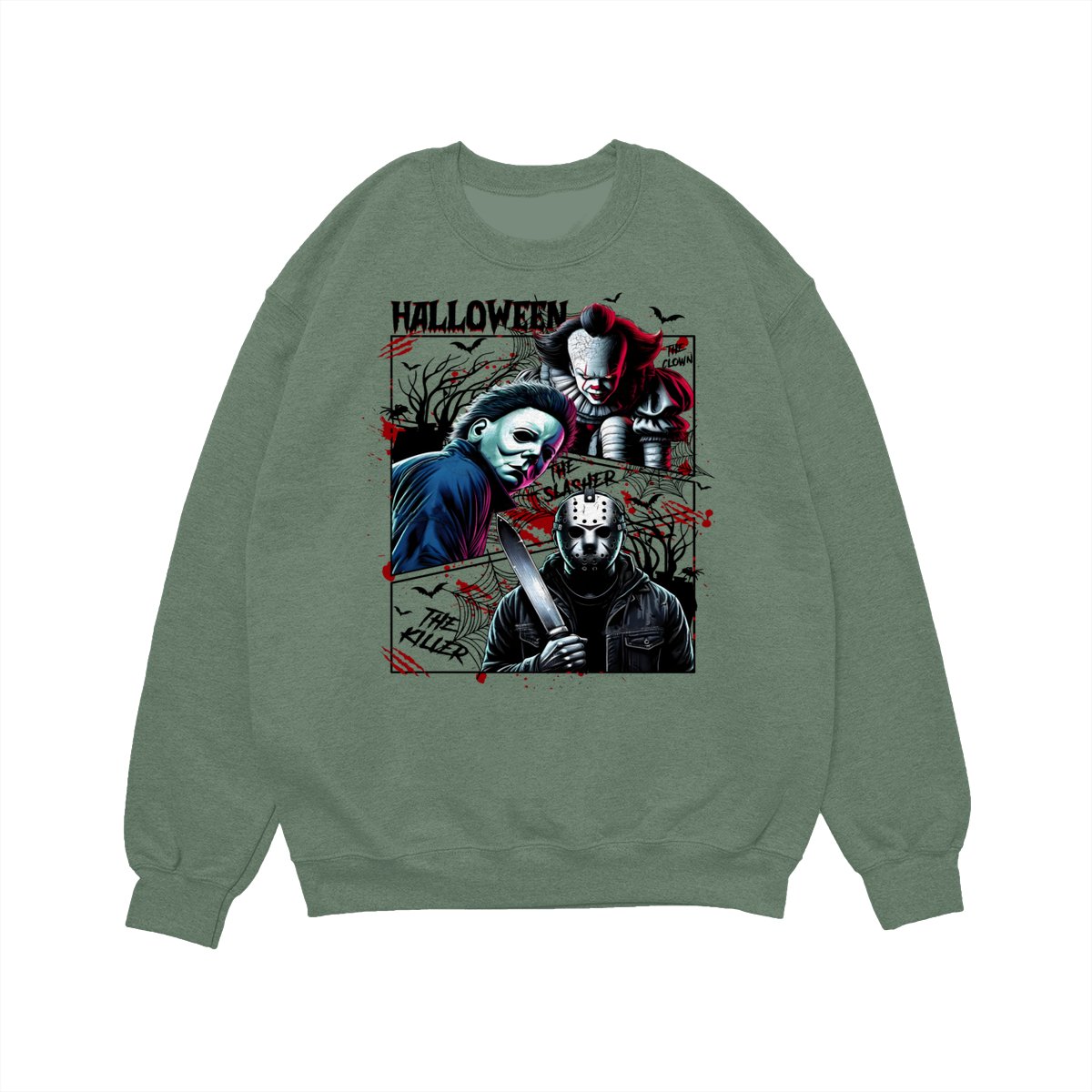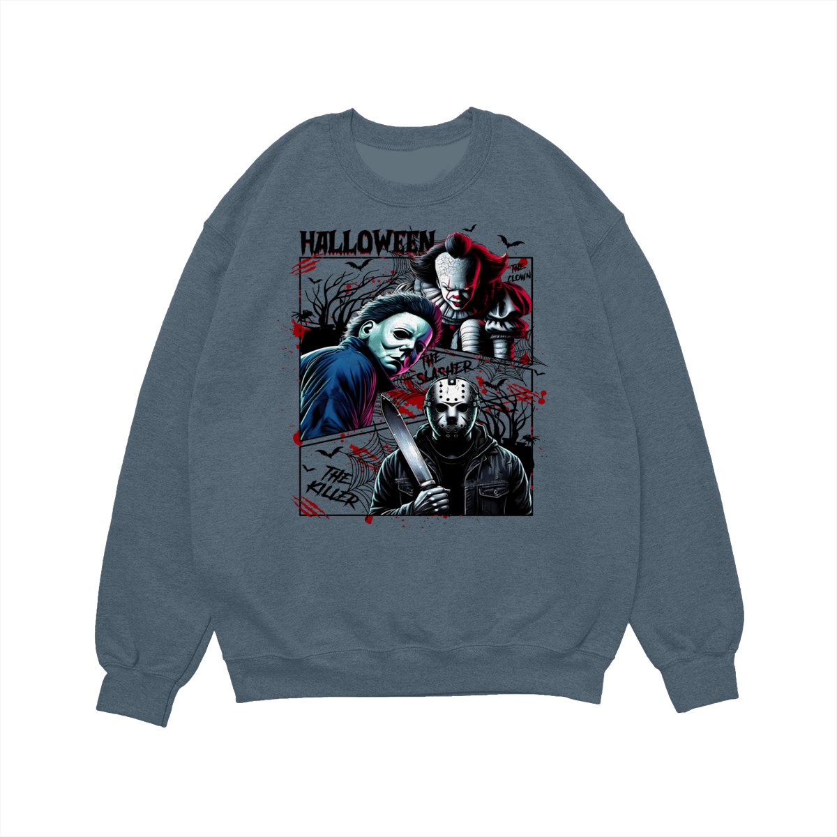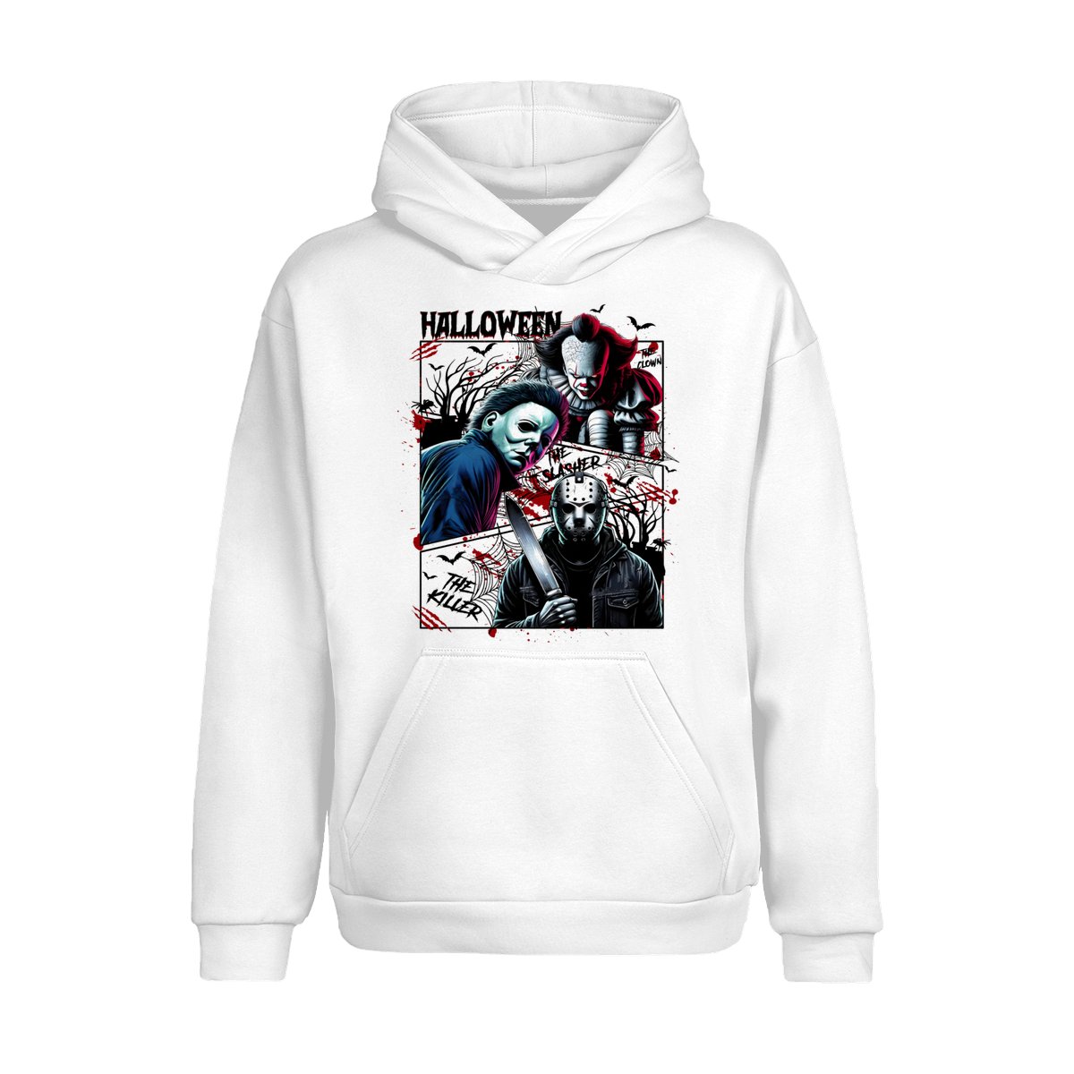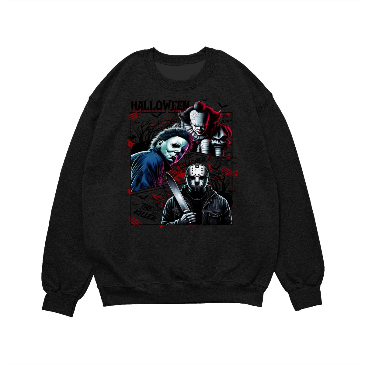 Halloween Slasher Trio TShirt – Sweatshirt – Hoodie, Featuring Scary Characters Graphic Tee, Spooky Movie Shirt, Gift For Horror Fans, Fall Autumn Vibes