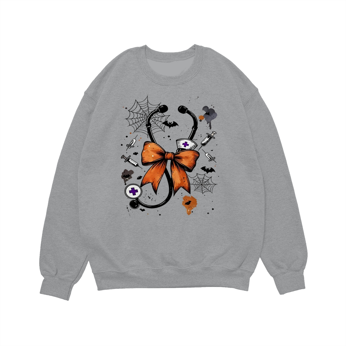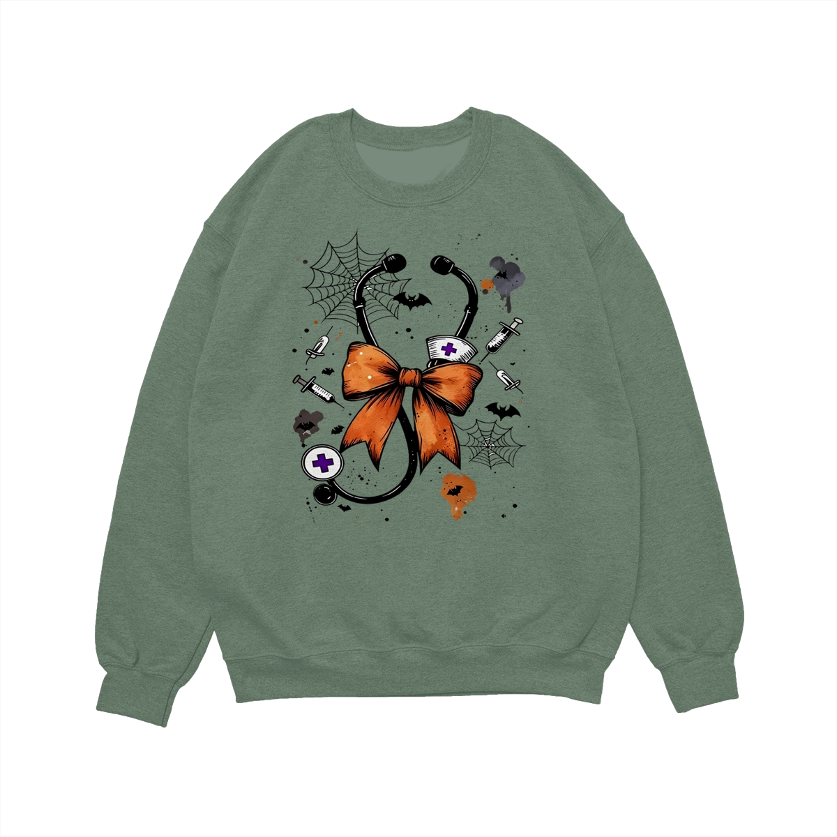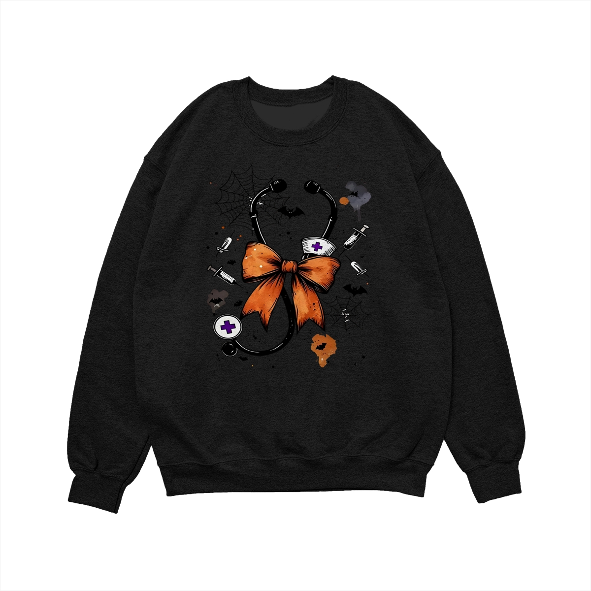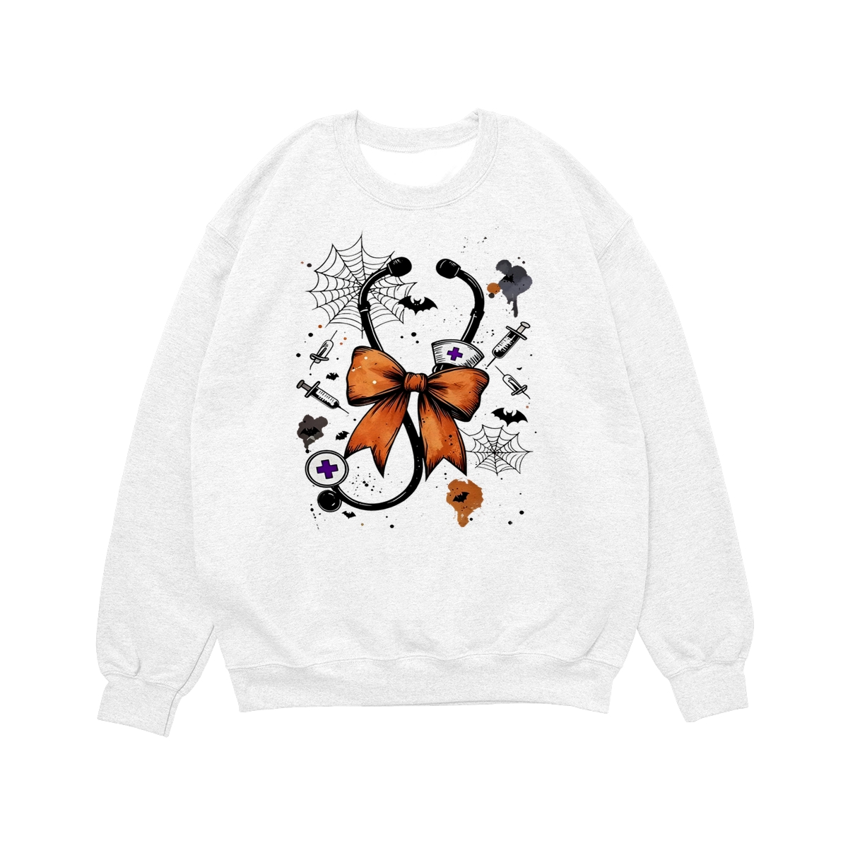 Halloween Stethoscope Bow Shirt, Retro Halloween Bow Nurse Sweater, Cute Nursing School Shirt, Funny Nurse Shirt, RN Student Gift, Nursing Life Graphic Shirt