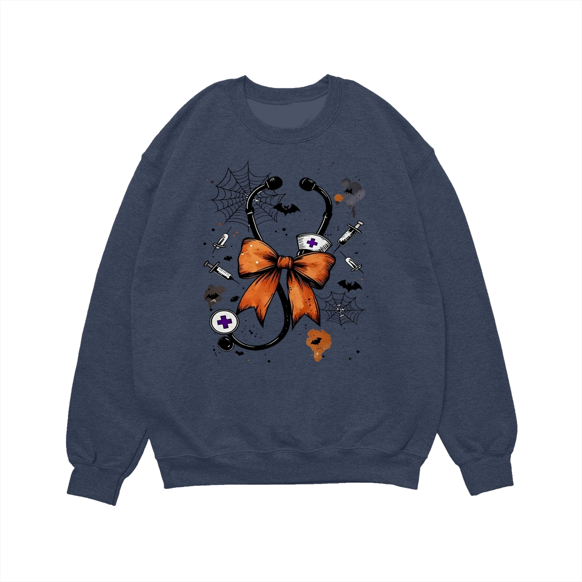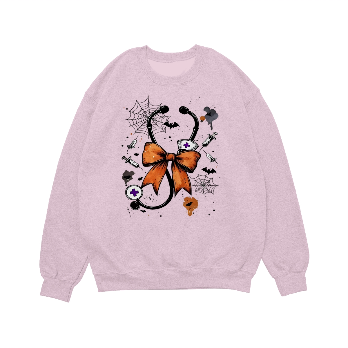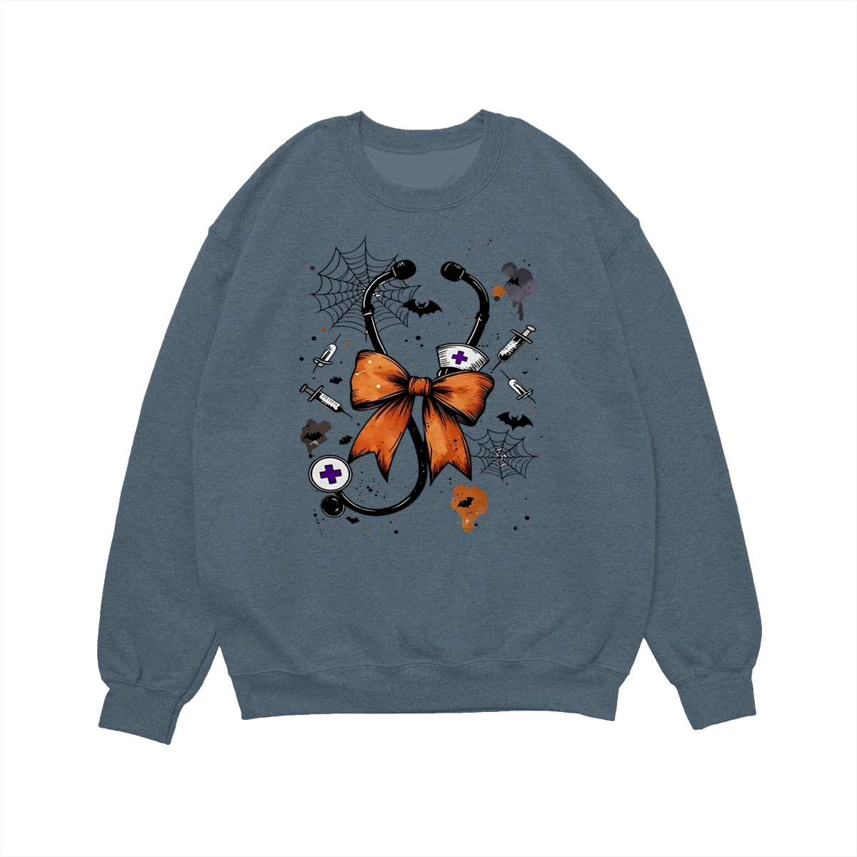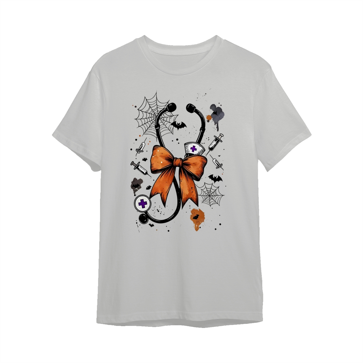 Halloween Stethoscope Bow Shirt, Retro Halloween Bow Nurse Sweater, Cute Nursing School Shirt, Funny Nurse Shirt, RN Student Gift, Nursing Life Graphic Shirt
