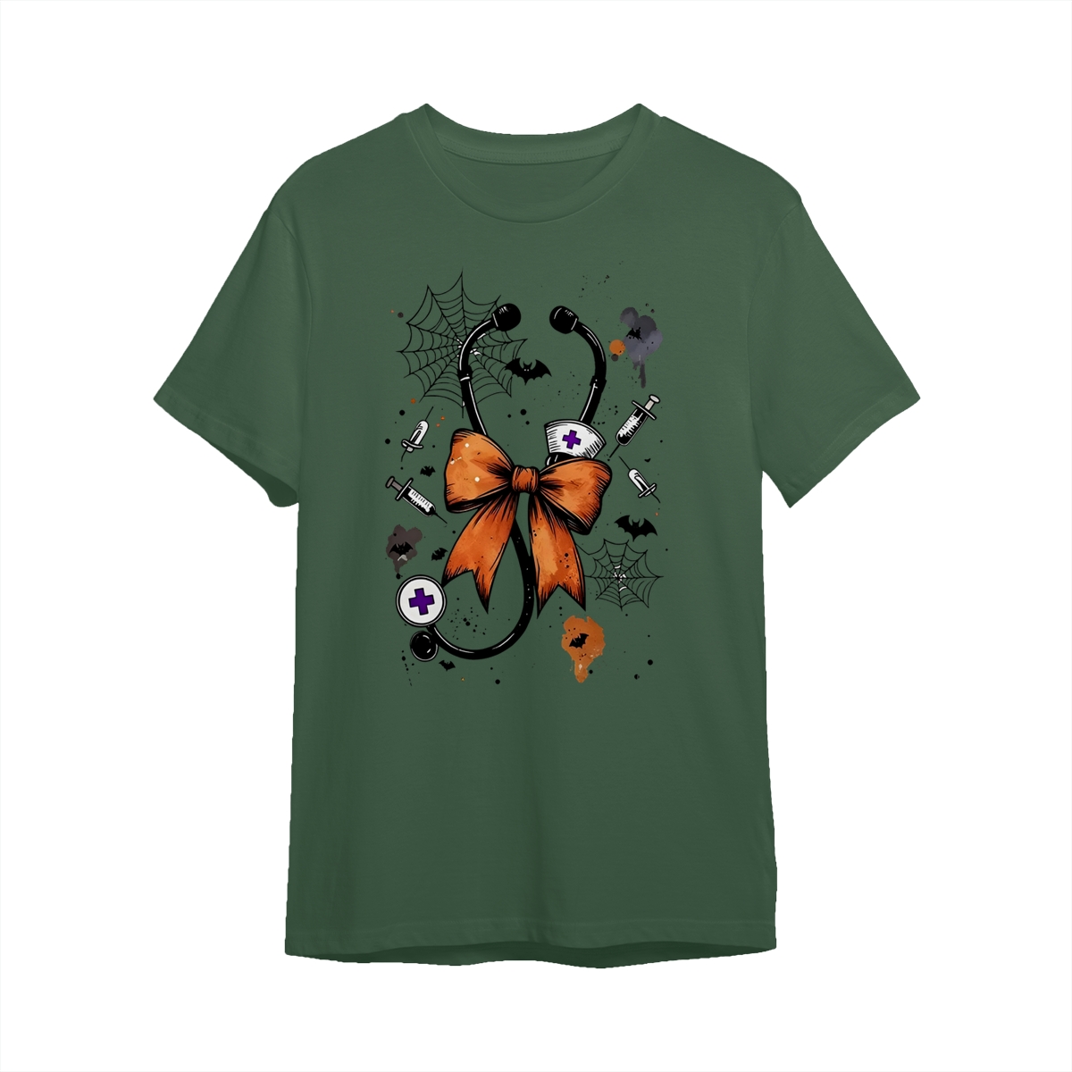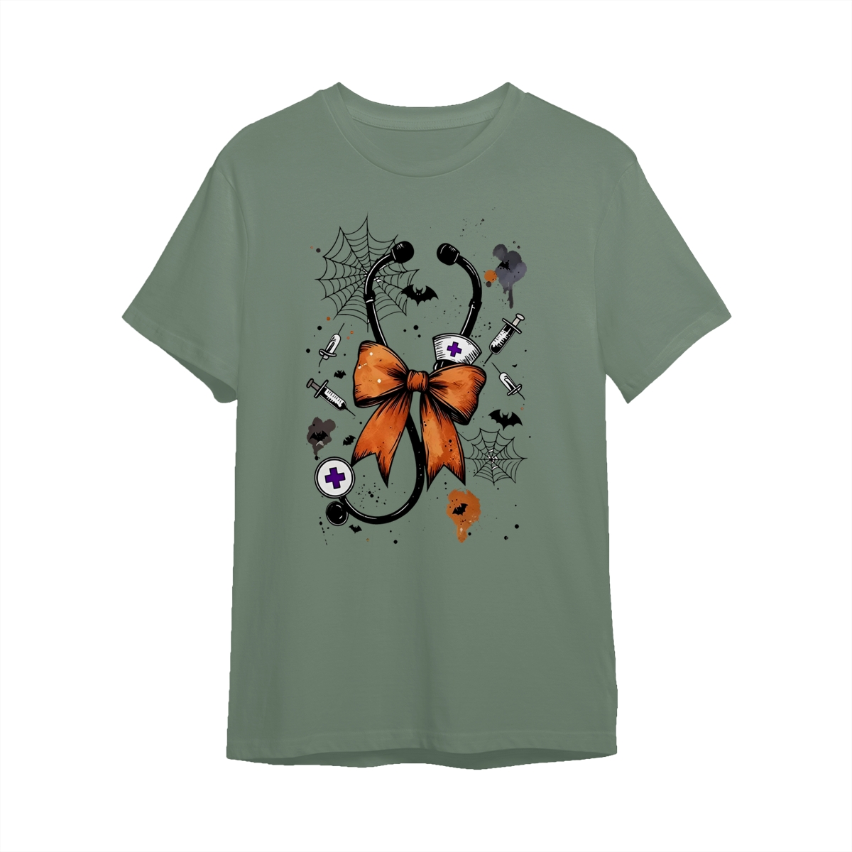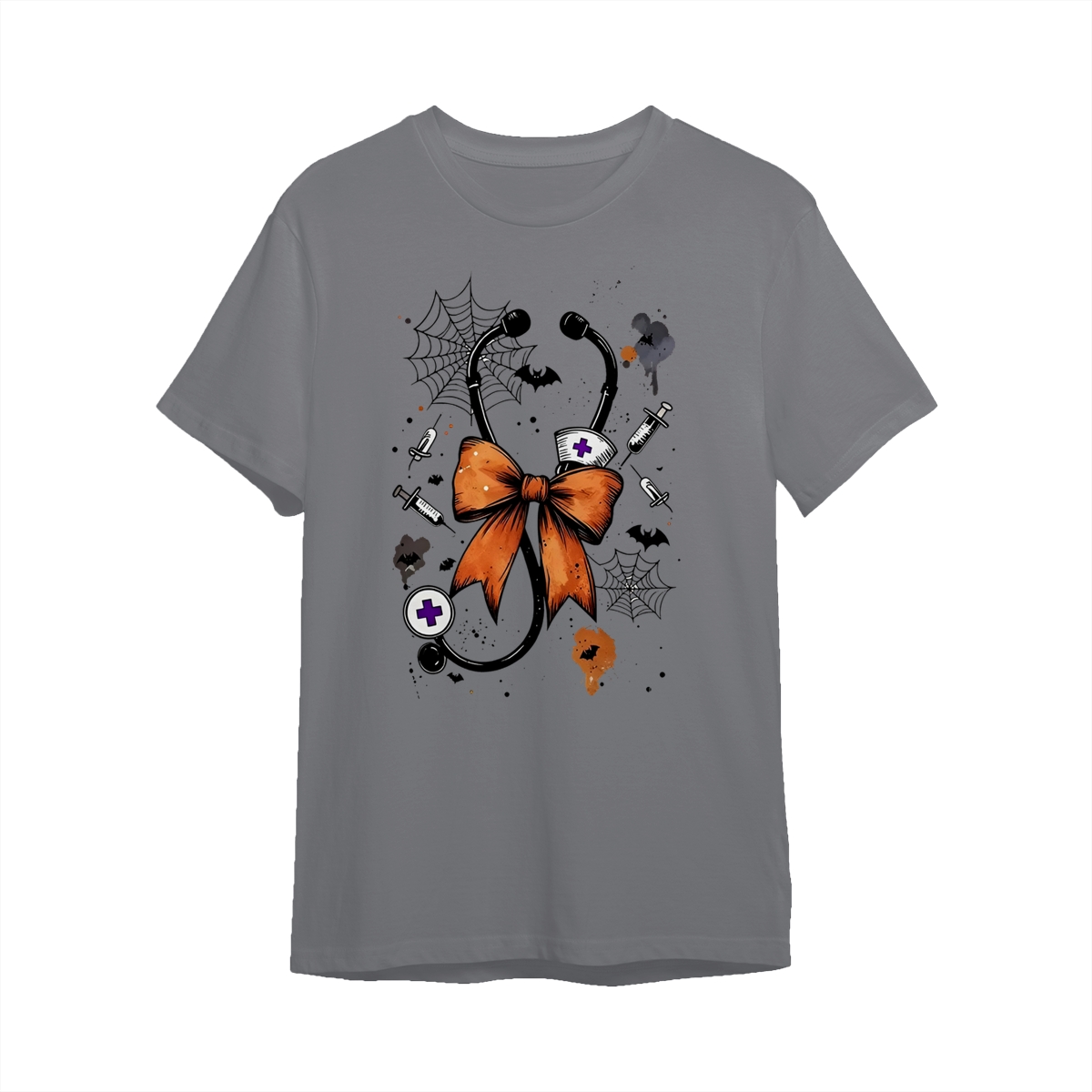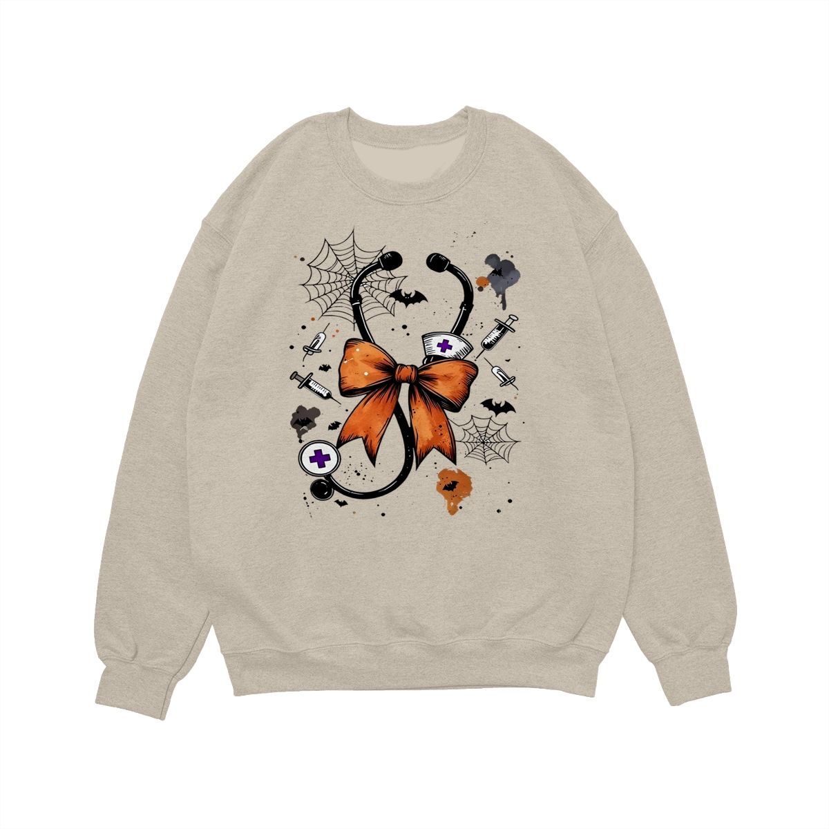 Halloween Stethoscope Bow Shirt, Retro Halloween Bow Nurse Sweater, Cute Nursing School Shirt, Funny Nurse Shirt, RN Student Gift, Nursing Life Graphic Shirt