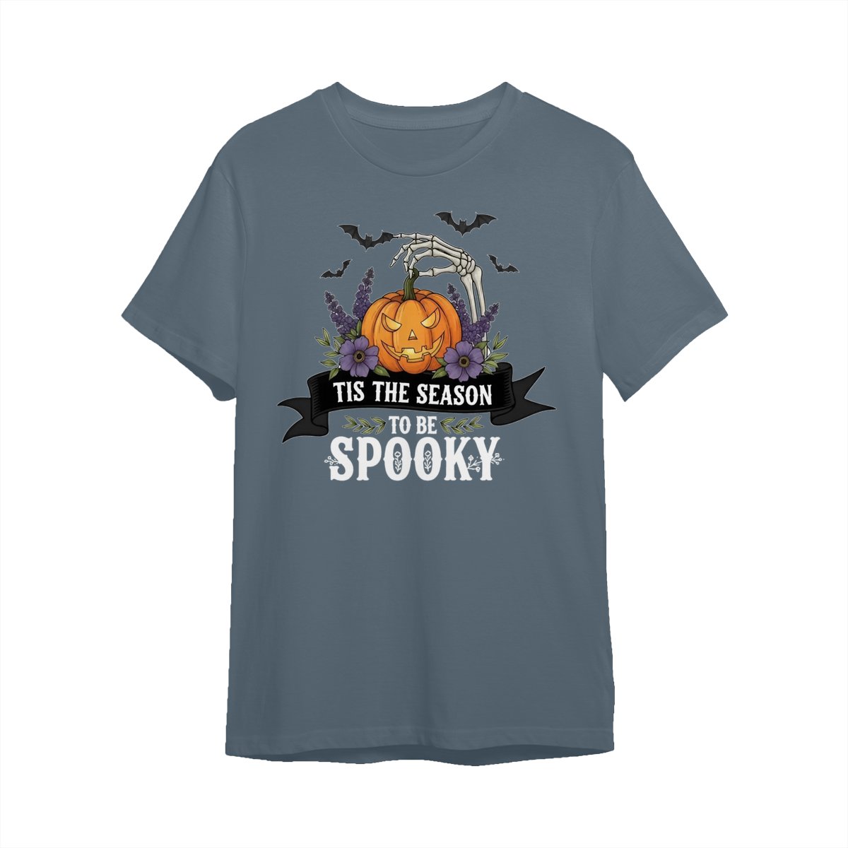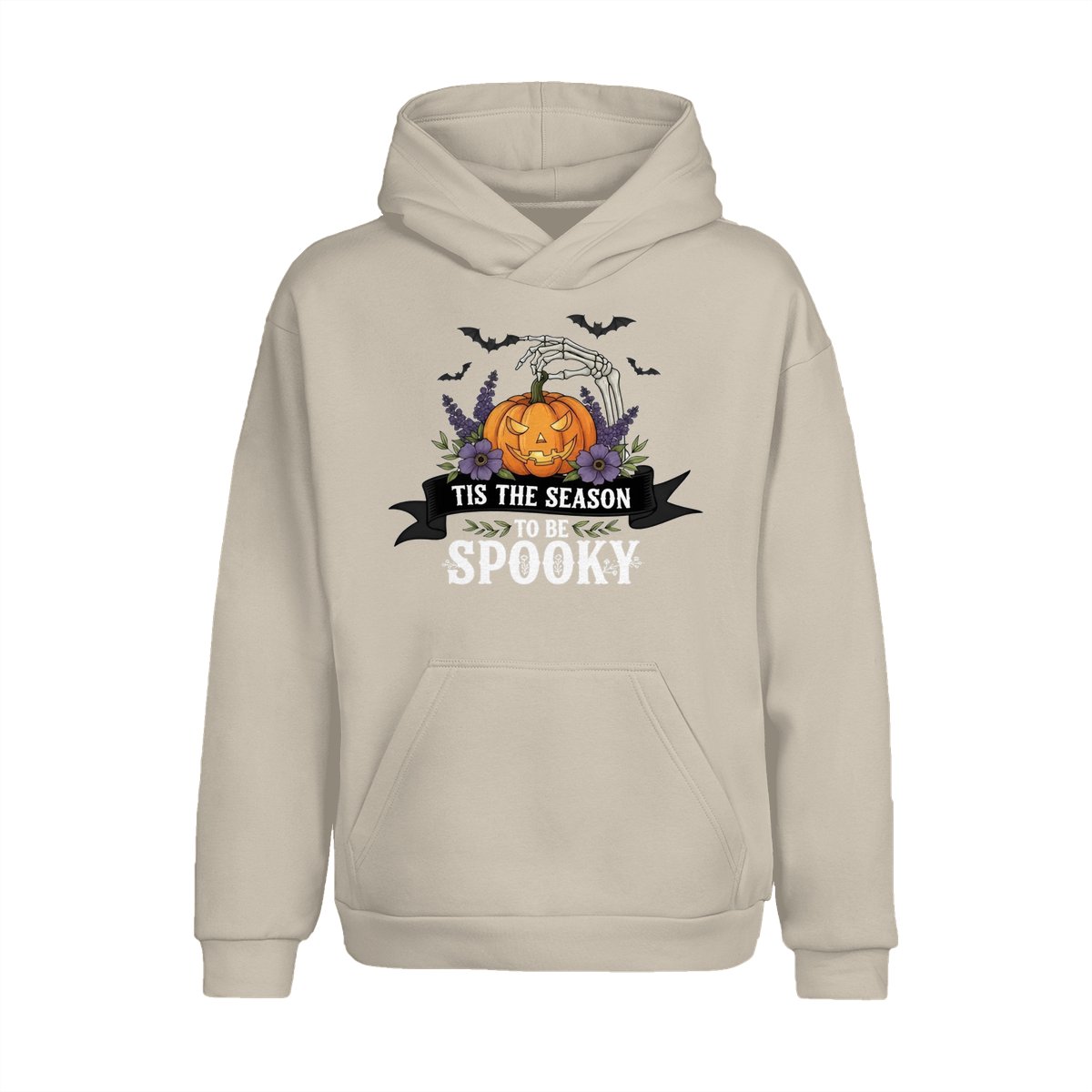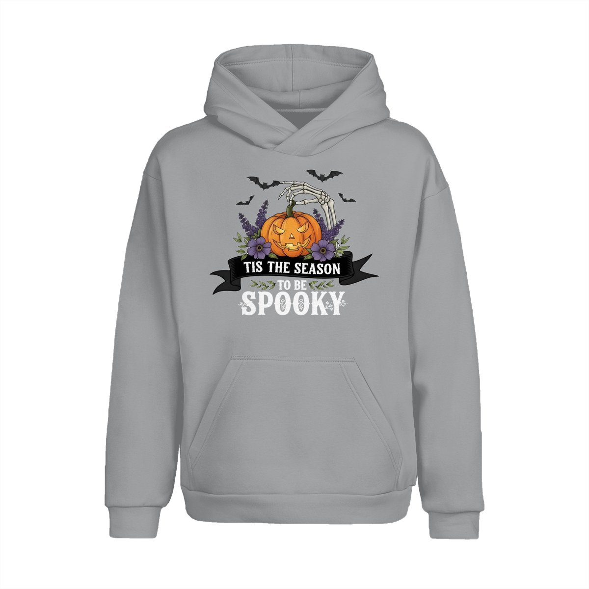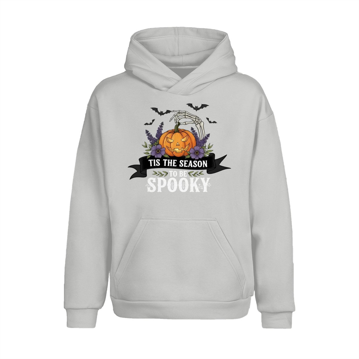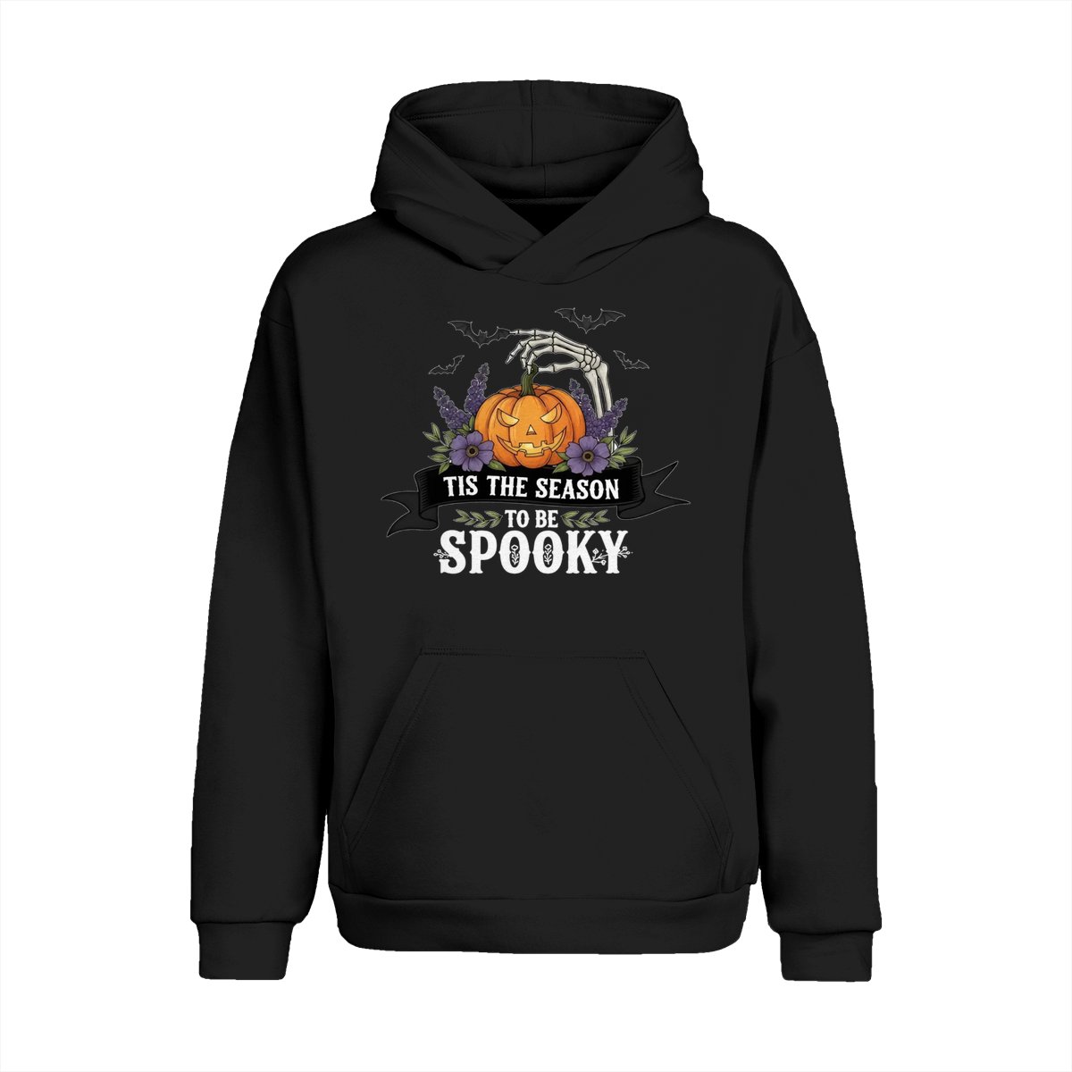 Halloween Sweatshirt For Women, Tis The Season To Be Spooky Graphic With Pumpkin Skeleton Hand And Bats, Cozy Fall Pullover, Cute Spooky Casual Outfit, Trendy Halloween Clothing Gift Idea