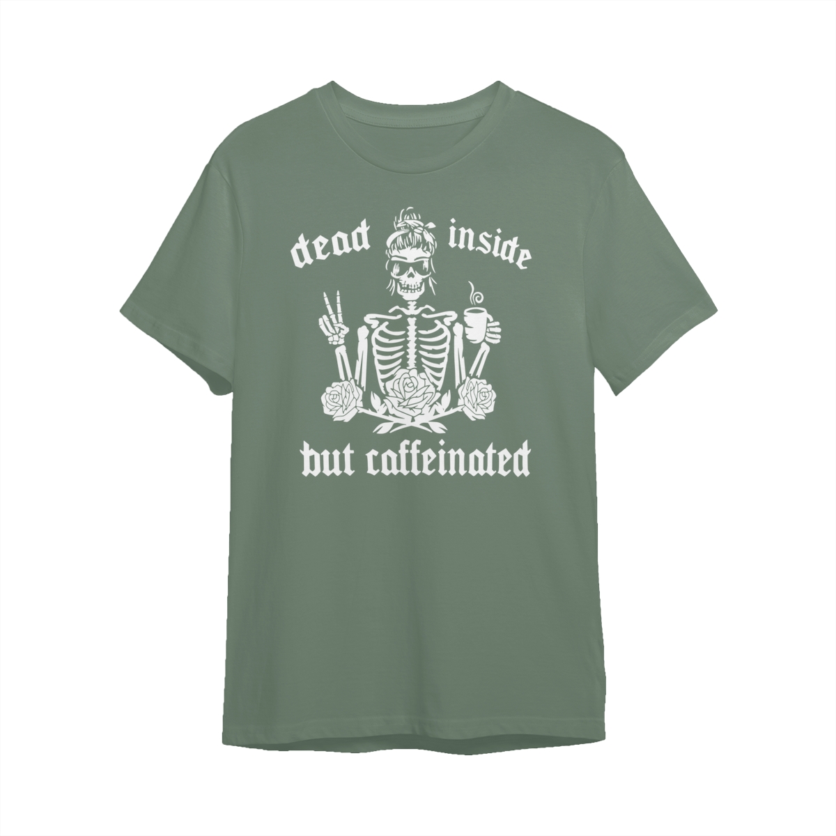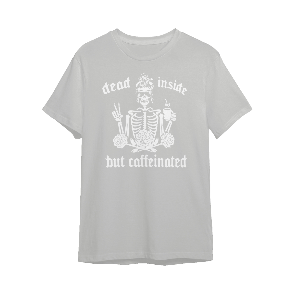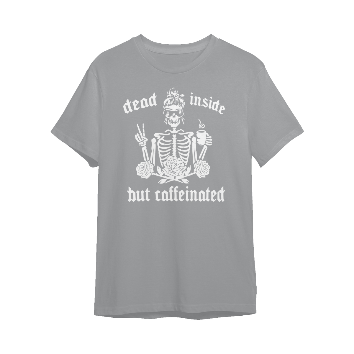 Halloween T-Shirt – Dead Inside But Caffeinated – Womens Halloween Shirt – Skeleton With Coffee T-Shirt – Female Skeleton Halloween T-Shirt Cotton Summer T Shirt Graphic Tee Top Womenswear