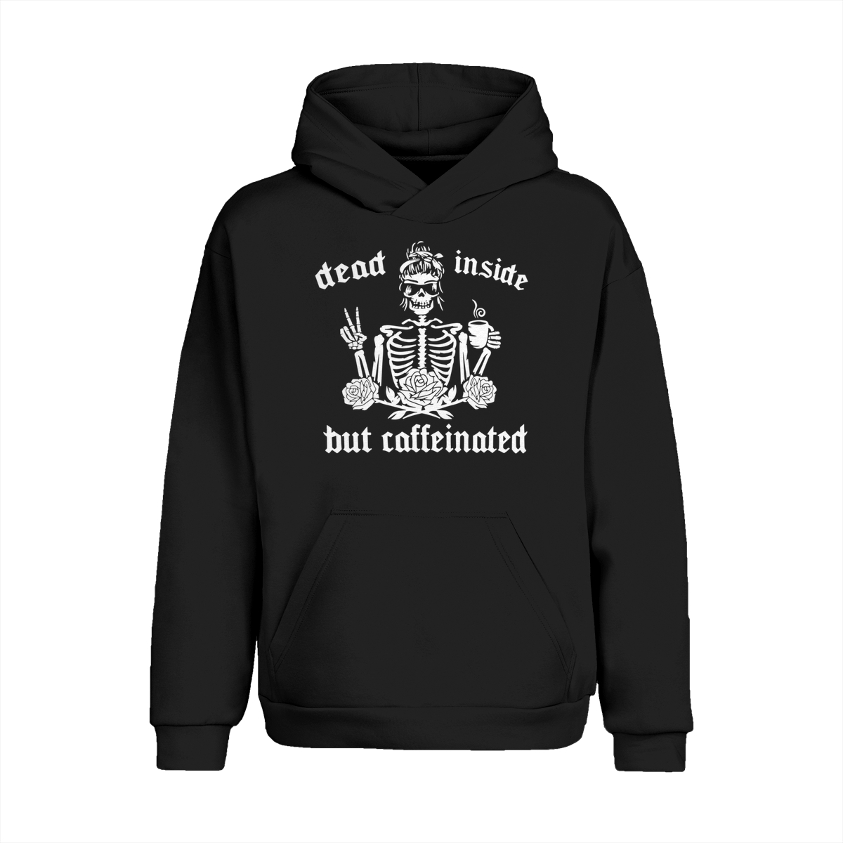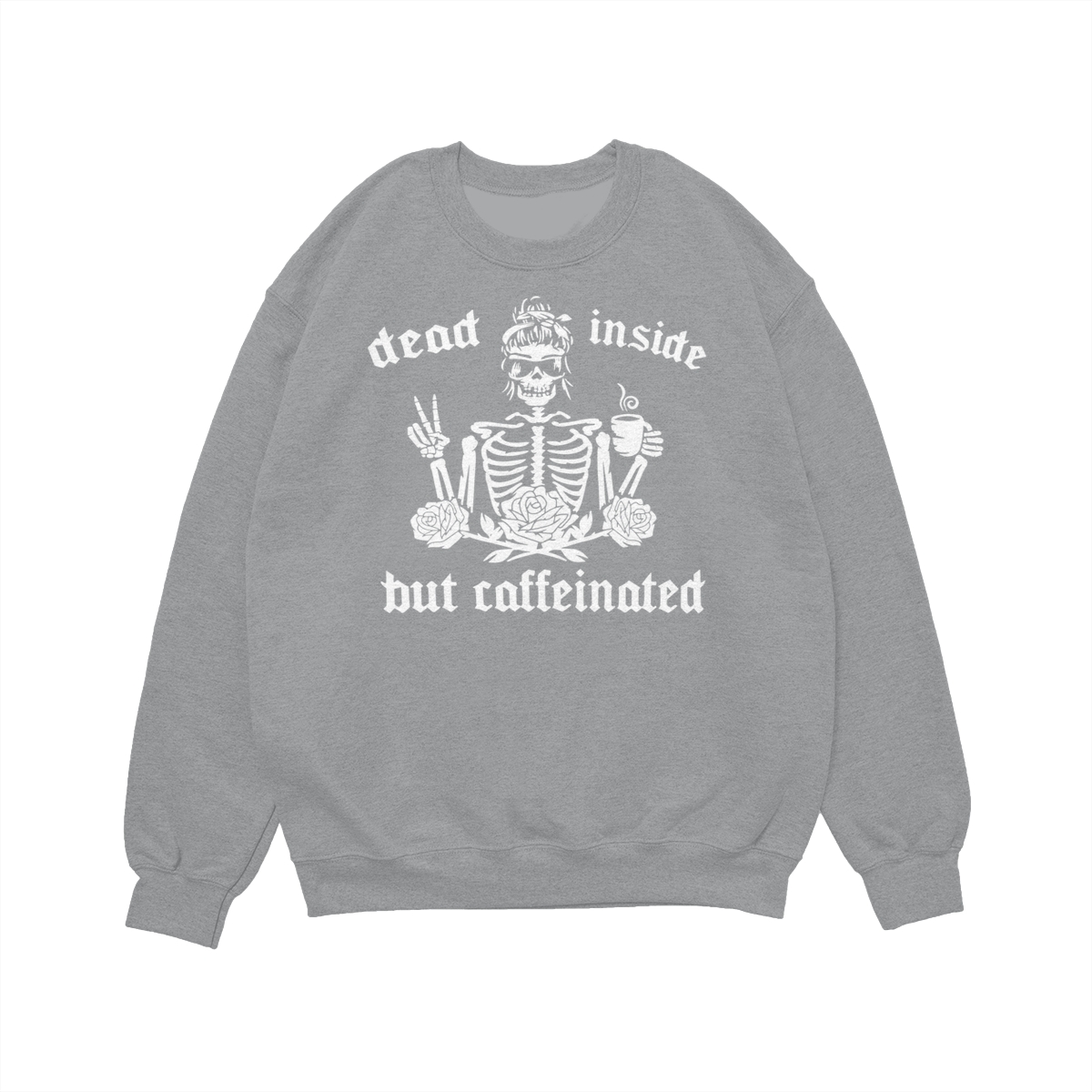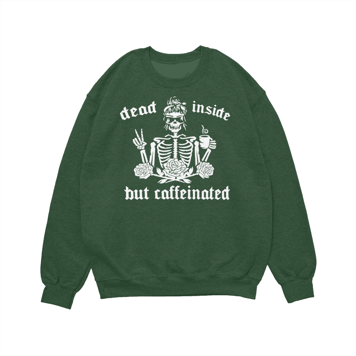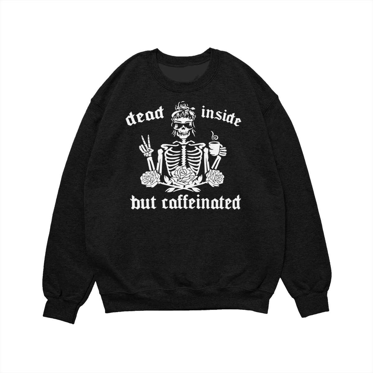 Halloween T-Shirt – Dead Inside But Caffeinated – Womens Halloween Shirt – Skeleton With Coffee T-Shirt – Female Skeleton Halloween T-Shirt Cotton Summer T Shirt Graphic Tee Top Womenswear