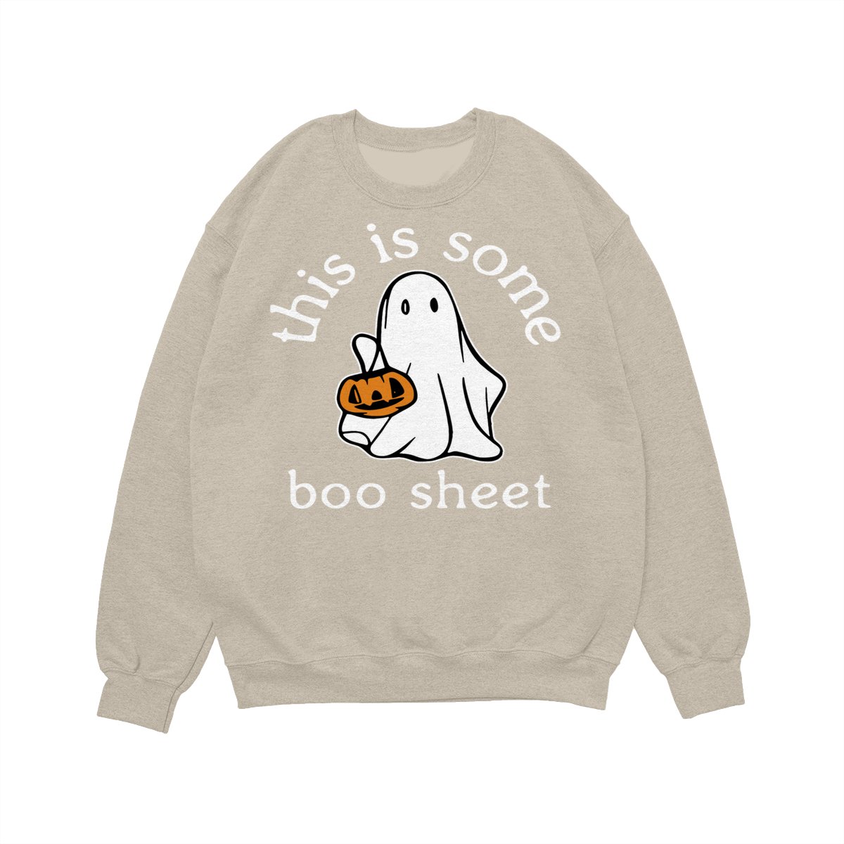 Halloween Themed Cartoon Ghost & Letter Print Drop Shoulder Sweatshirt, Casual Long Sleeve Round Neck Pullover for Daily Wear, Ladies Fall Clothes