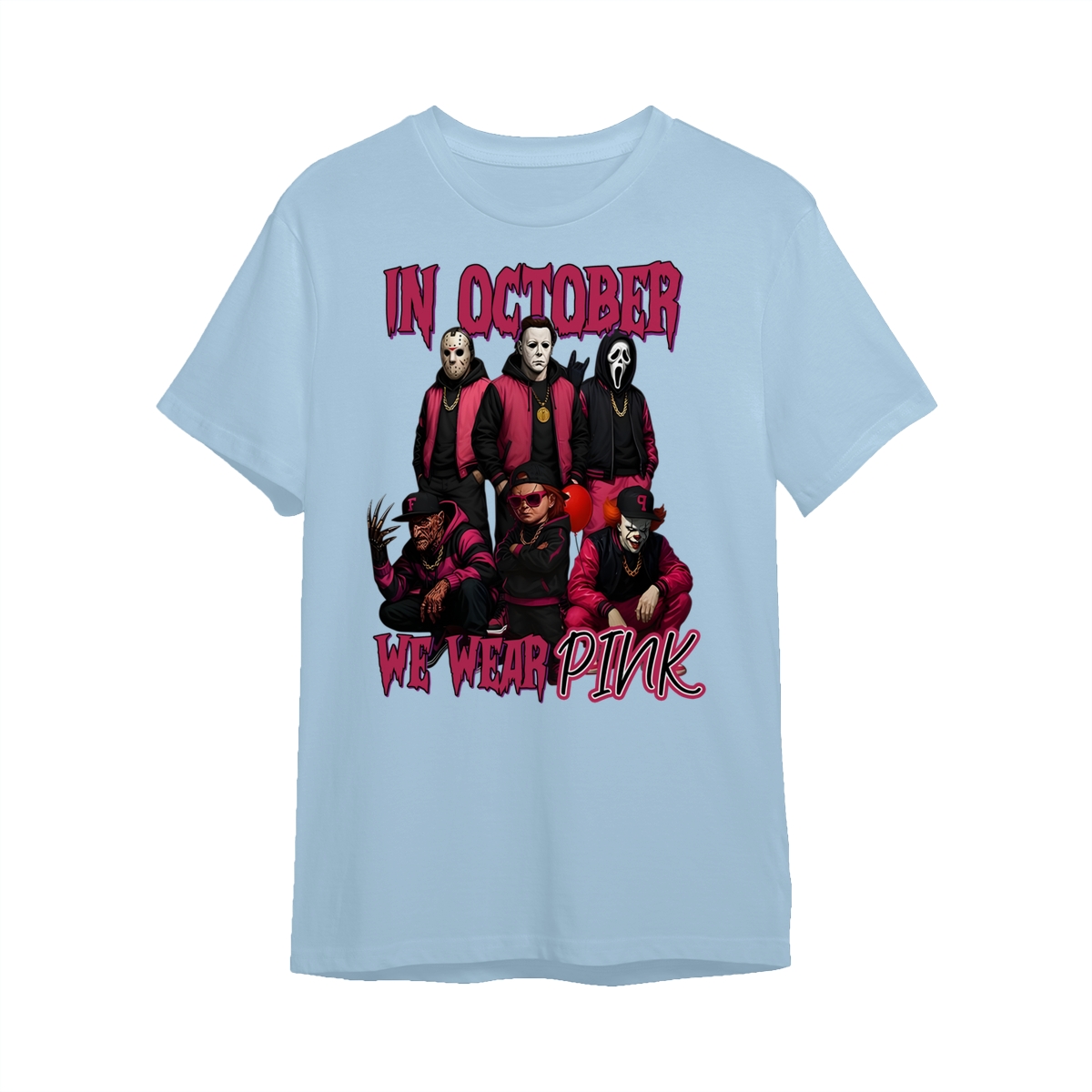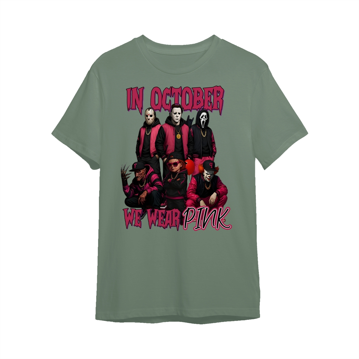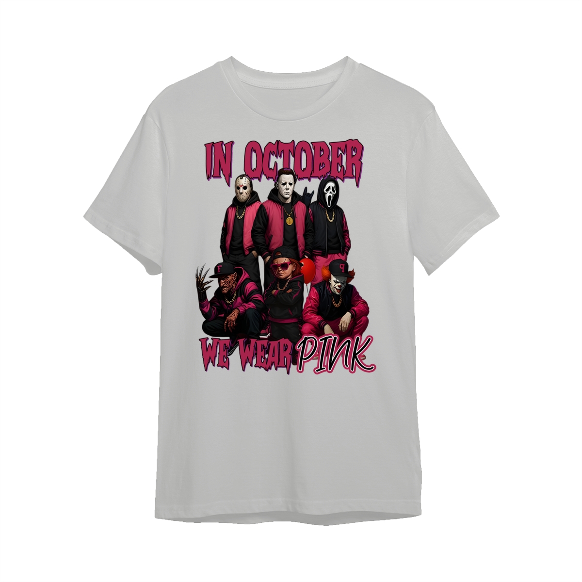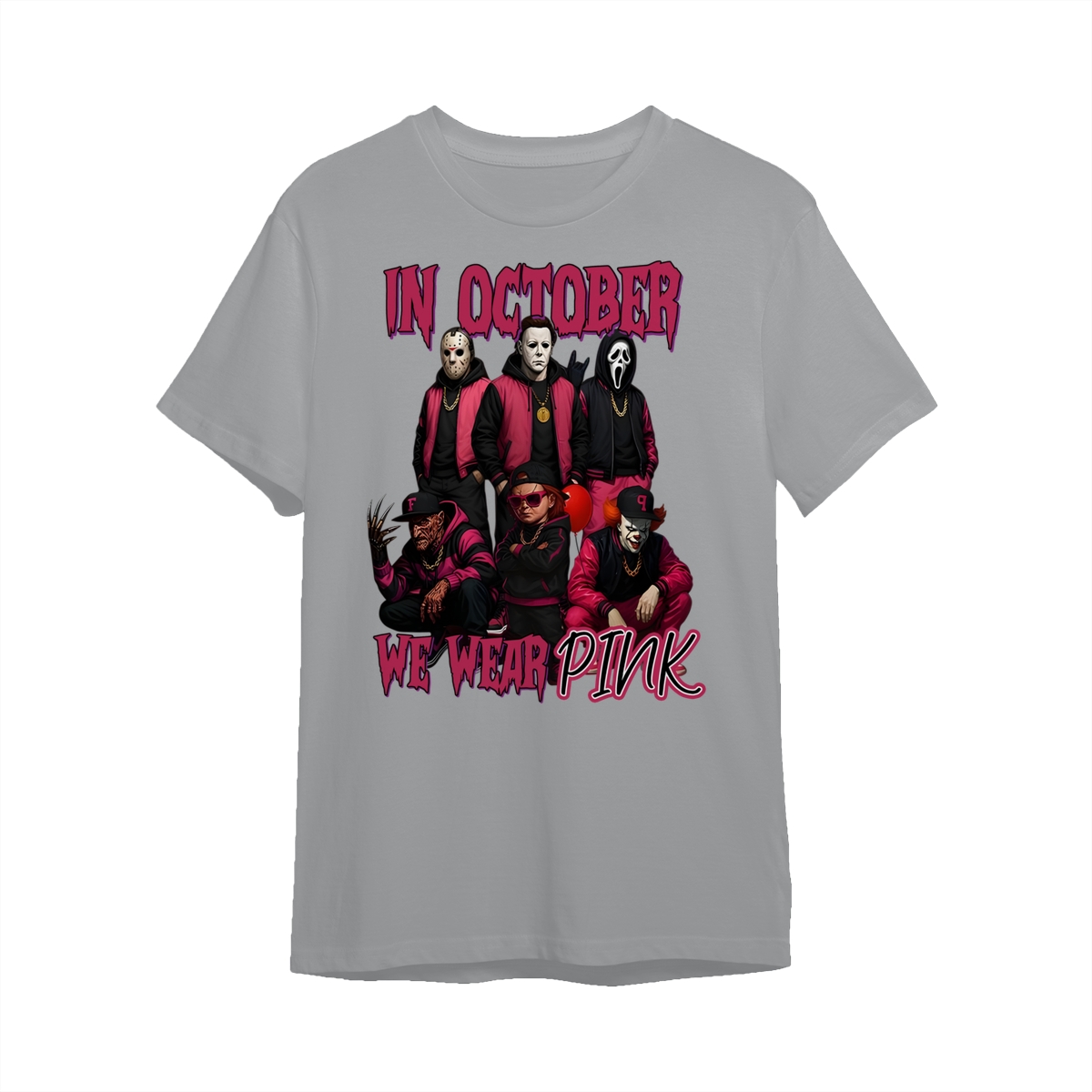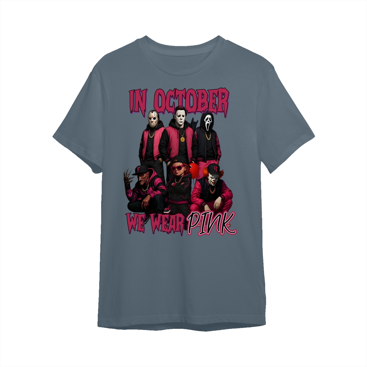 Halloween We Wear Pink Shirt, Halloween Horror Characters Shirt, Trending Graphic Tee, 100 % Cotton, Gift For Halloween