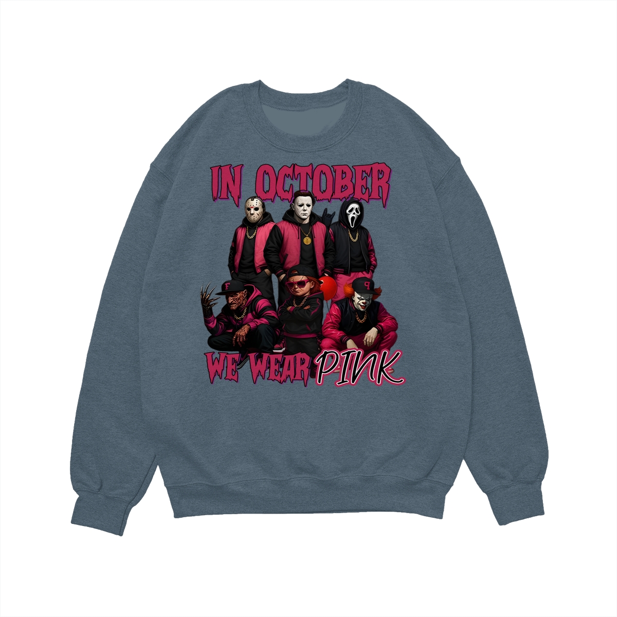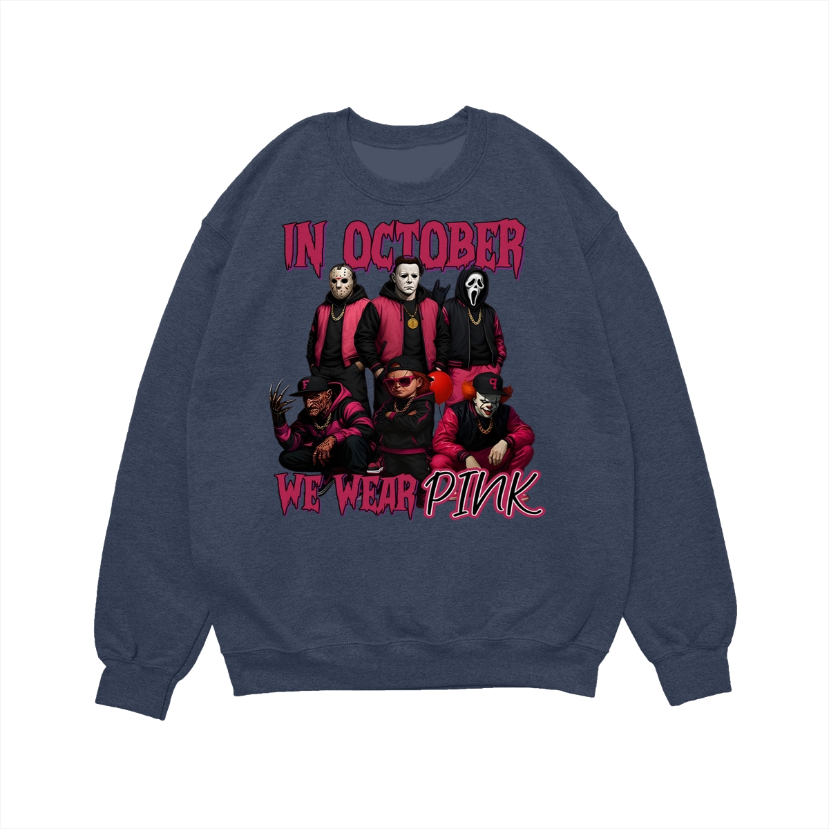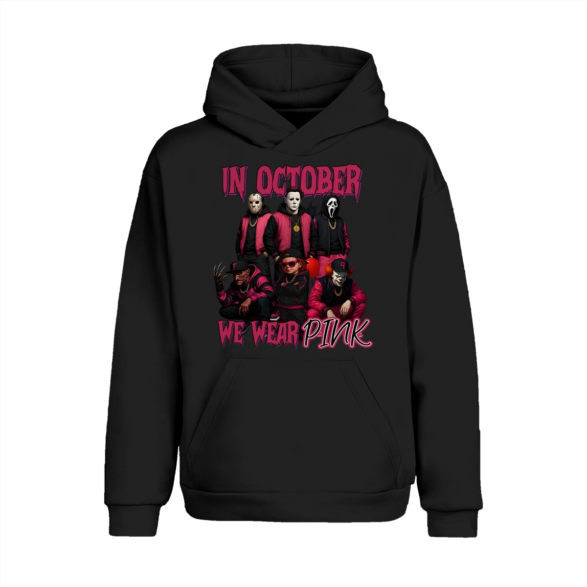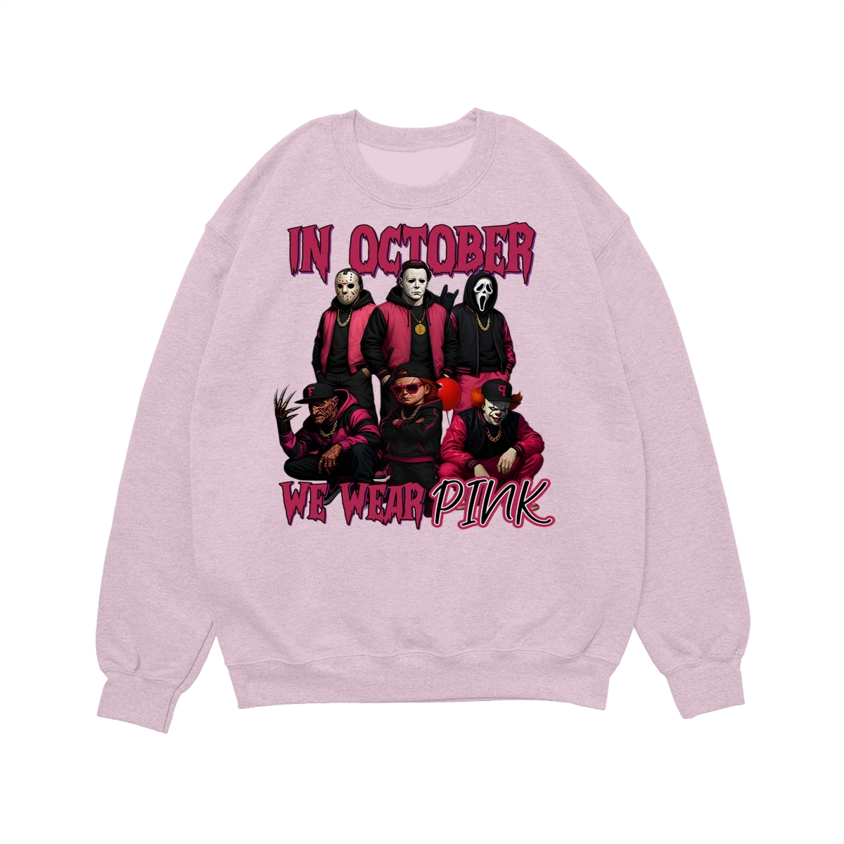 Halloween We Wear Pink Shirt, Halloween Horror Characters Shirt, Trending Graphic Tee, 100 % Cotton, Gift For Halloween
