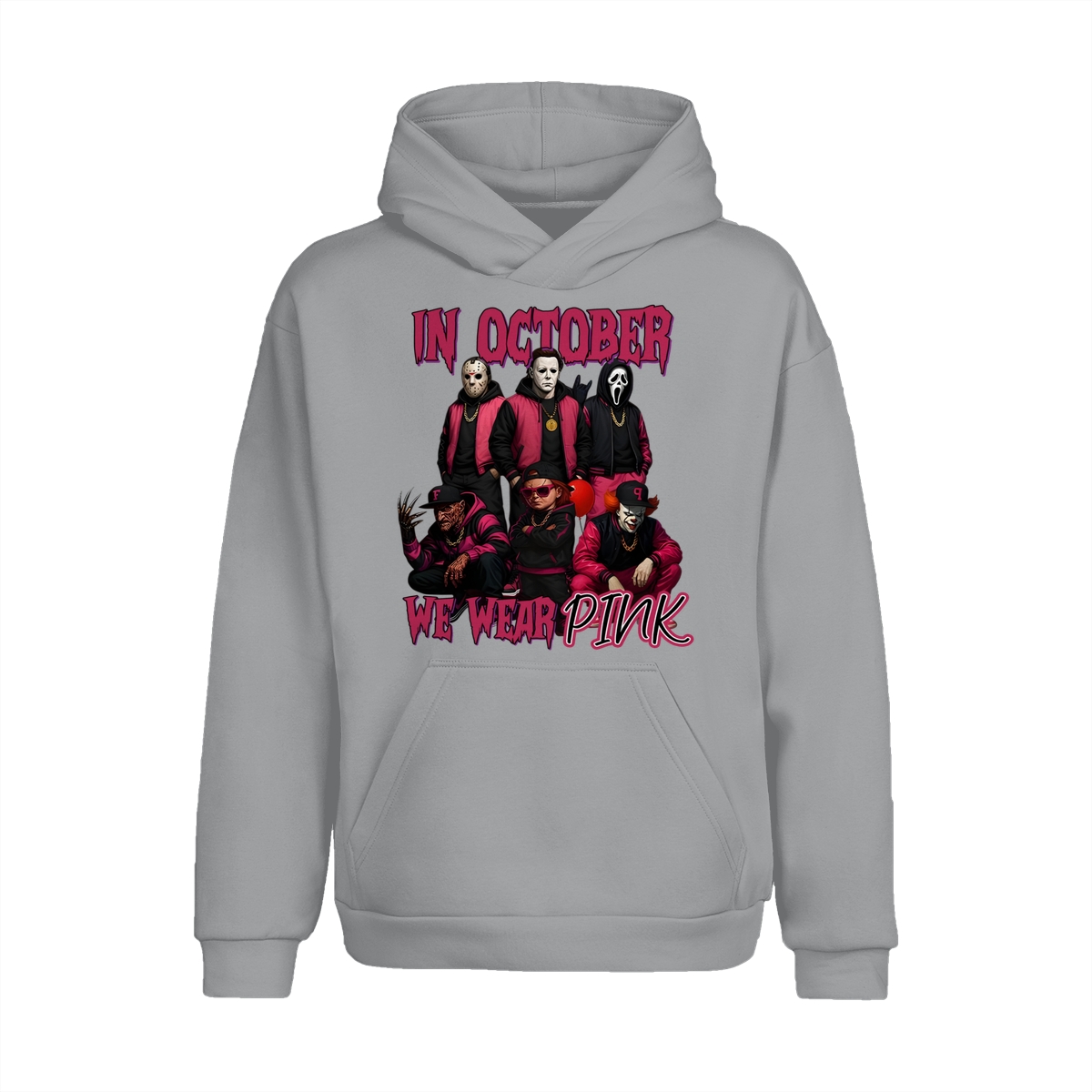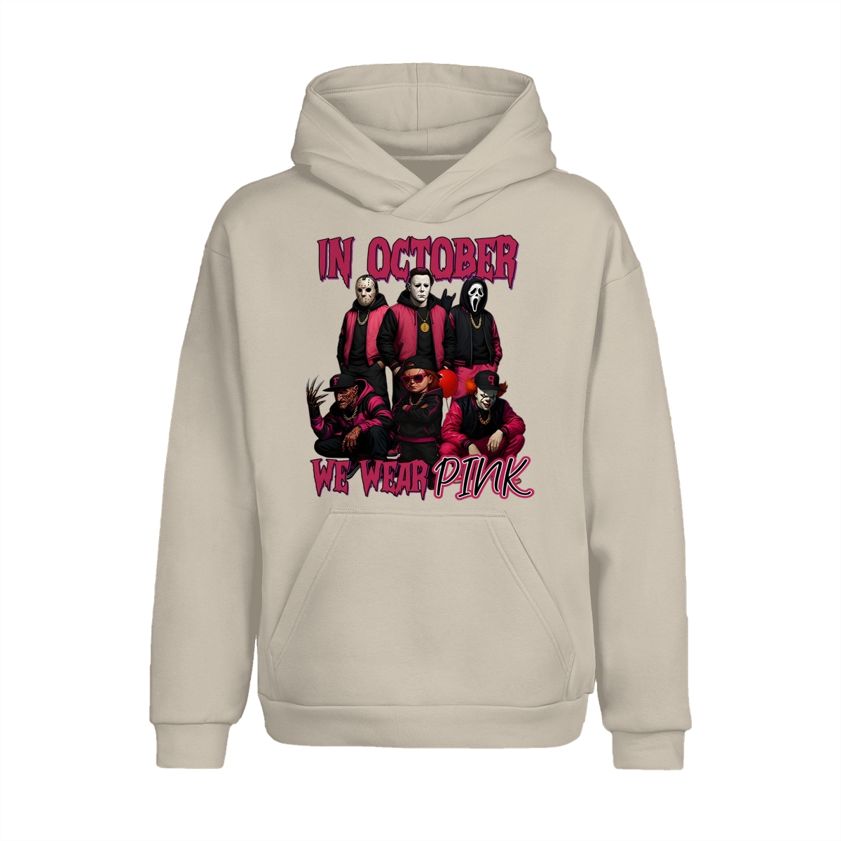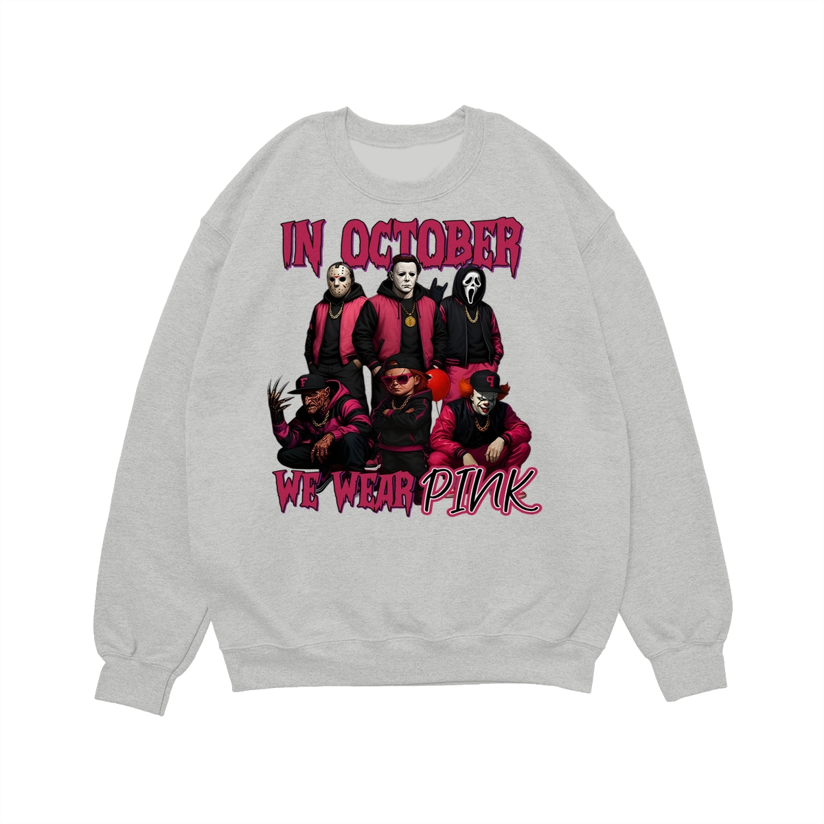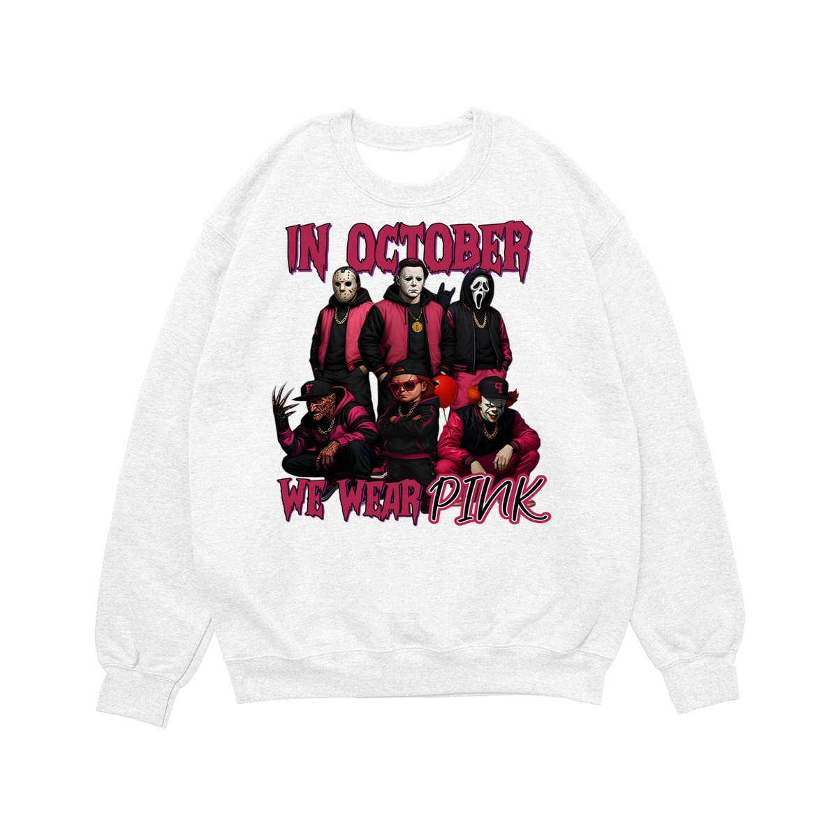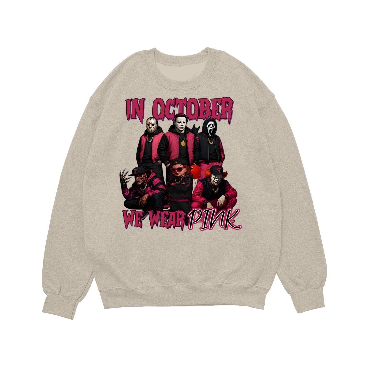Halloween We Wear Pink Shirt, Halloween Horror Characters Shirt, Trending Graphic Tee, 100 % Cotton, Gift For Halloween