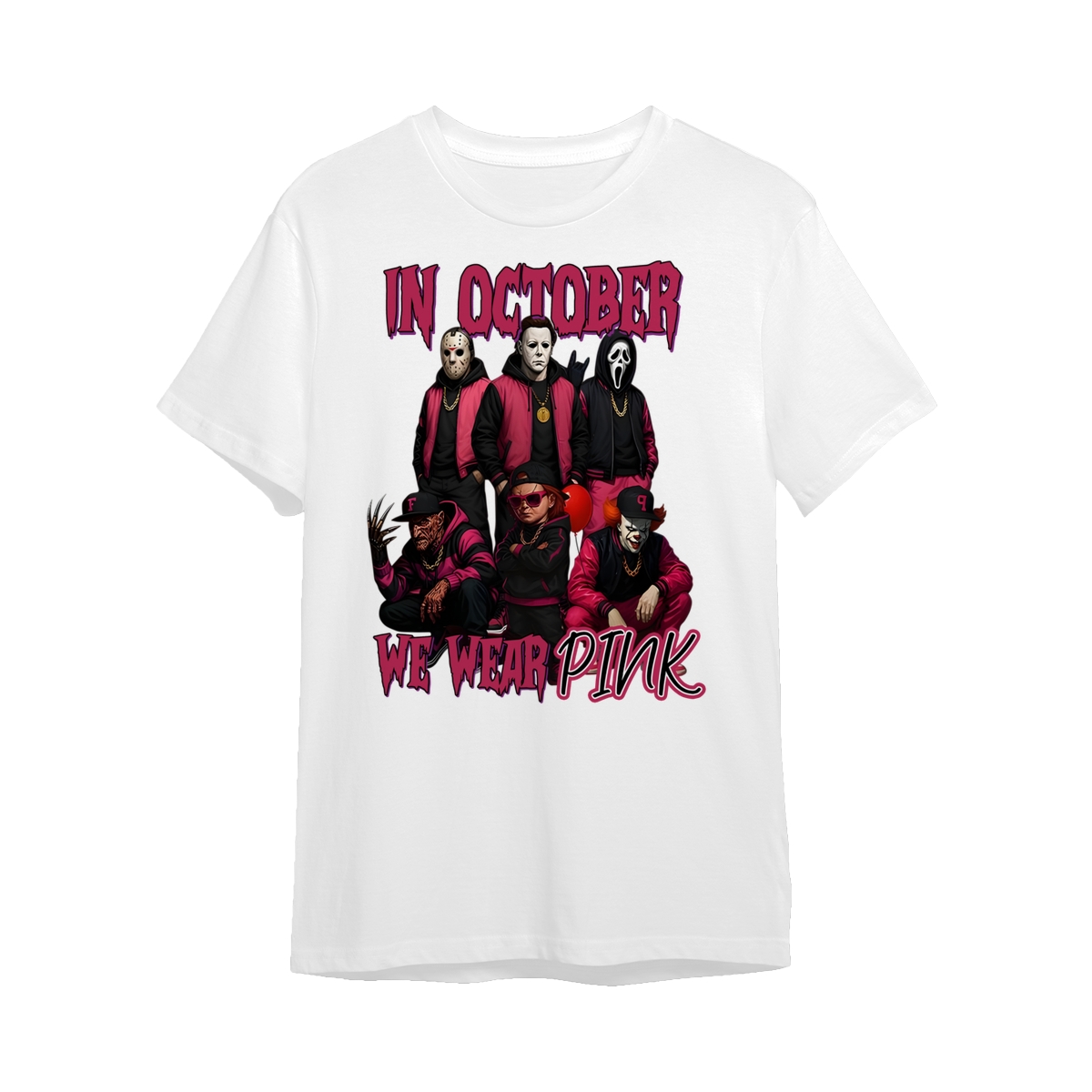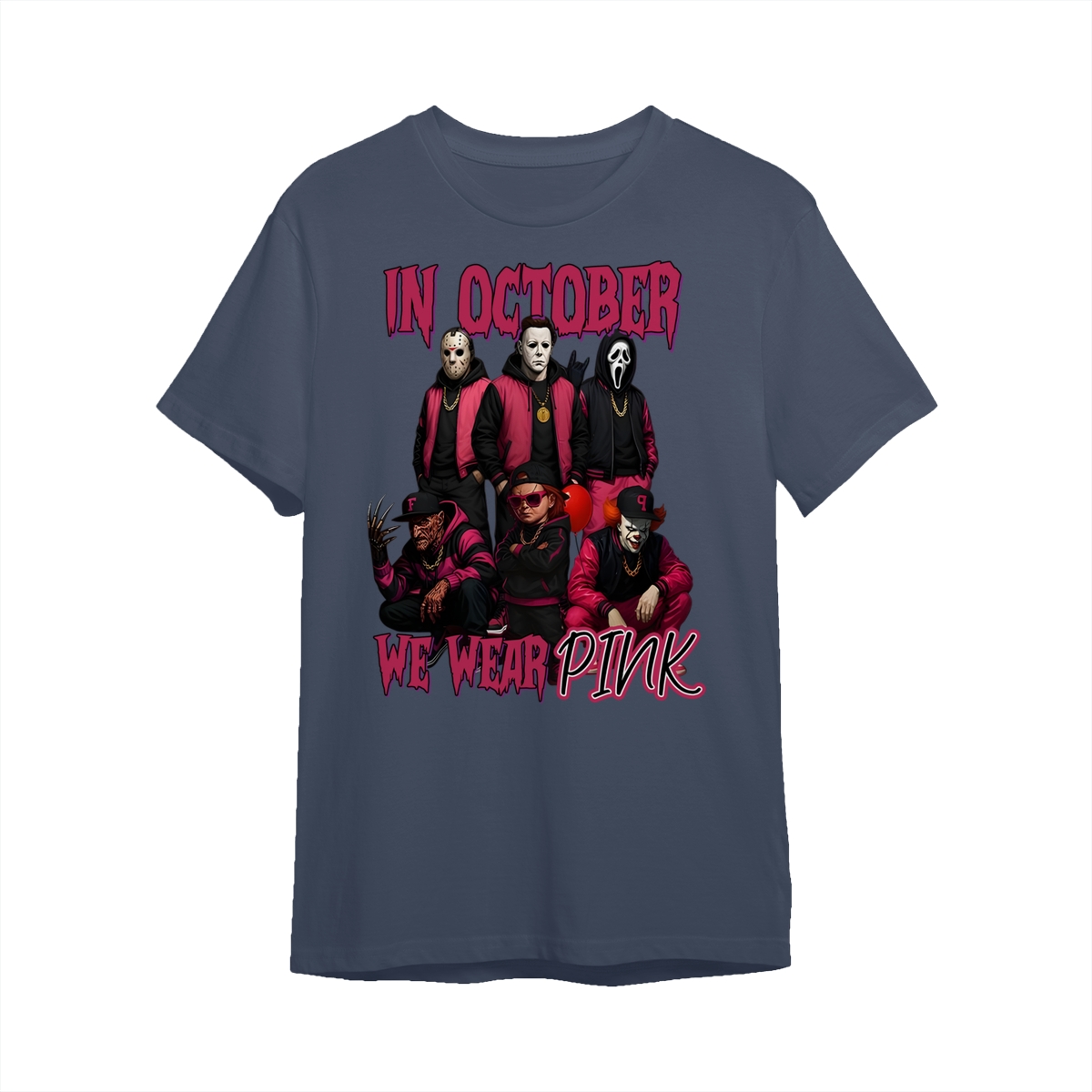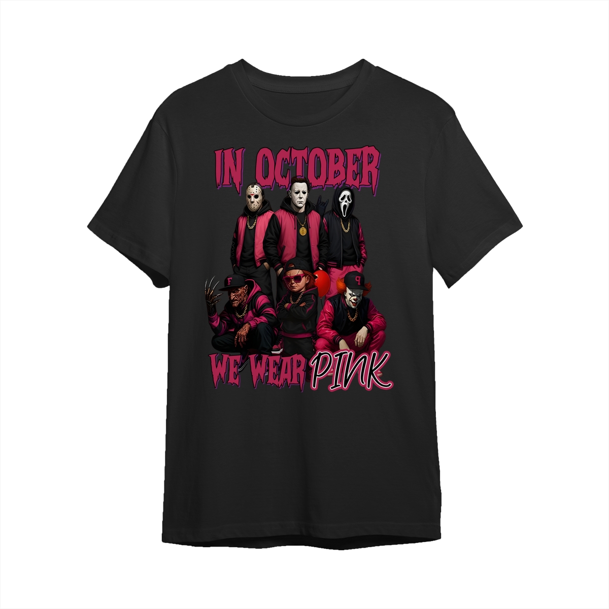Halloween We Wear Pink Shirt, Halloween Horror Characters Shirt, Trending Graphic Tee, 100 % Cotton, Gift For Halloween