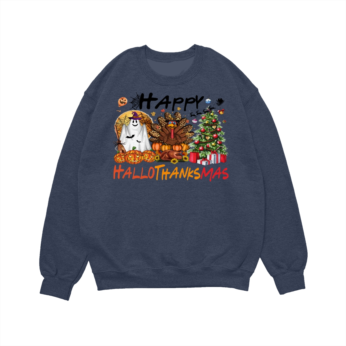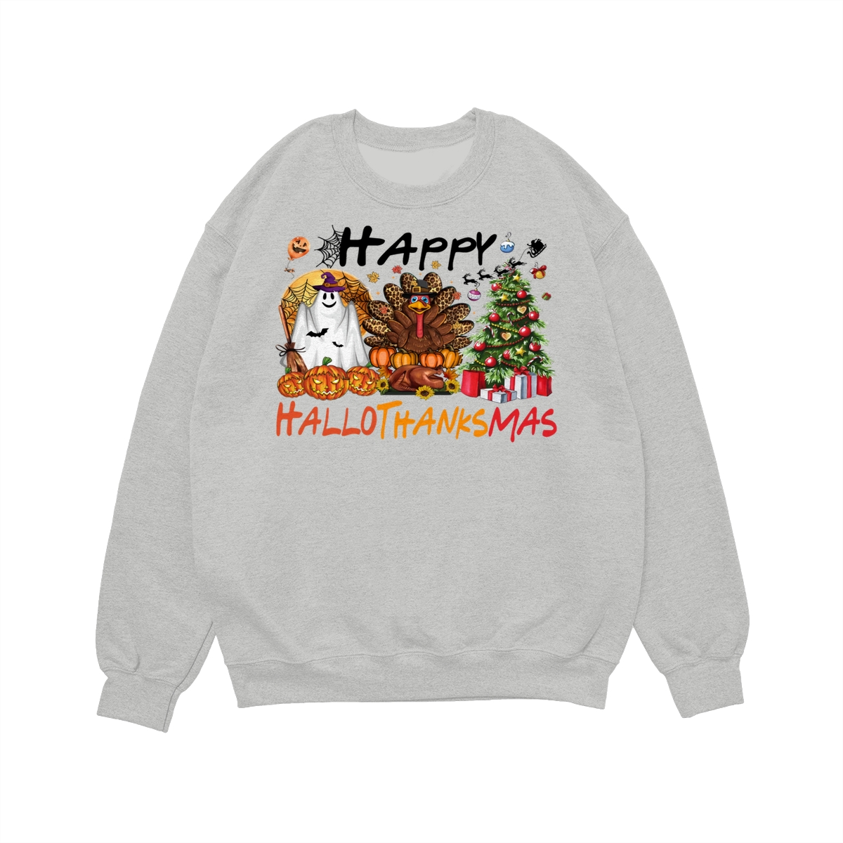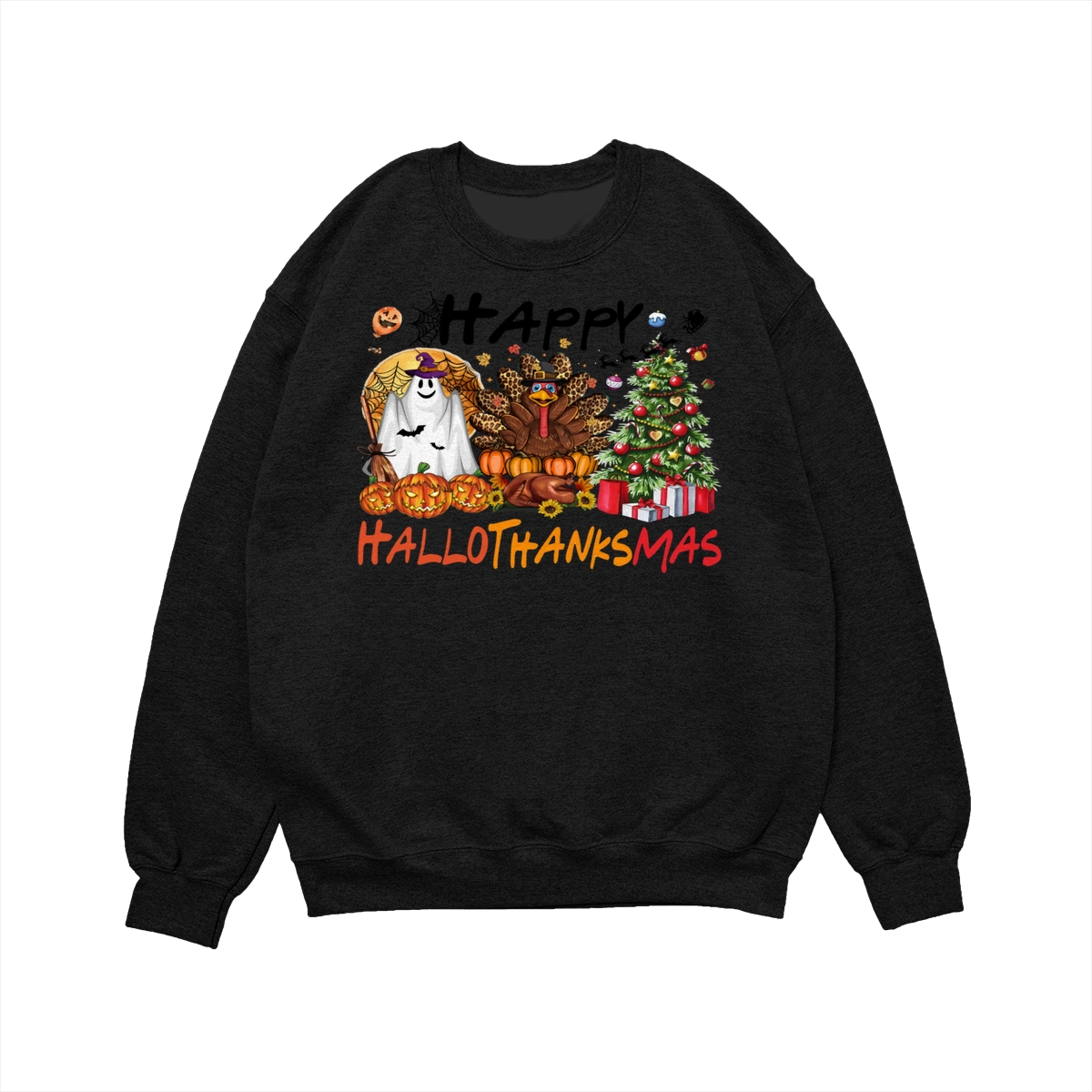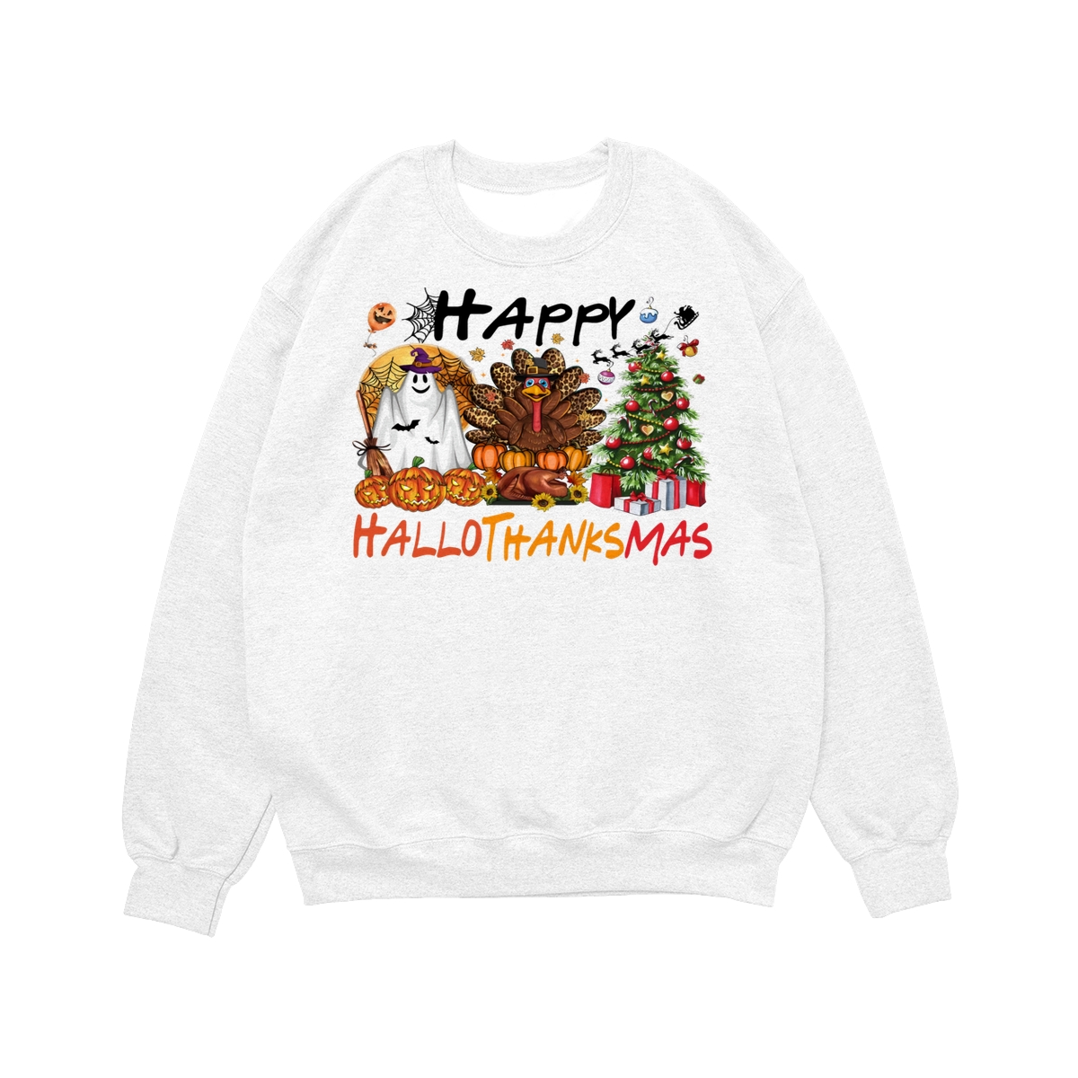 Happy Hallothanksmas, Halloween Sweatshirt, Thanksgiving Shirt, Halloween Thanksgiving Christmas Crewneck, Fall Vibes Shirt, Holiday Season Shirt, Autumn Sweater, Pumpkin Christmas Tree Shirt, Women Sweater, Fall Girl Women Gift For