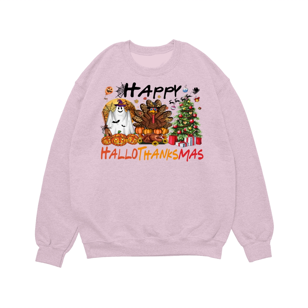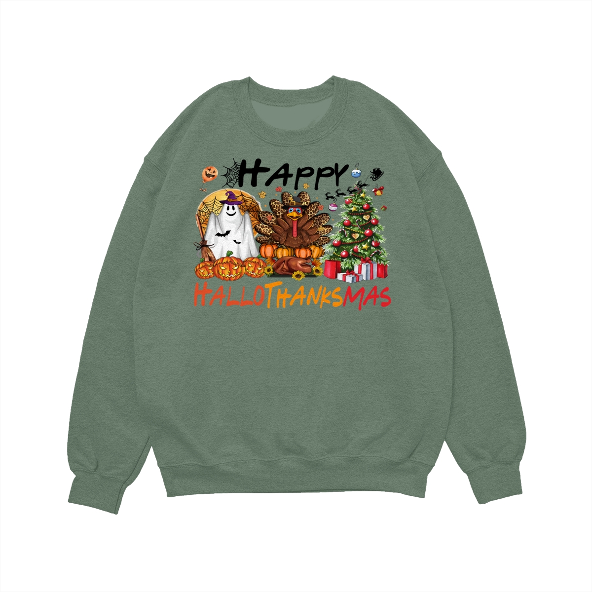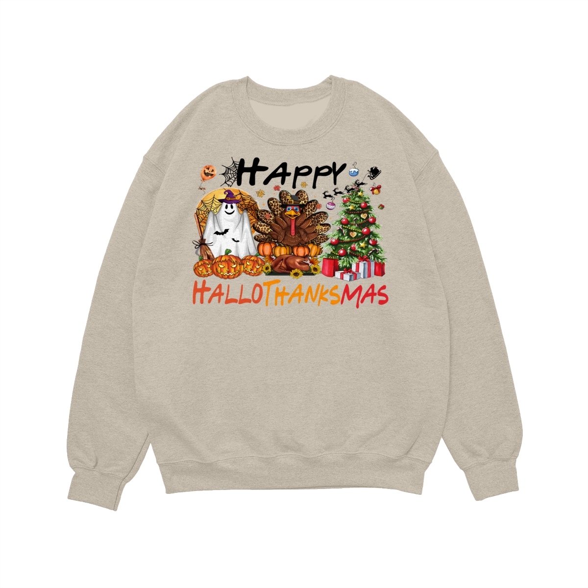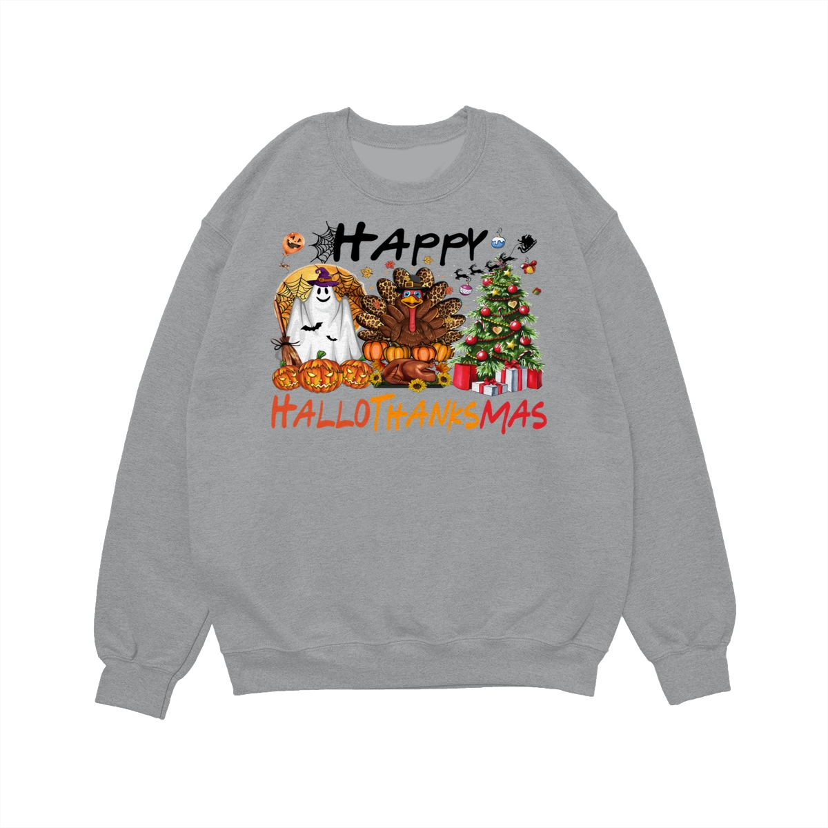 Happy Hallothanksmas, Halloween Sweatshirt, Thanksgiving Shirt, Halloween Thanksgiving Christmas Crewneck, Fall Vibes Shirt, Holiday Season Shirt, Autumn Sweater, Pumpkin Christmas Tree Shirt, Women Sweater, Fall Girl Women Gift For