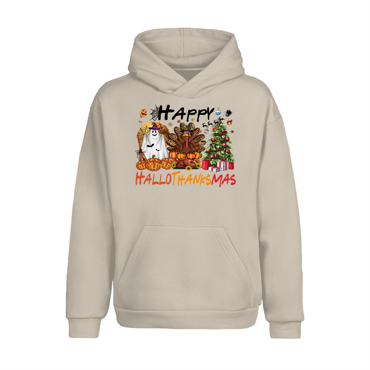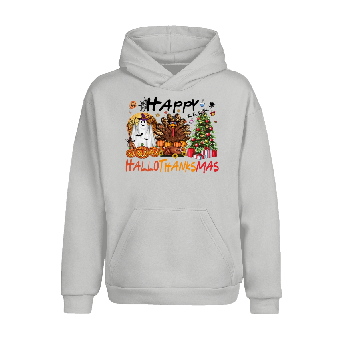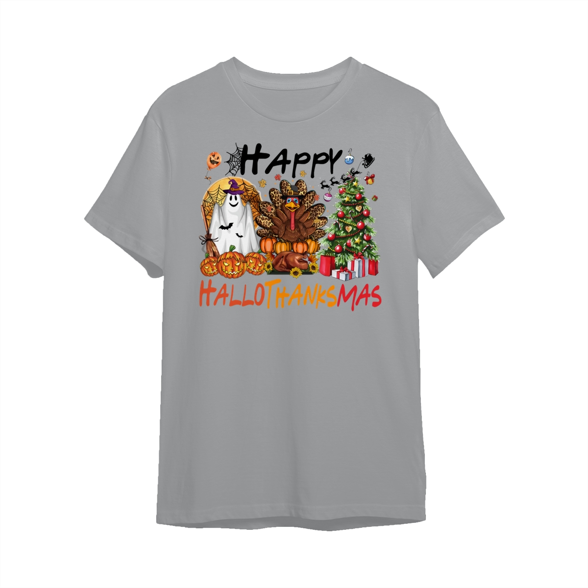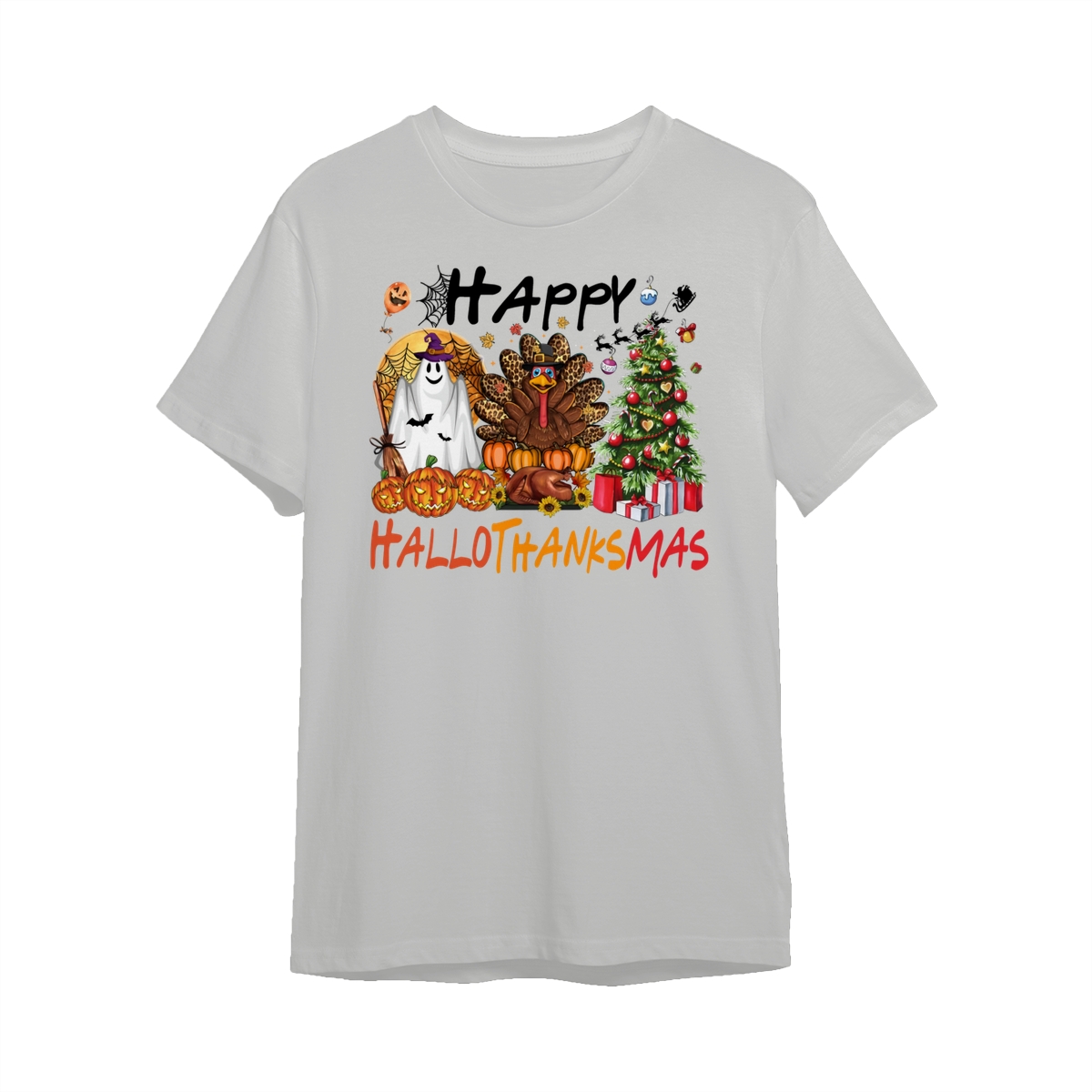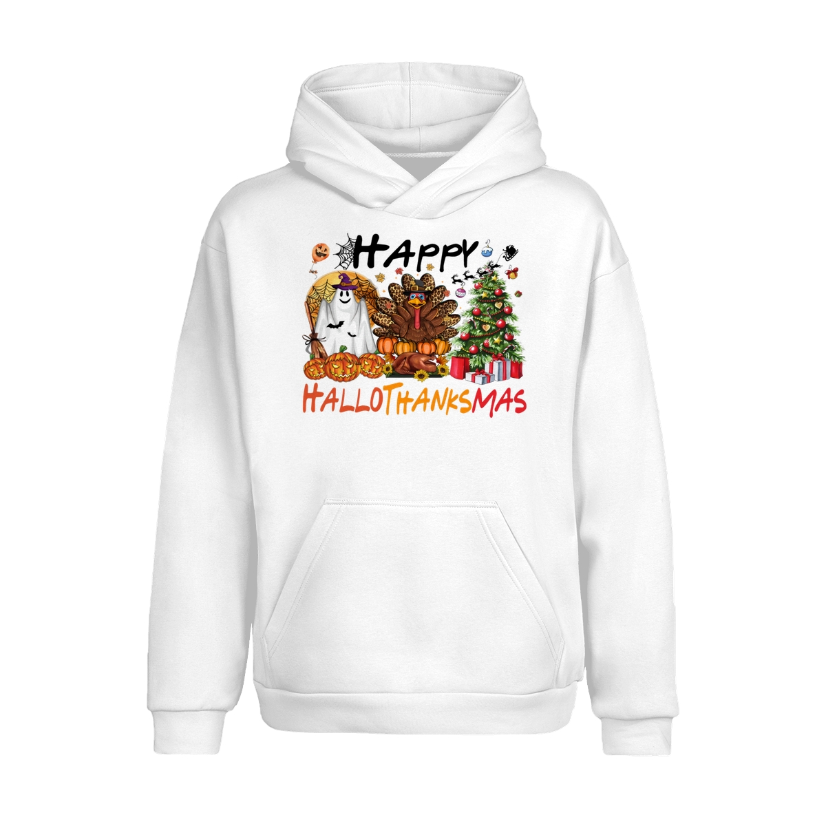 Happy Hallothanksmas, Halloween Sweatshirt, Thanksgiving Shirt, Halloween Thanksgiving Christmas Crewneck, Fall Vibes Shirt, Holiday Season Shirt, Autumn Sweater, Pumpkin Christmas Tree Shirt, Women Sweater, Fall Girl Women Gift For