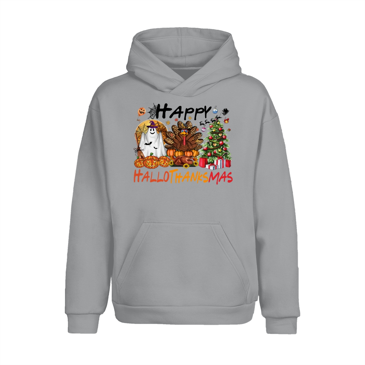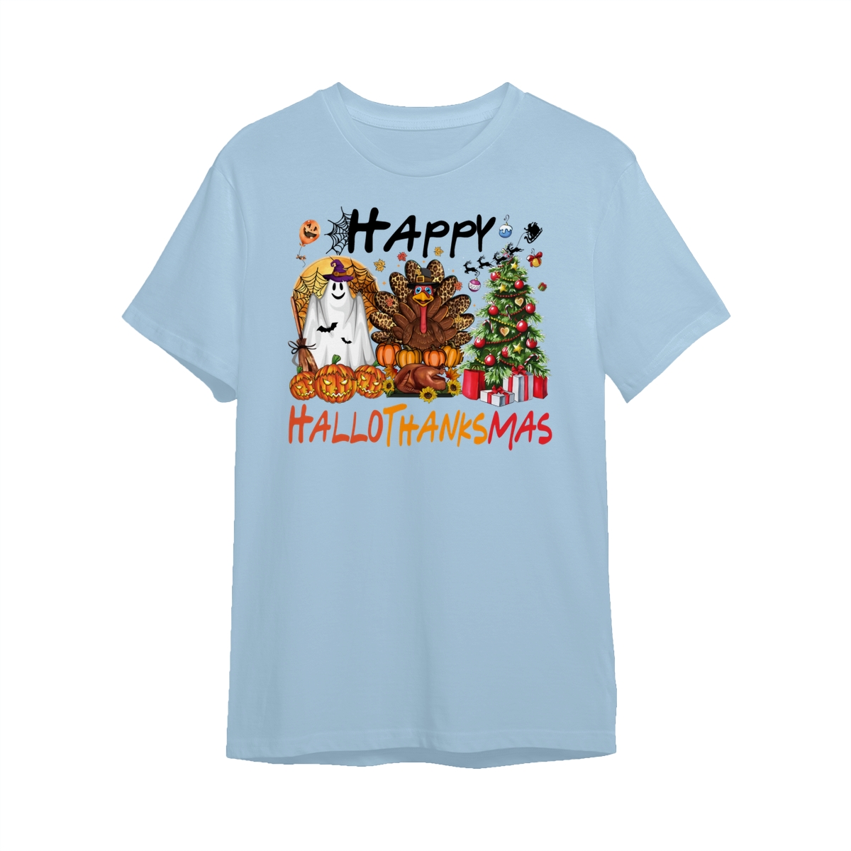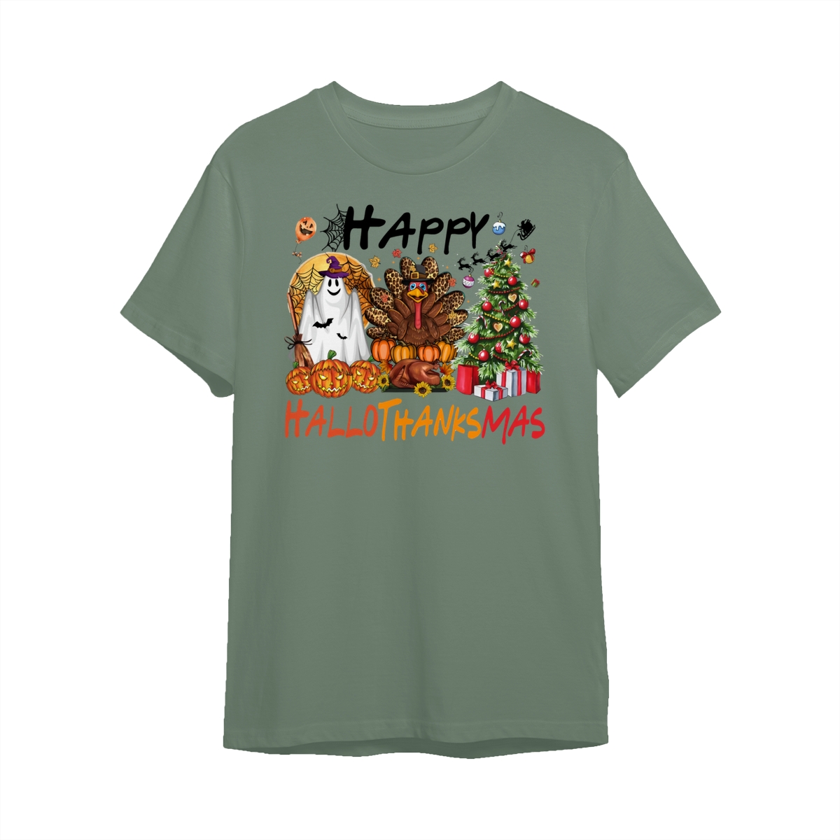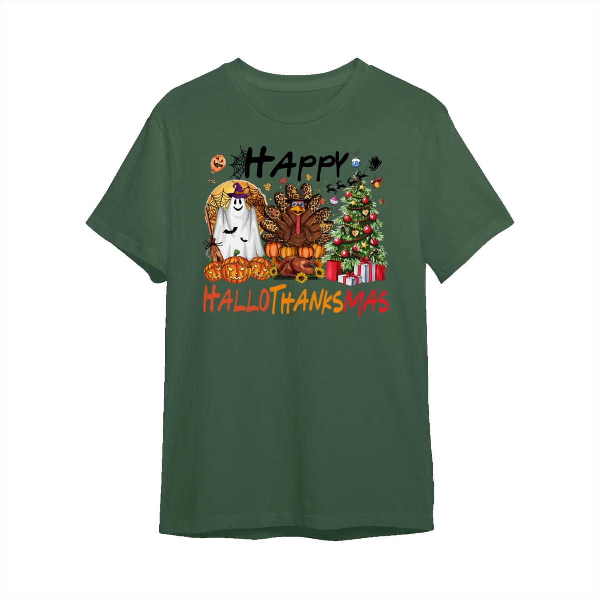 Happy Hallothanksmas, Halloween Sweatshirt, Thanksgiving Shirt, Halloween Thanksgiving Christmas Crewneck, Fall Vibes Shirt, Holiday Season Shirt, Autumn Sweater, Pumpkin Christmas Tree Shirt, Women Sweater, Fall Girl Women Gift For