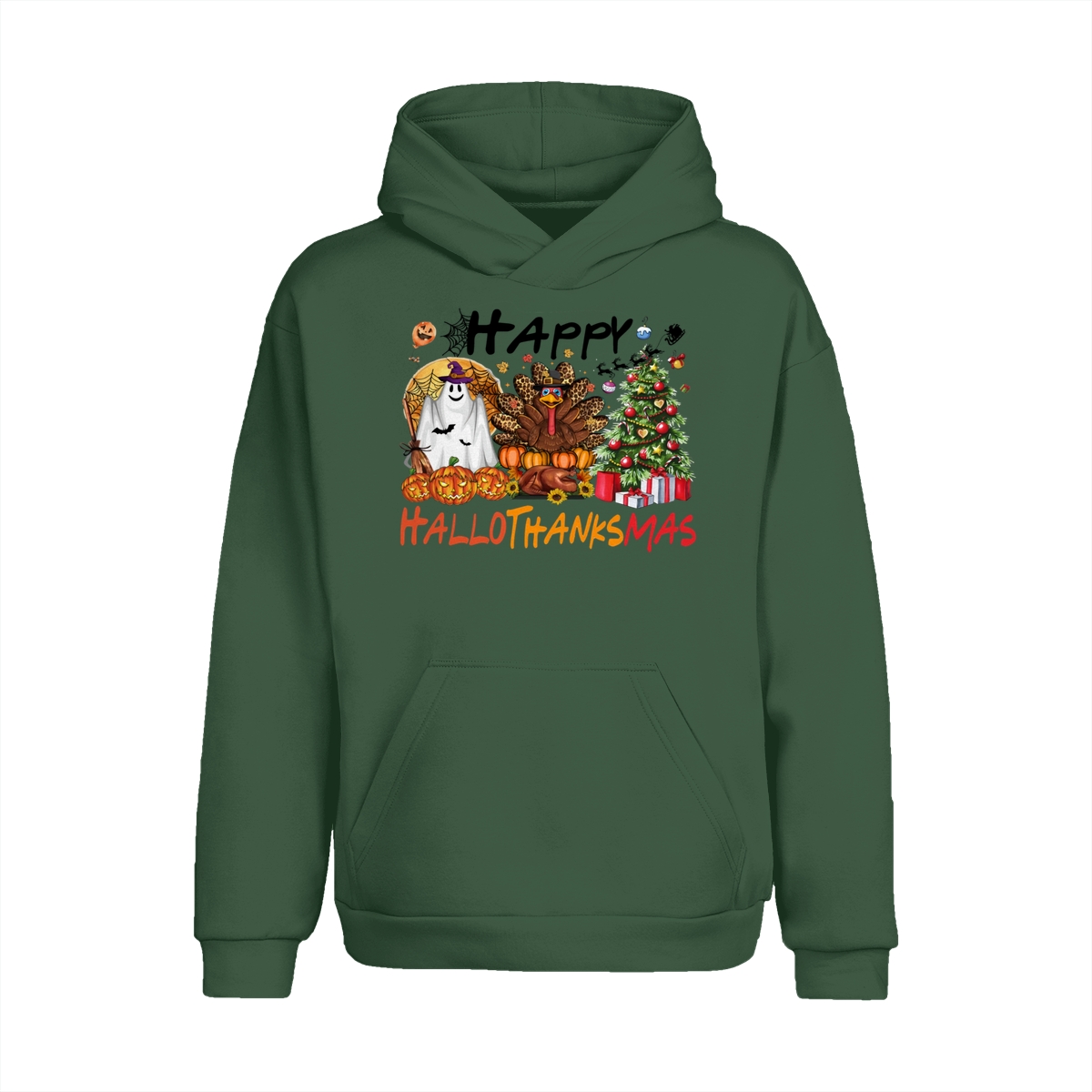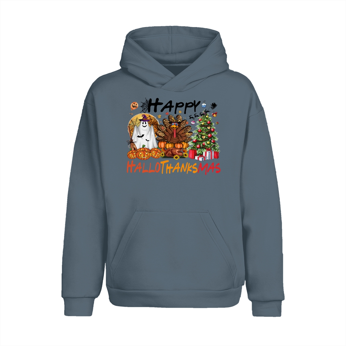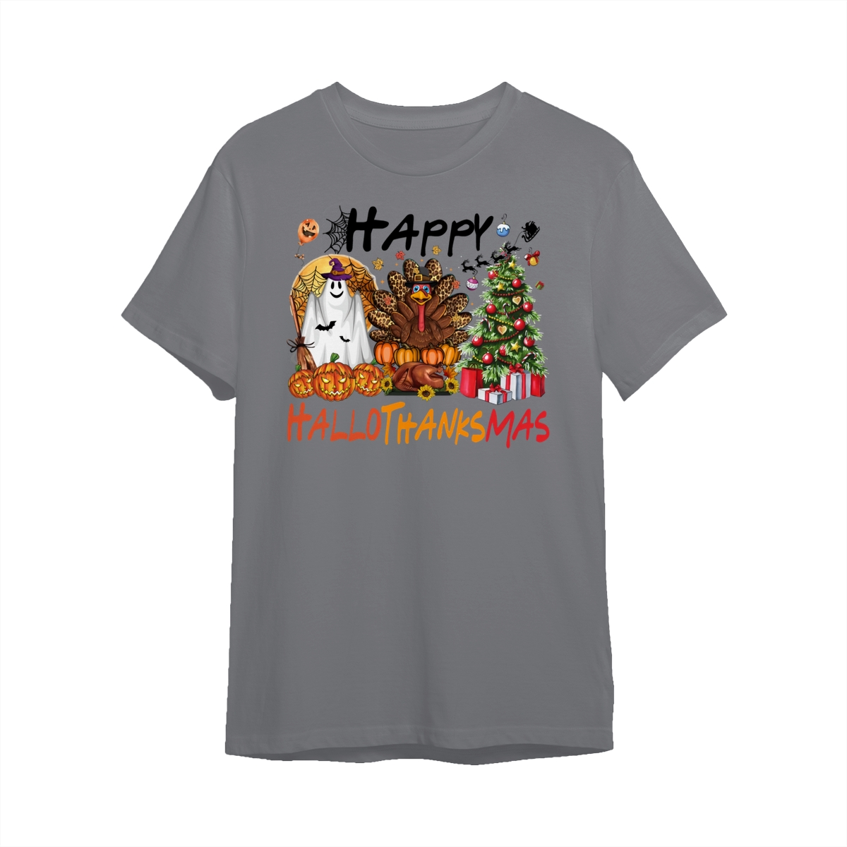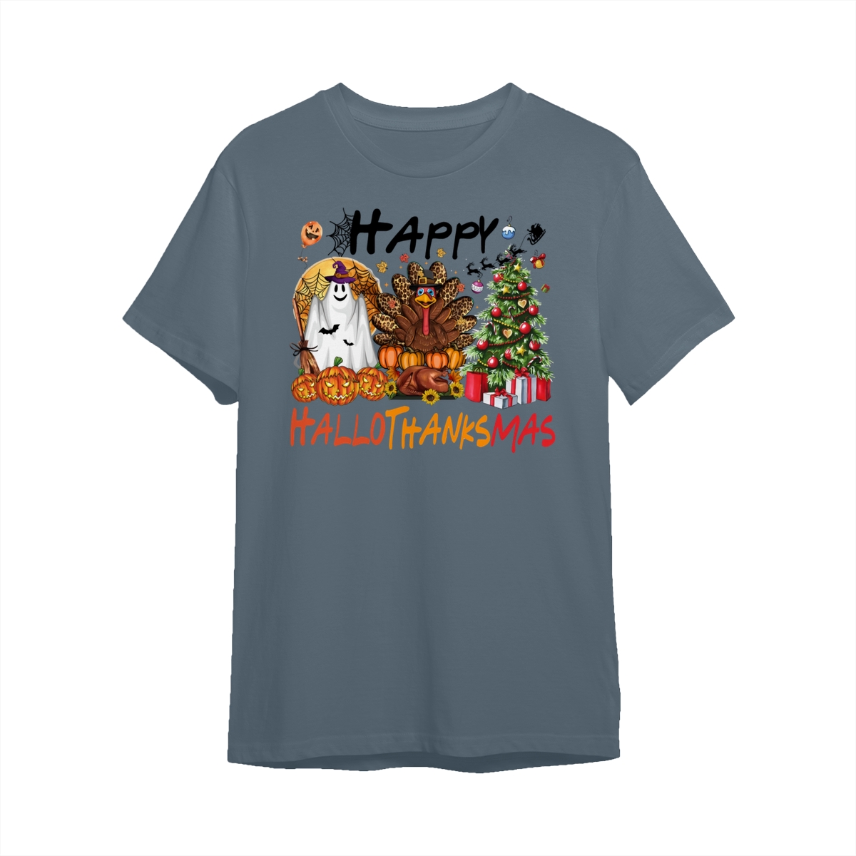 Happy Hallothanksmas, Halloween Sweatshirt, Thanksgiving Shirt, Halloween Thanksgiving Christmas Crewneck, Fall Vibes Shirt, Holiday Season Shirt, Autumn Sweater, Pumpkin Christmas Tree Shirt, Women Sweater, Fall Girl Women Gift For
