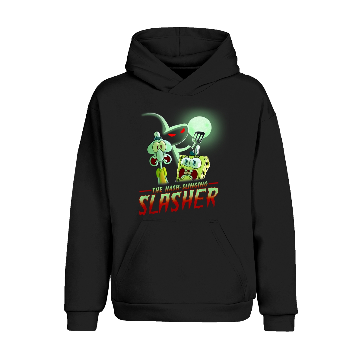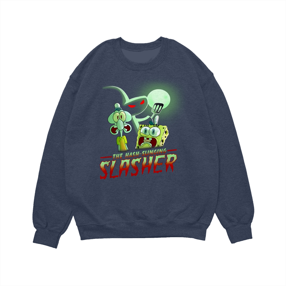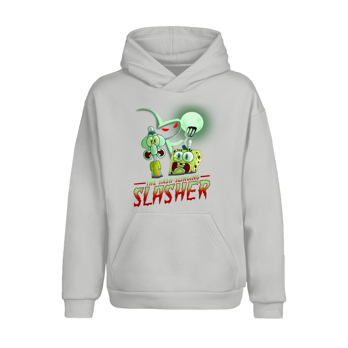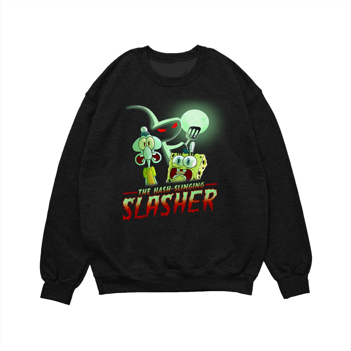 Hash Slinging Slasher TShirt/Sweatshirt/Hoodie, SpongeBob Halloween Horror Pullover, Scary Cartoon Spooky Season Cozy Crewneck, TikTok Viral Nostalgic Top, Gift for SpongeBob Fans halloween shirt men gifts