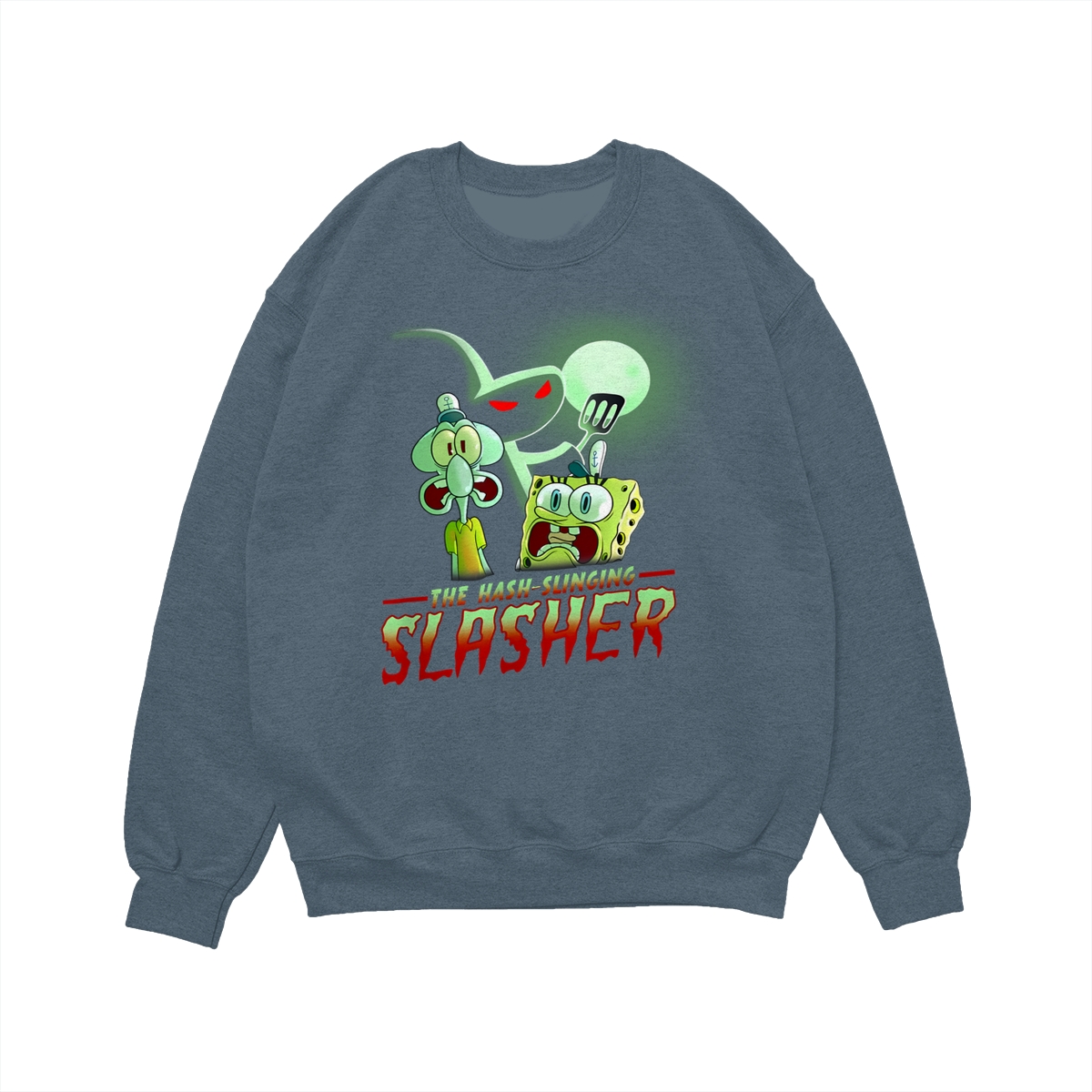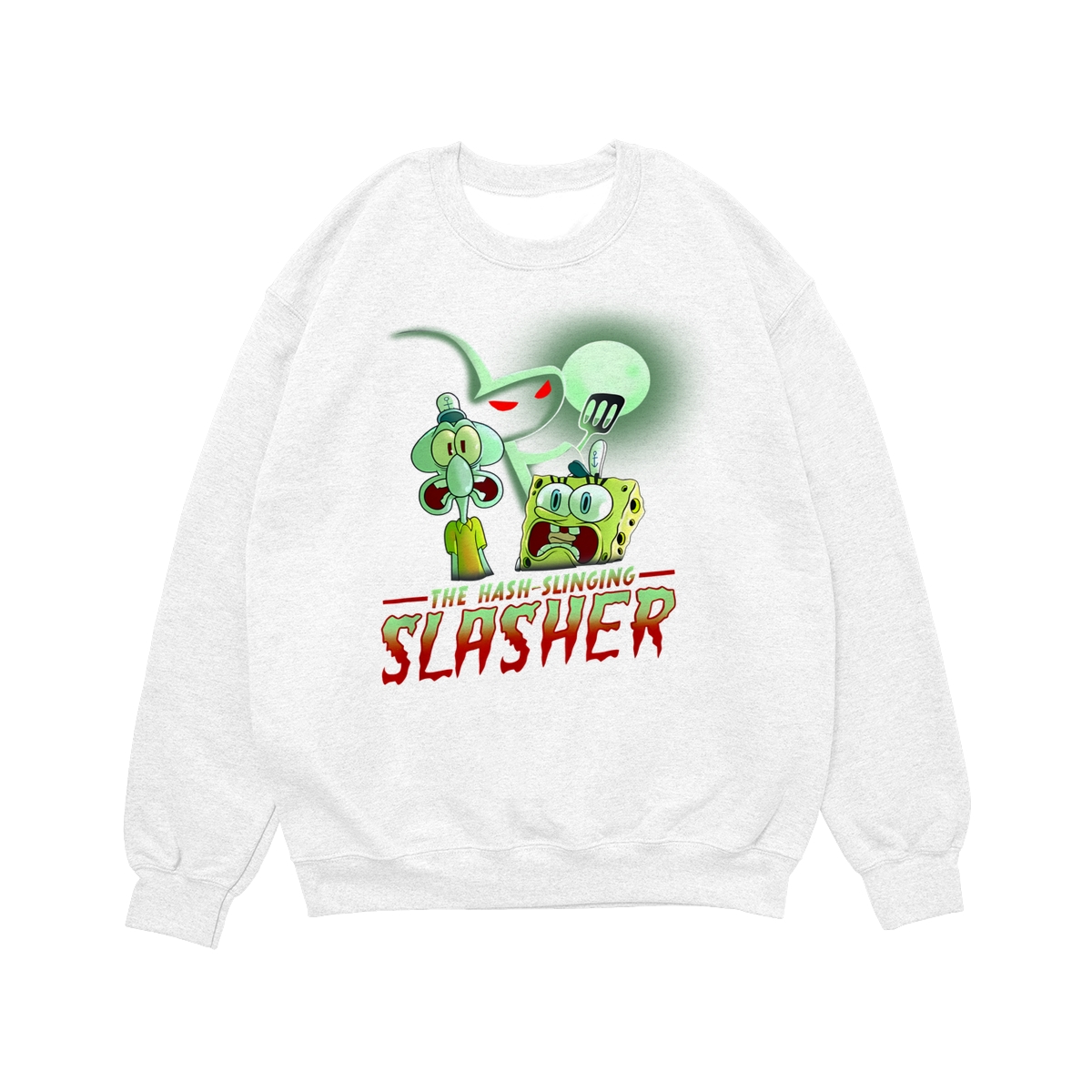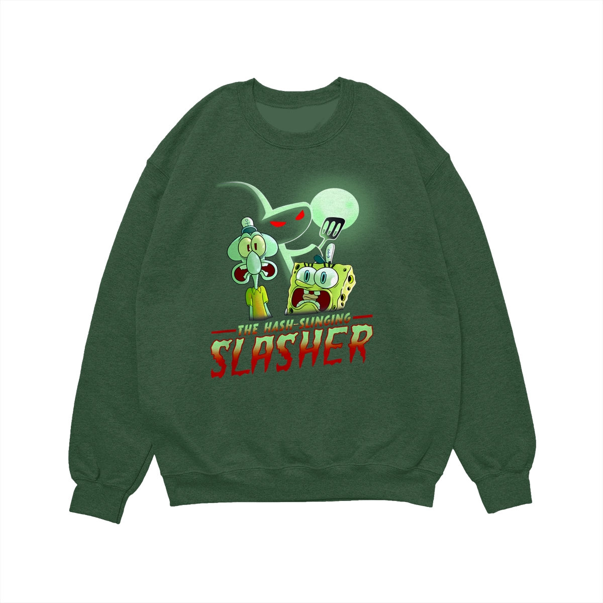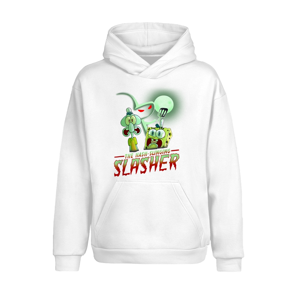 Hash Slinging Slasher TShirt/Sweatshirt/Hoodie, SpongeBob Halloween Horror Pullover, Scary Cartoon Spooky Season Cozy Crewneck, TikTok Viral Nostalgic Top, Gift for SpongeBob Fans halloween shirt men gifts