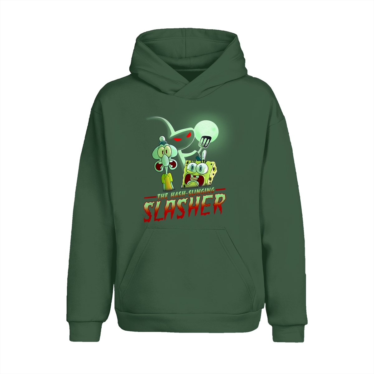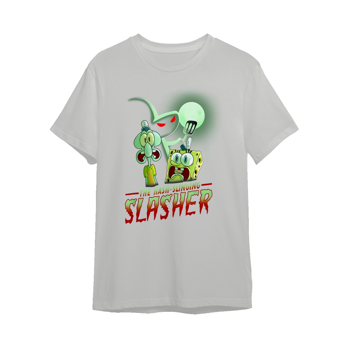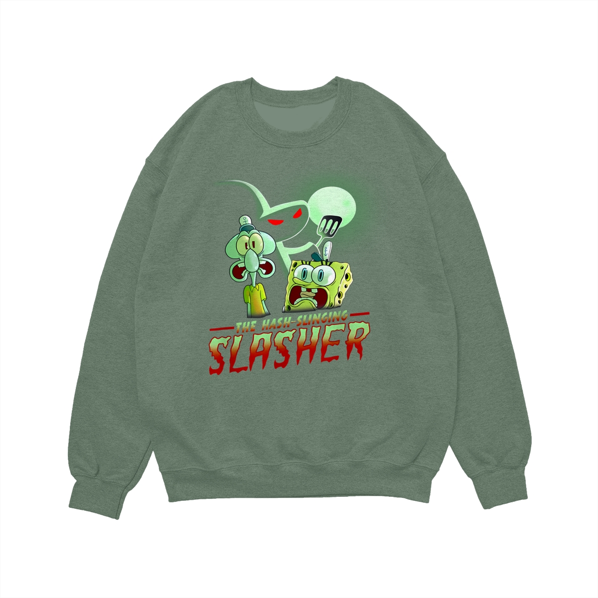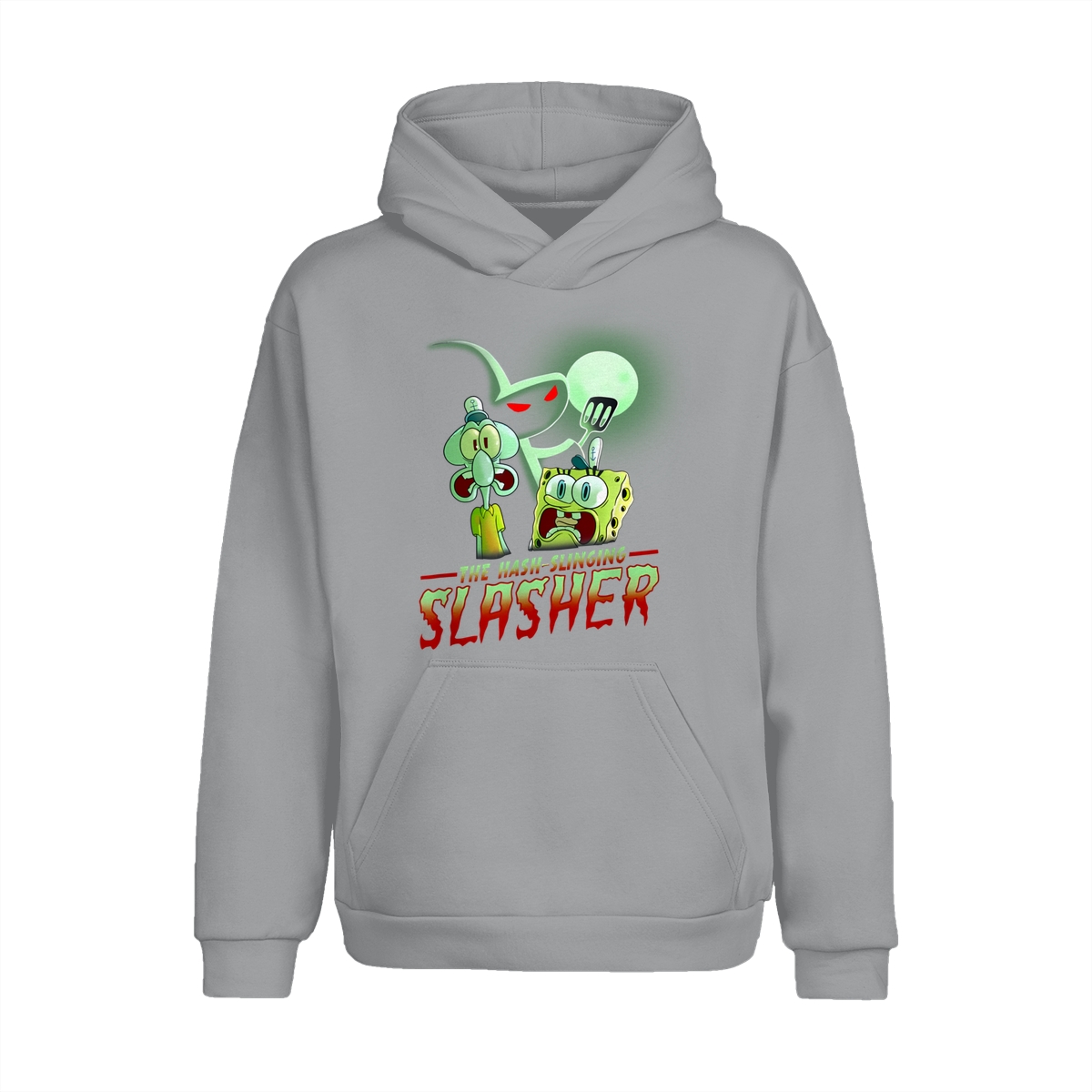 Hash Slinging Slasher TShirt/Sweatshirt/Hoodie, SpongeBob Halloween Horror Pullover, Scary Cartoon Spooky Season Cozy Crewneck, TikTok Viral Nostalgic Top, Gift for SpongeBob Fans halloween shirt men gifts