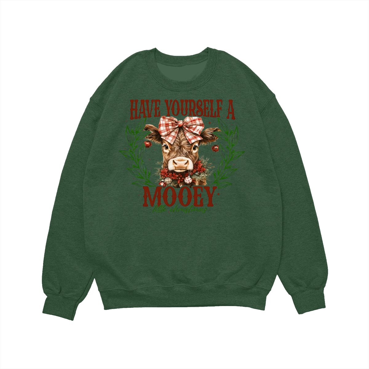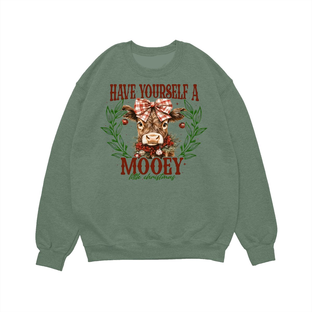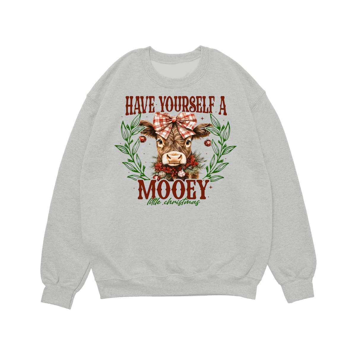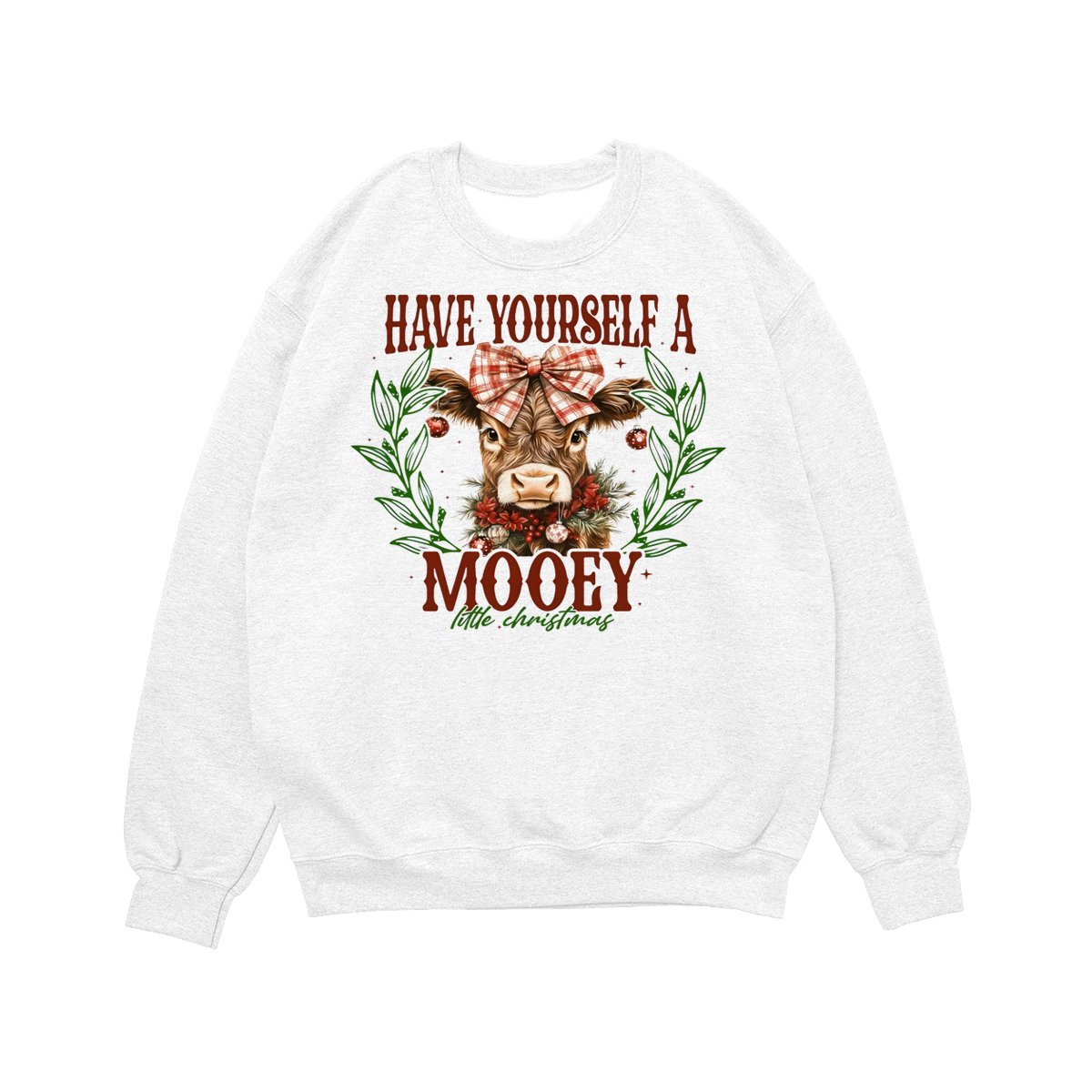 Have Yourself a Mooey Little Christmas Sweatshirt, Country Christmas Cow Lover Sweater, Coquette Farm Xmas Sweatshirt, 2025 Christmas Gift Apparel Made In The USA