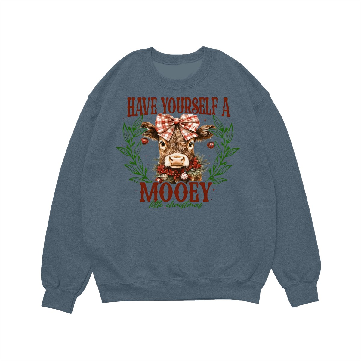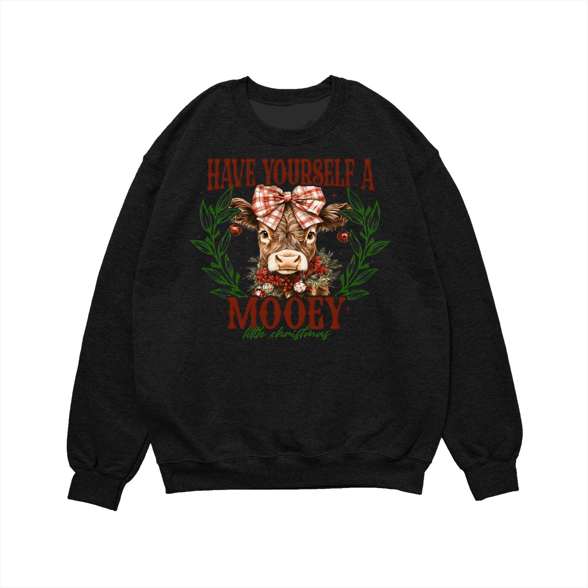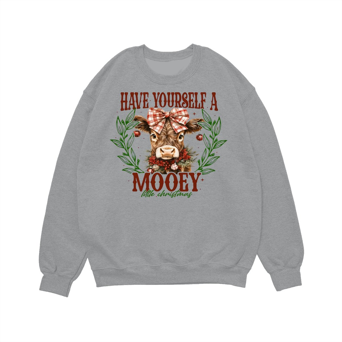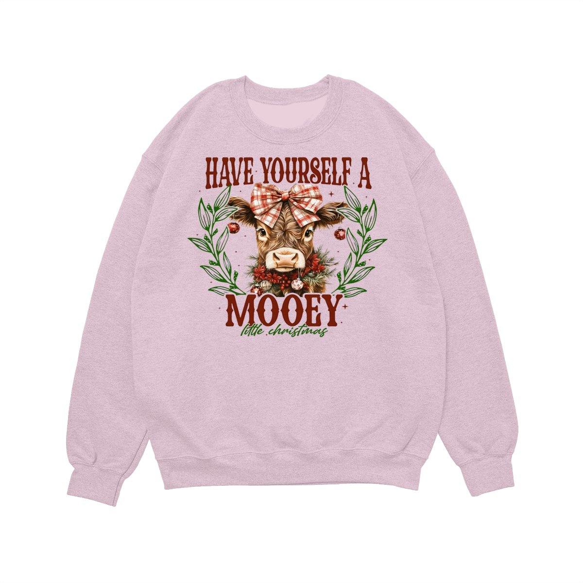 Have Yourself a Mooey Little Christmas Sweatshirt, Country Christmas Cow Lover Sweater, Coquette Farm Xmas Sweatshirt, 2025 Christmas Gift Apparel Made In The USA