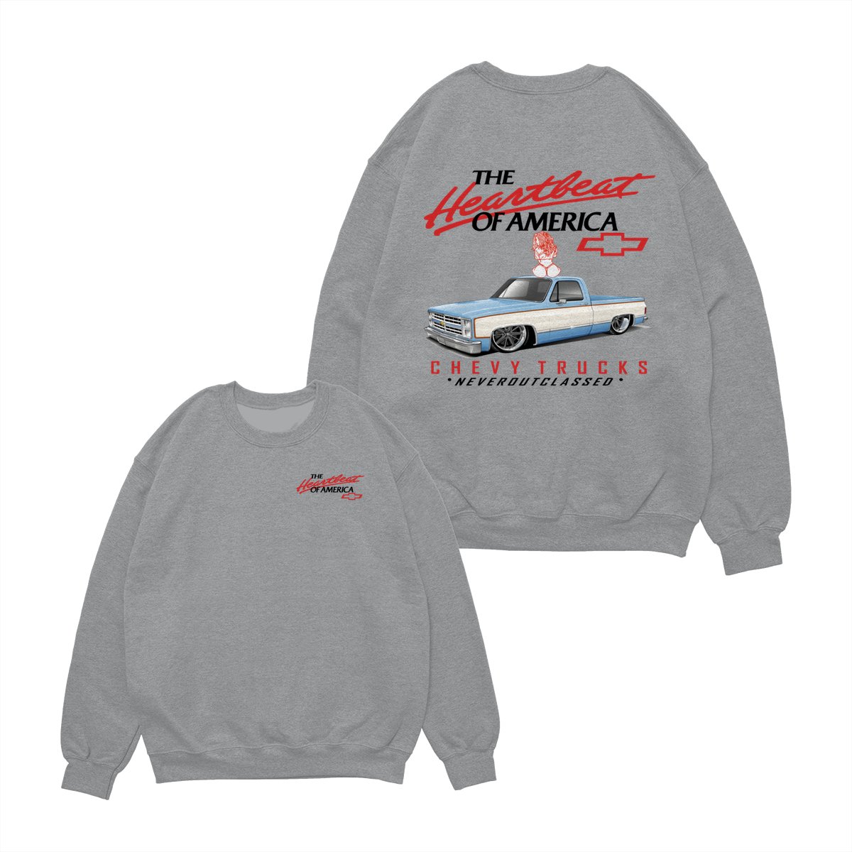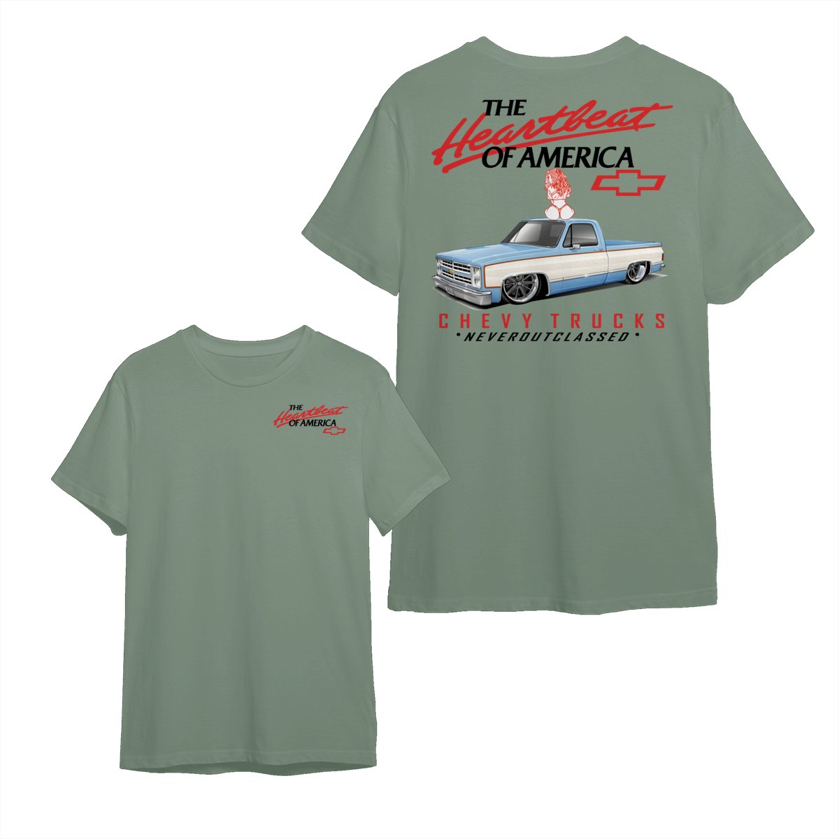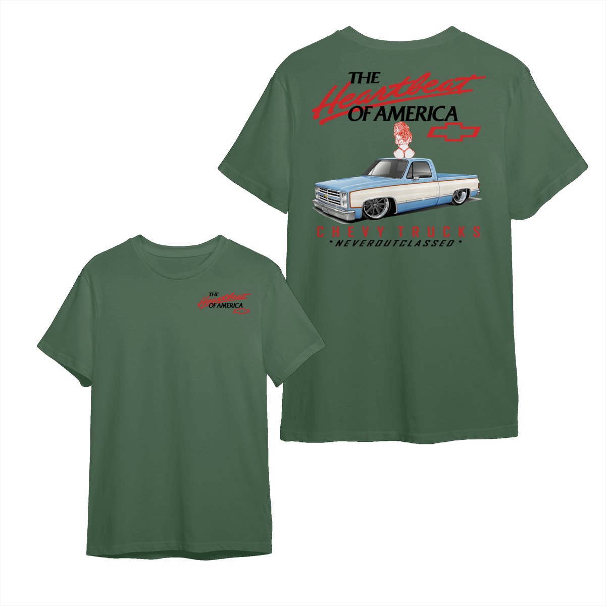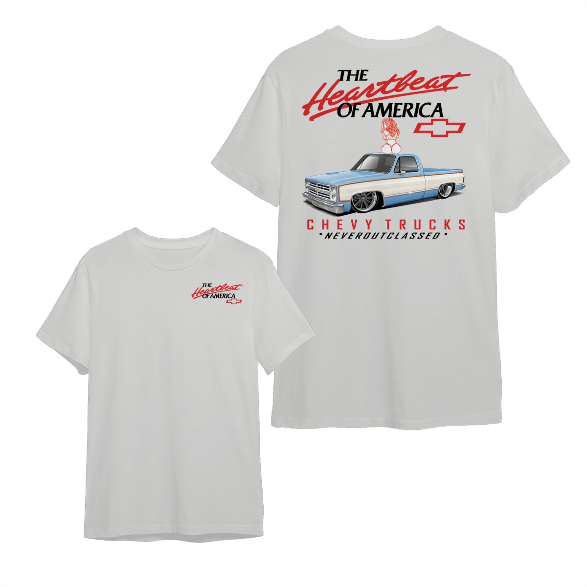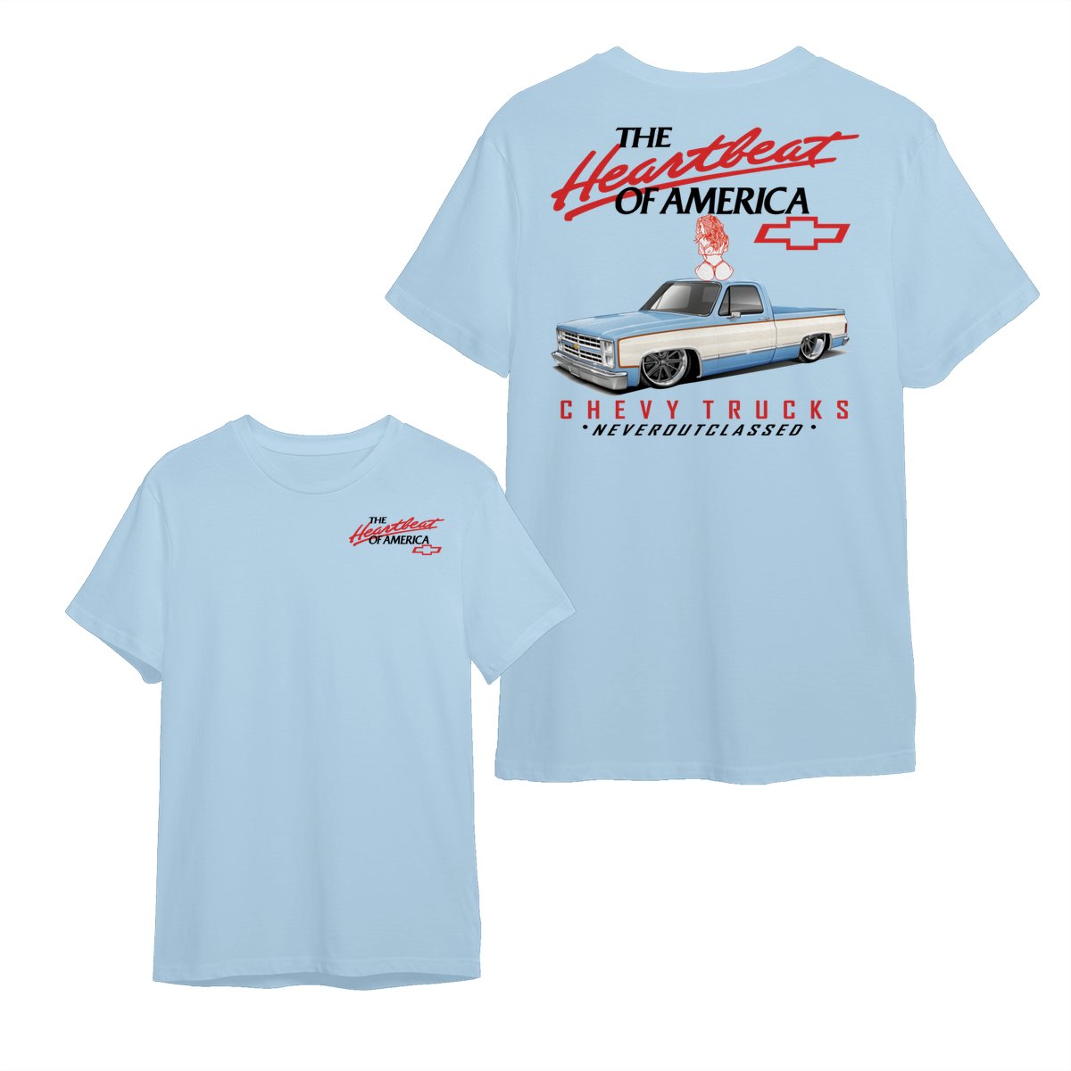 Heartbeat of America Chevy Trucks Girl Never Outclassed T-Shirt, Gift for Truck & Car Lovers, Unisex Casual Shortsleeve Crewneck
