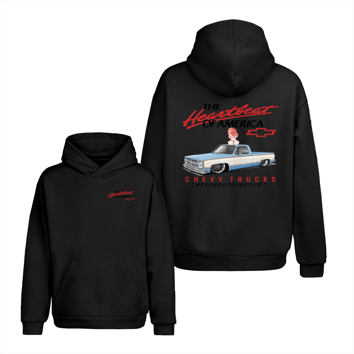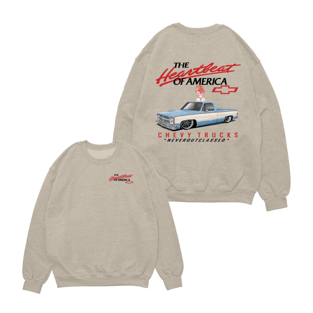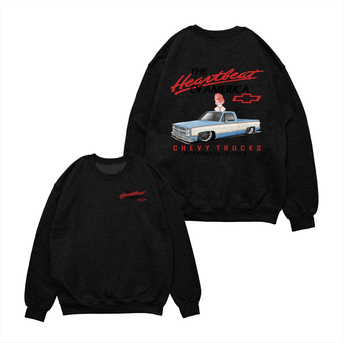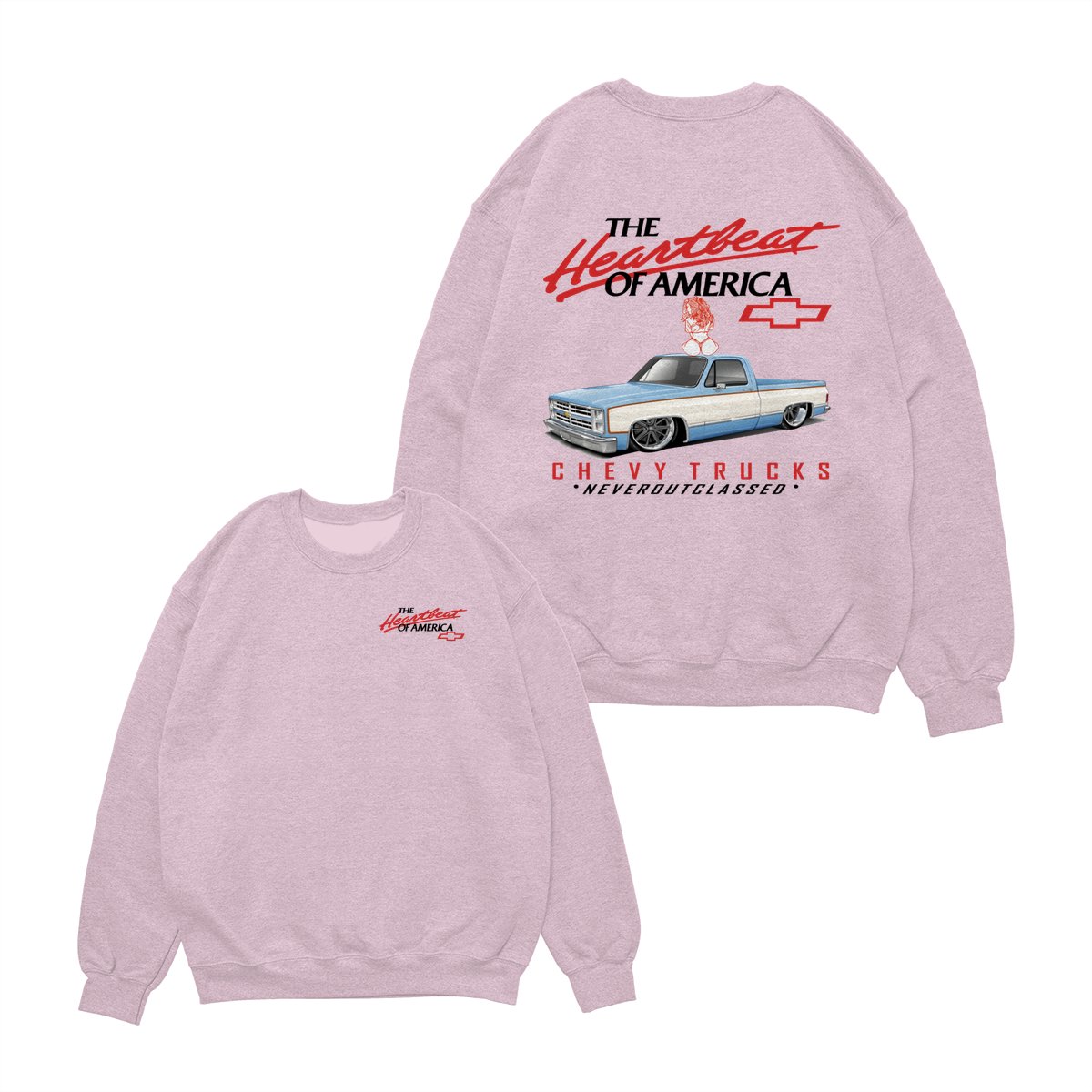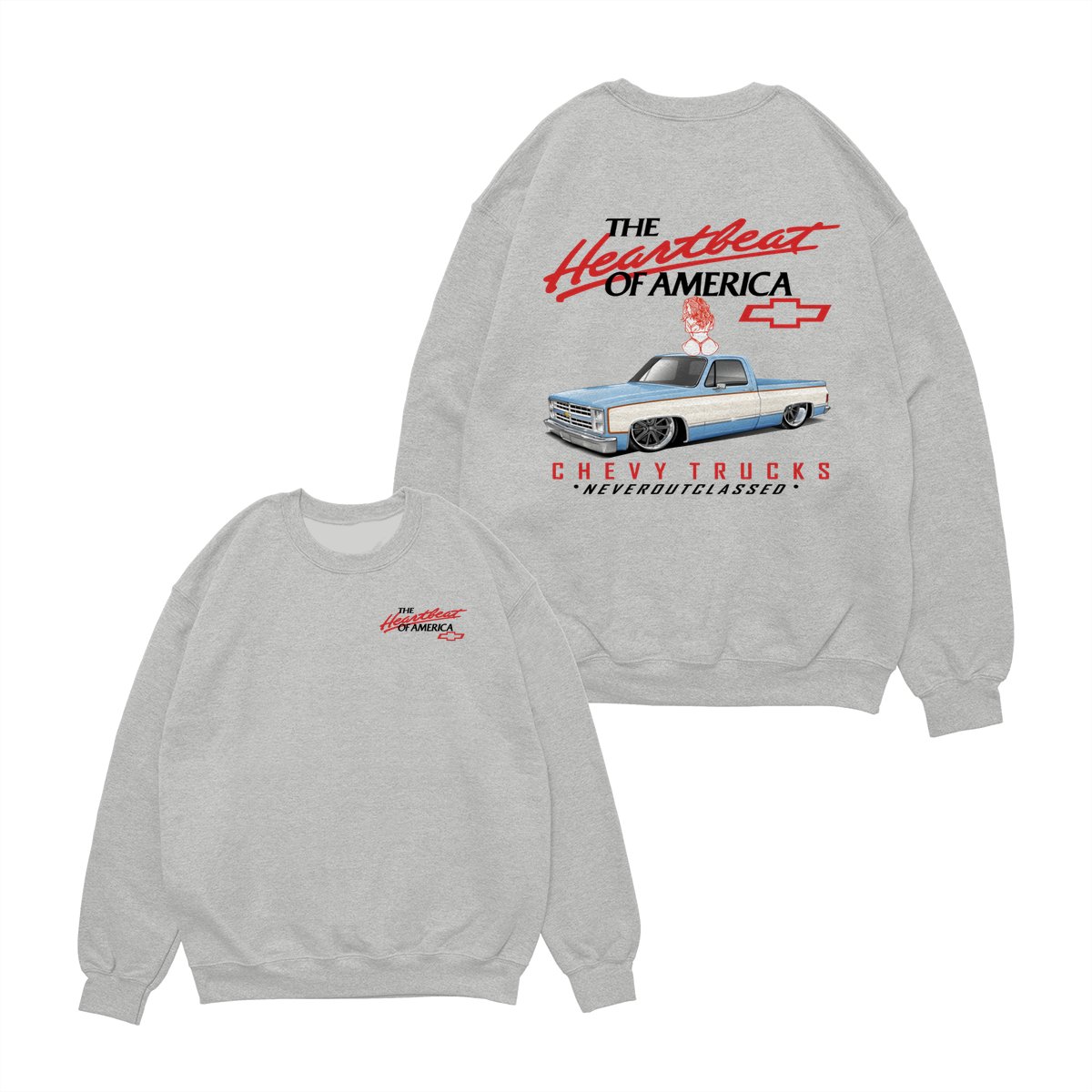 Heartbeat of America Chevy Trucks Girl Never Outclassed T-Shirt, Gift for Truck & Car Lovers, Unisex Casual Shortsleeve Crewneck
